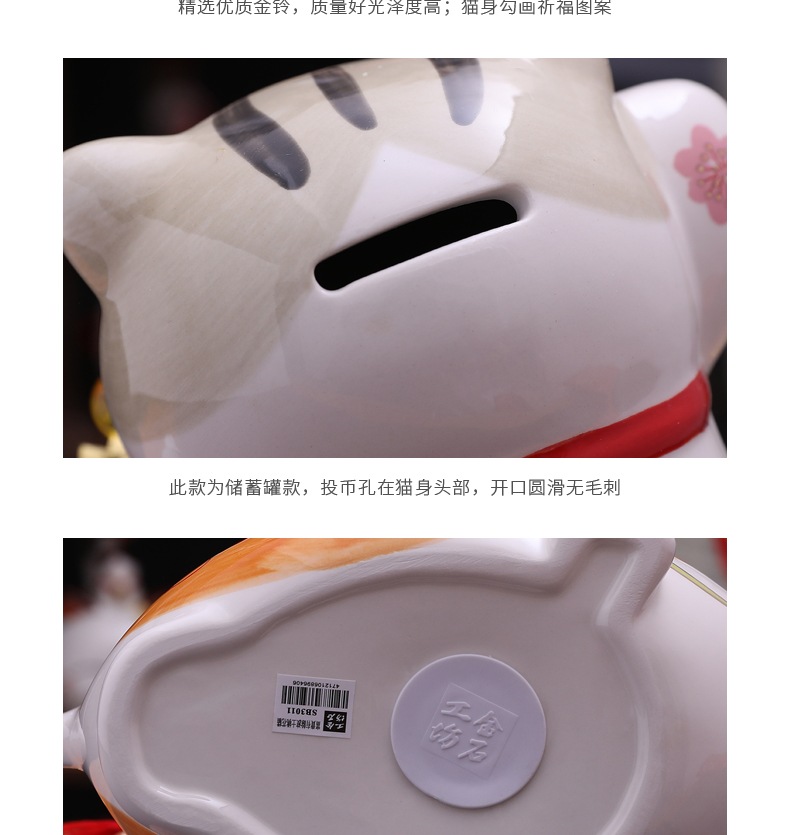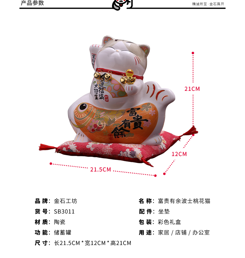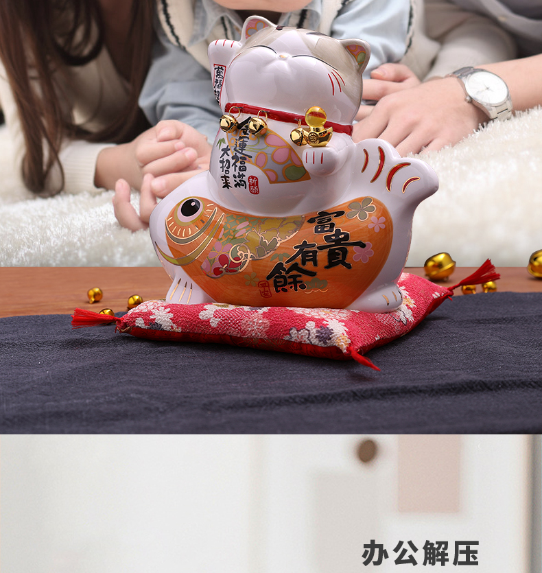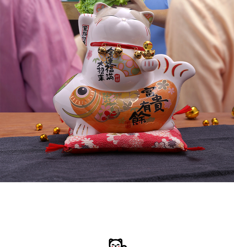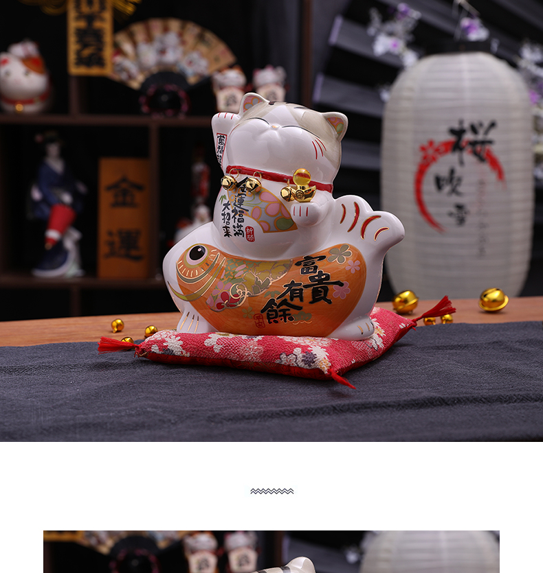 招财猫摆件家居礼品陶瓷存钱储蓄罐 富贵有余波士桃花猫