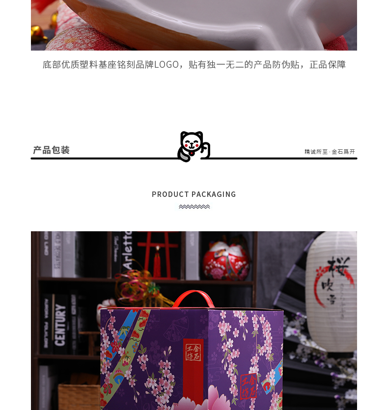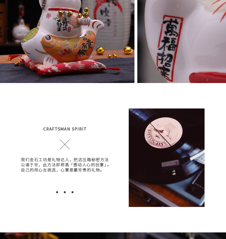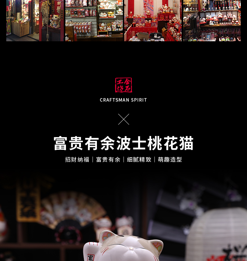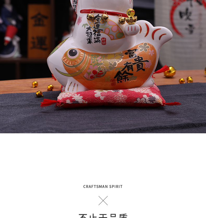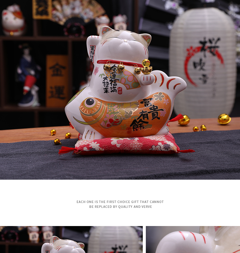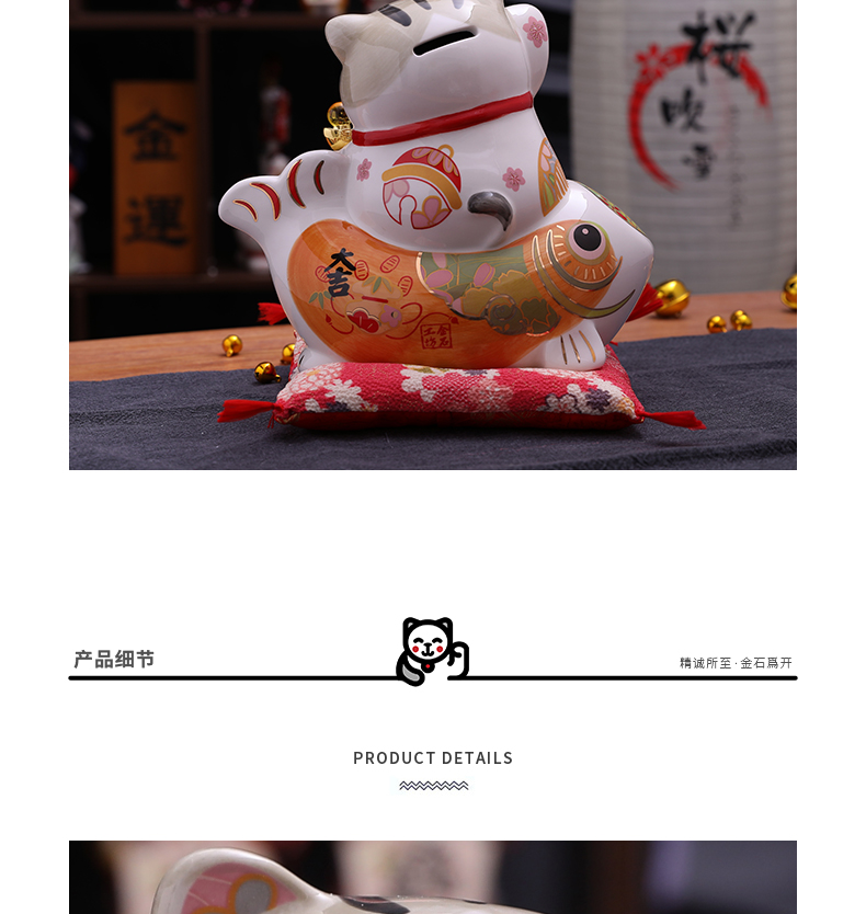 招财猫摆件家居礼品陶瓷存钱储蓄罐 富贵有余波士桃花猫