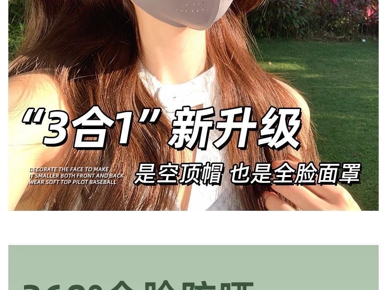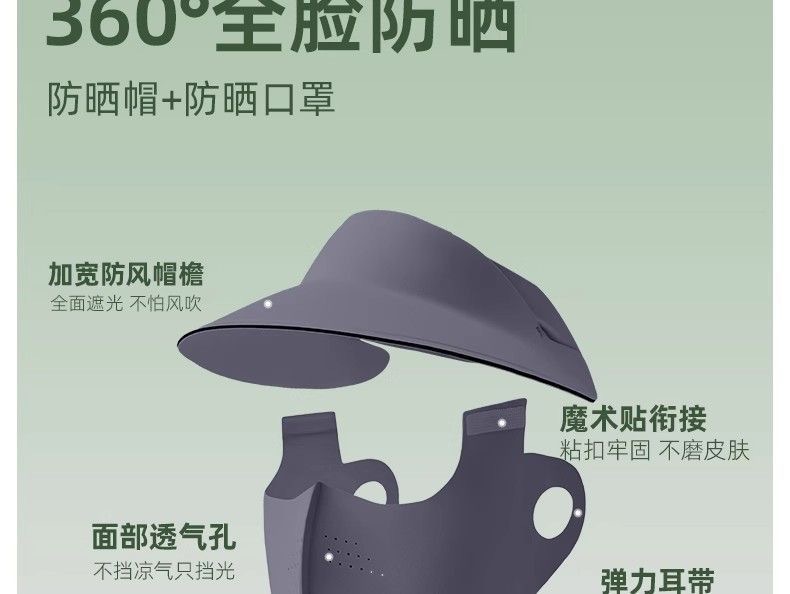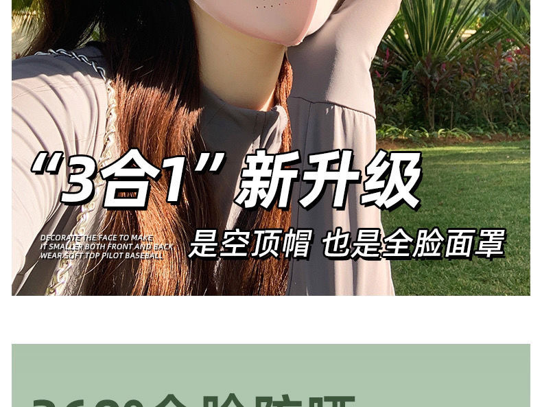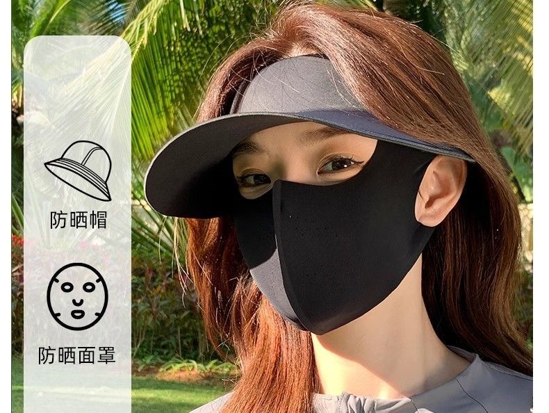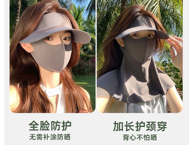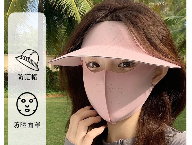 防晒面罩女全脸防紫外线 夏季开车骑行 口罩帽子一体遮阳冰丝脸基尼