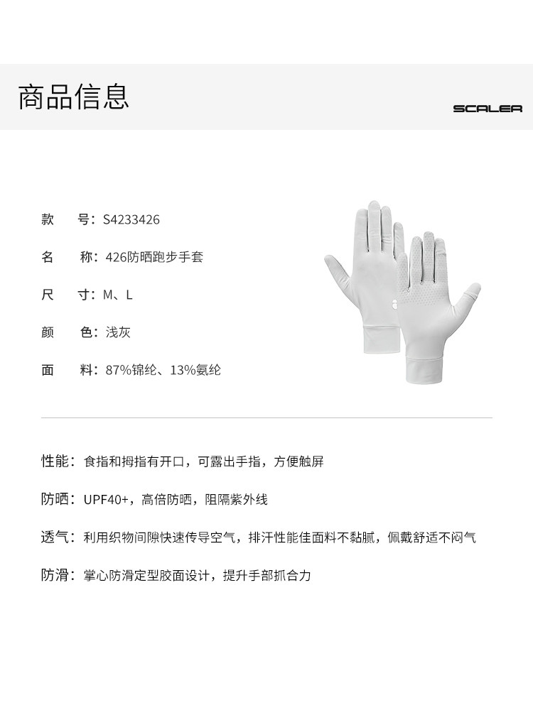 +【乐粉专属】思凯乐SCALER户外防晒跑步手套UPF40阻隔紫外线可露手指方便触屏S4233426