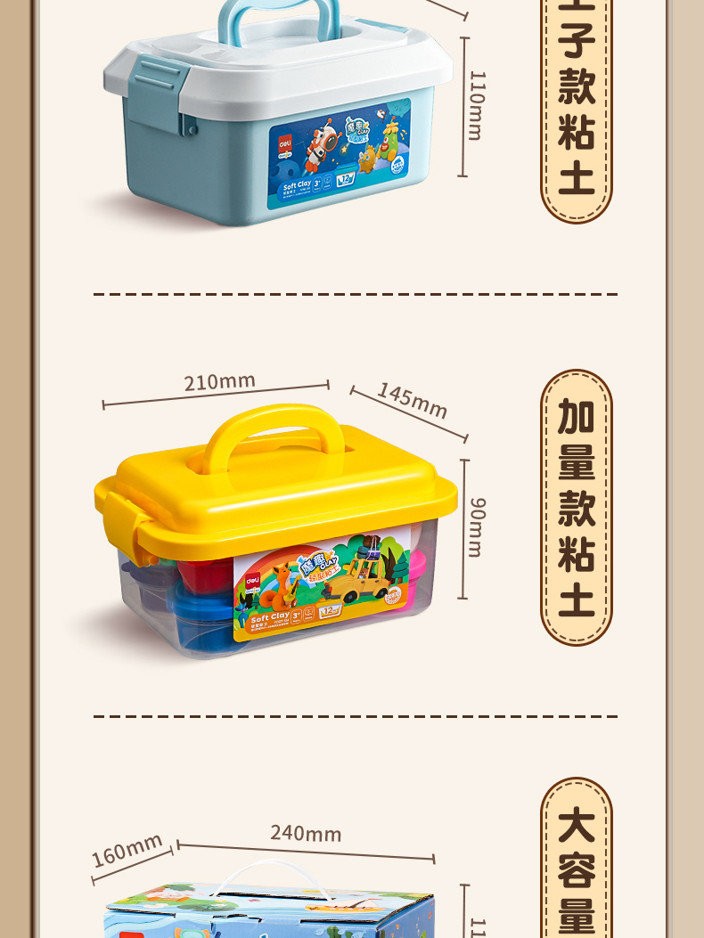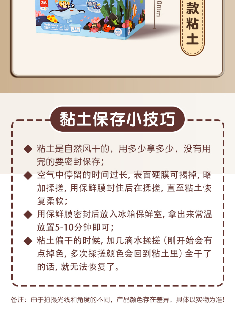 「」得力67876轻粘土橡皮泥食品级轻黏土儿童彩泥玩具套装工具