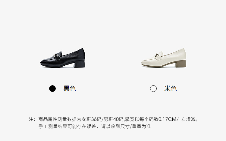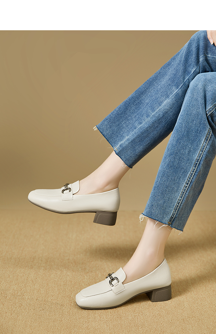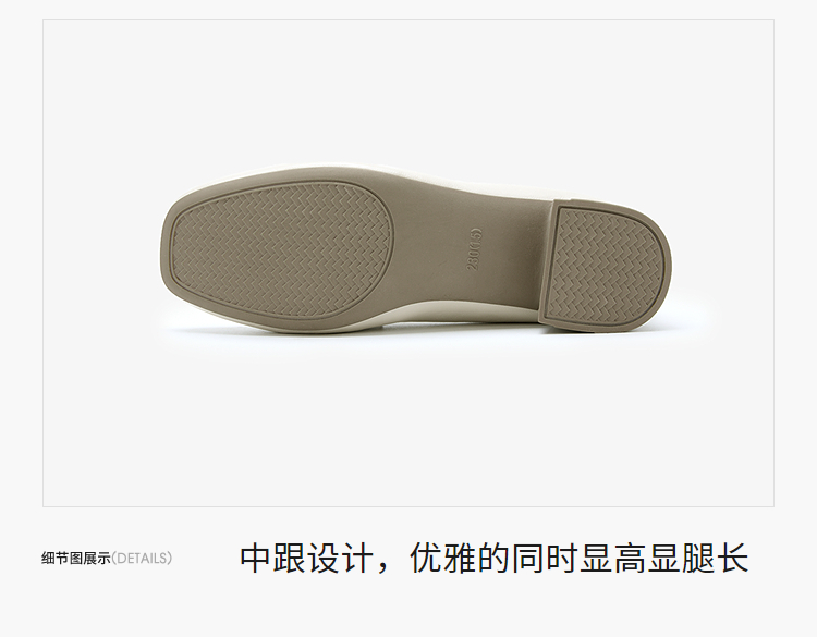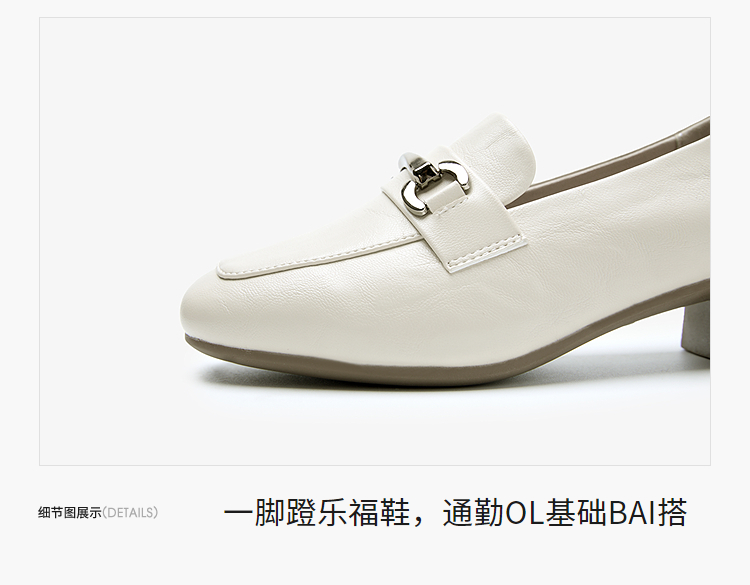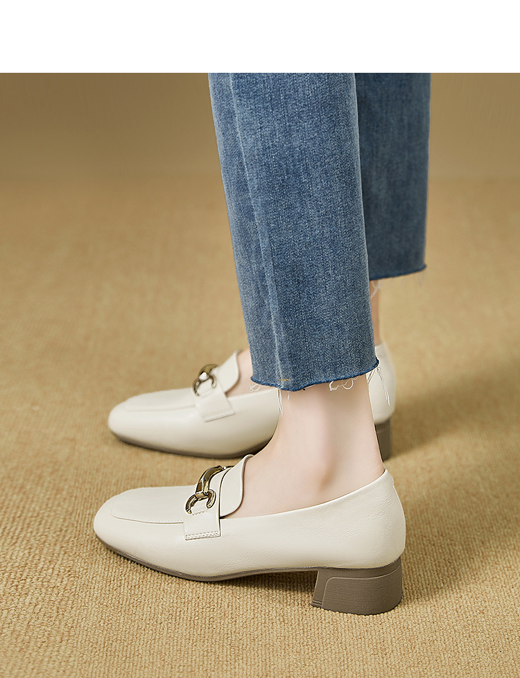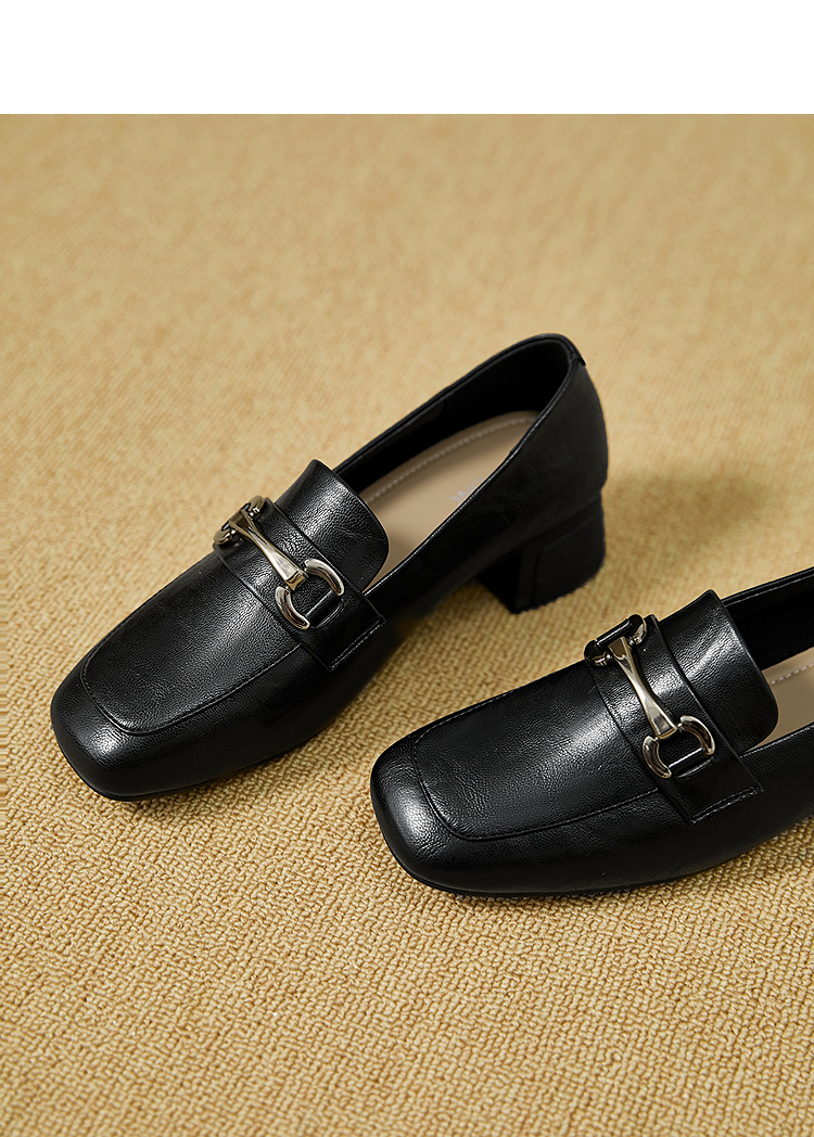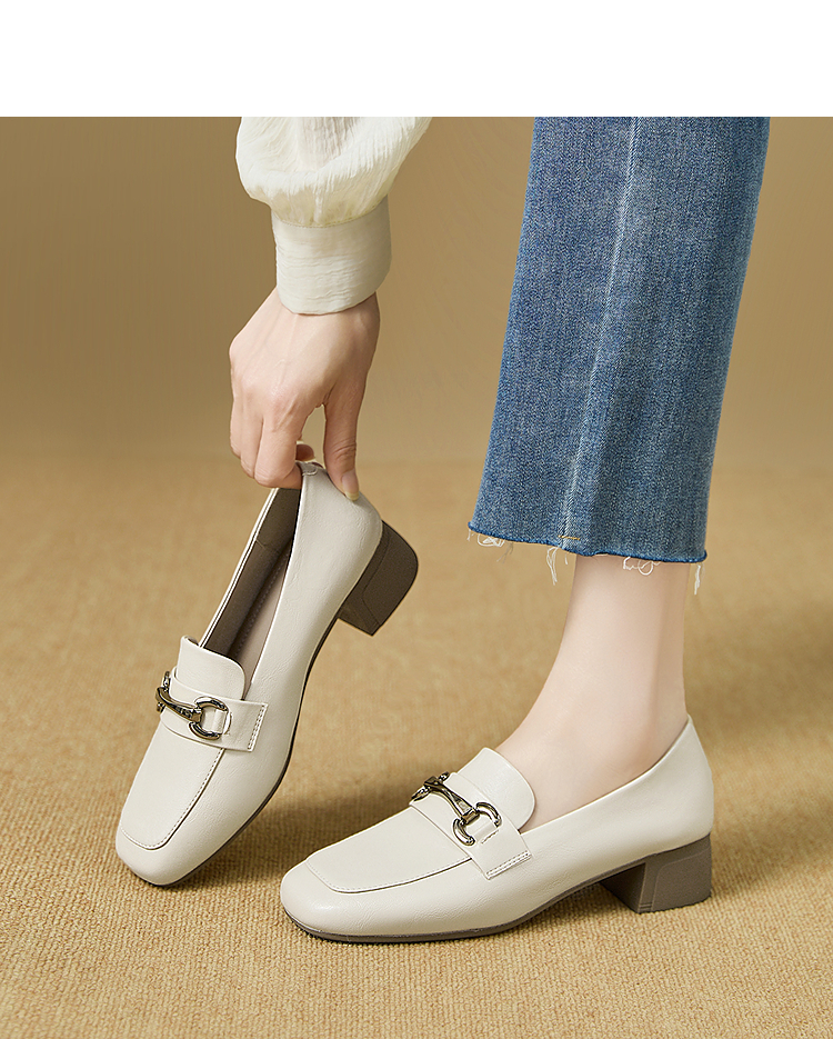 西遇粗跟乐福鞋女新款秋季复古金扣方头通勤单鞋中跟小皮鞋V1857106