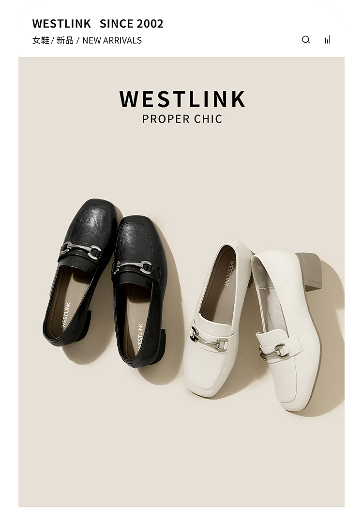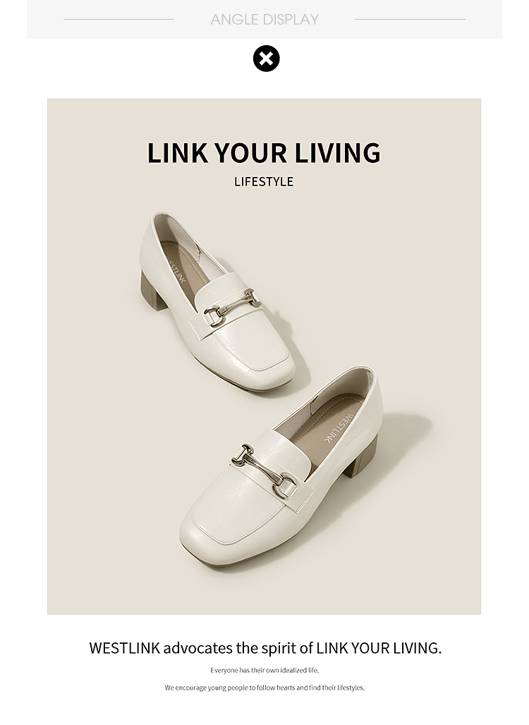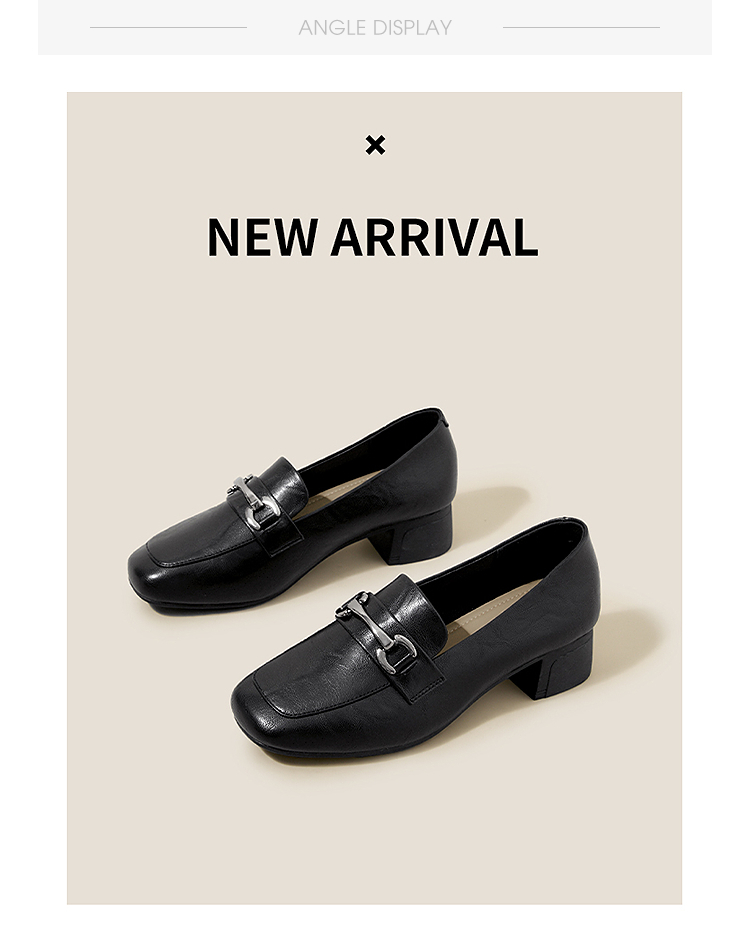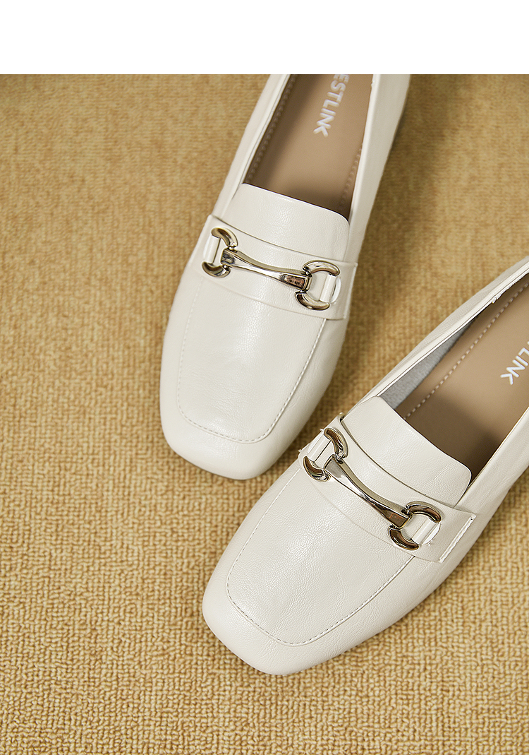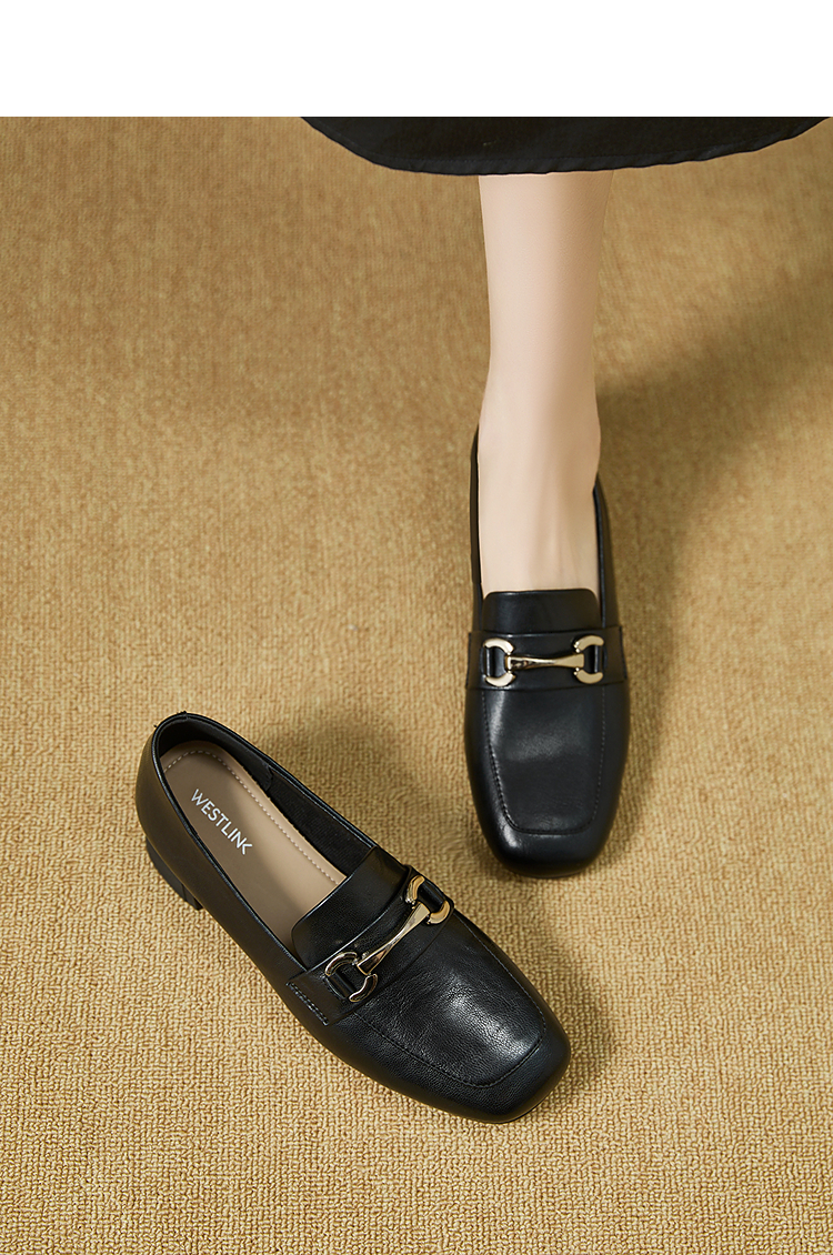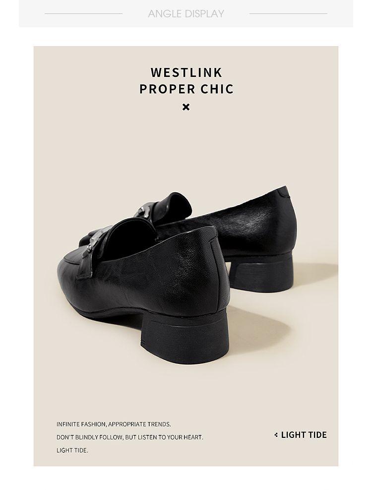 西遇粗跟乐福鞋女新款秋季复古金扣方头通勤单鞋中跟小皮鞋V1857106