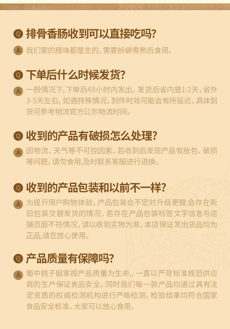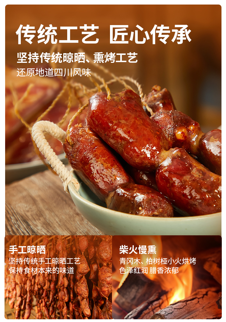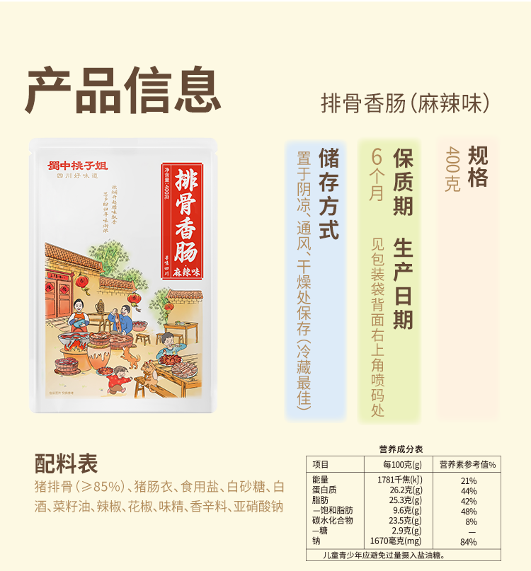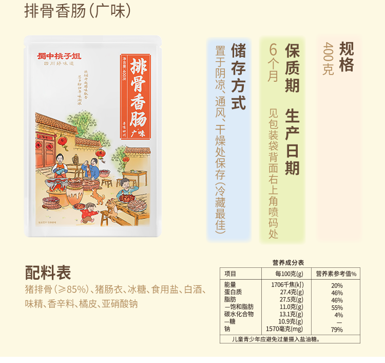 【自营】四川家乡味 麻辣/广味 排骨香肠400/g袋