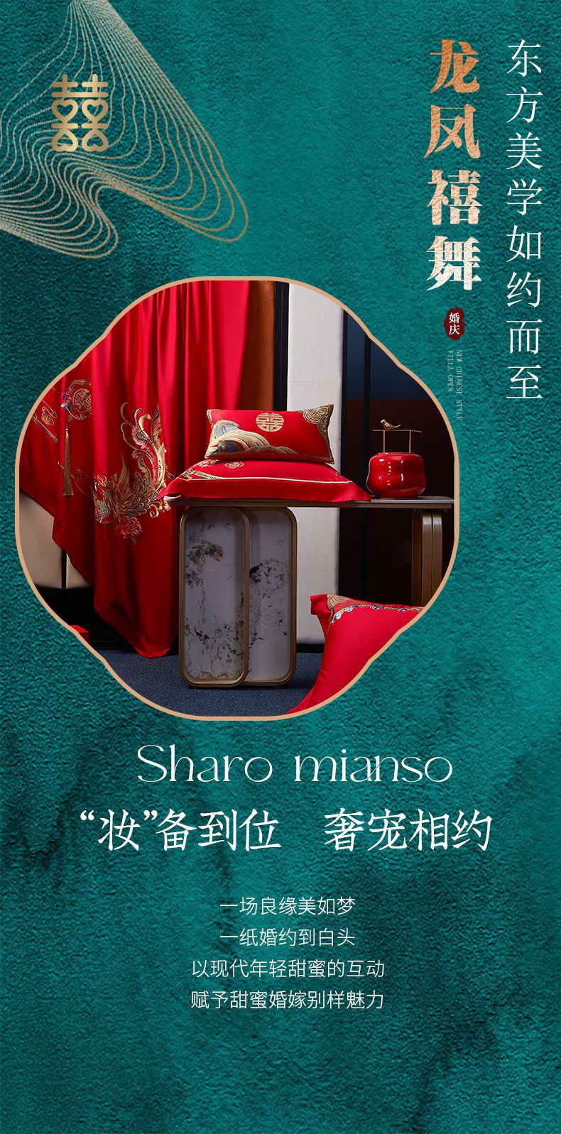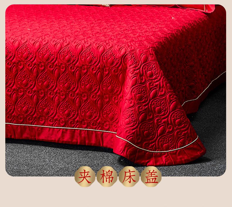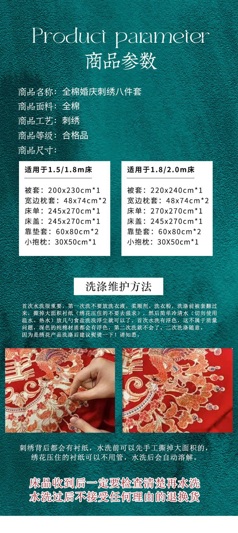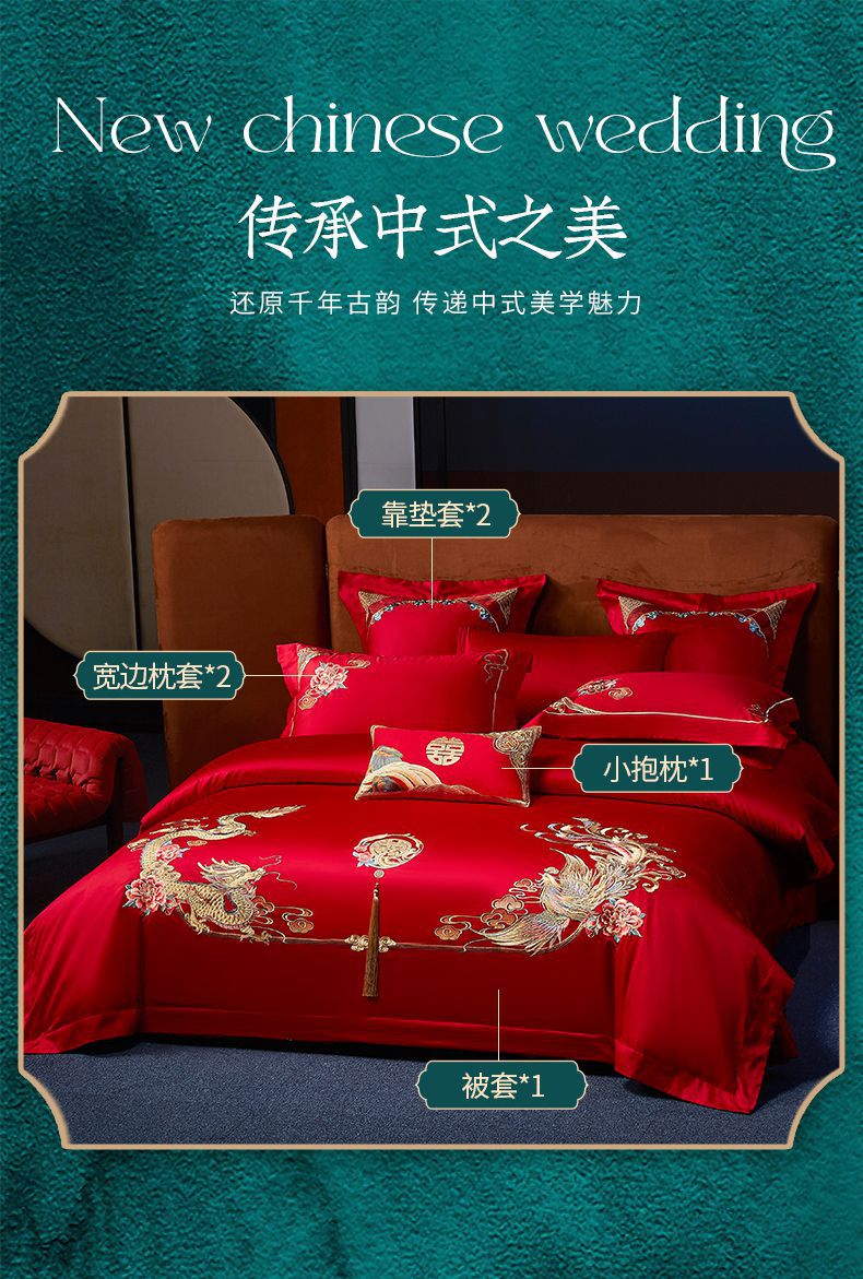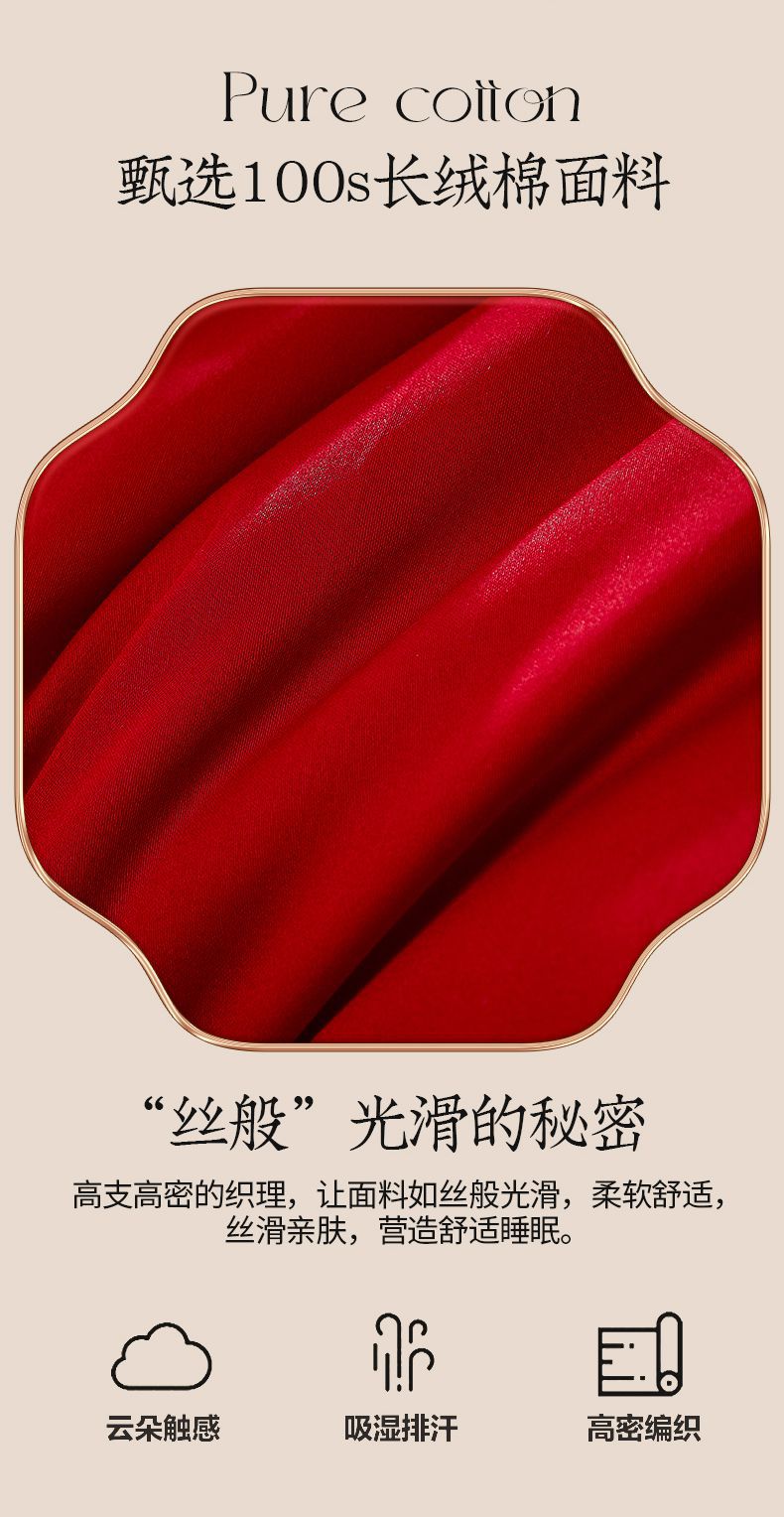 自然醒100支长绒棉囍嫁系列婚庆四件套全棉大红刺绣纯棉喜被新婚嫁结婚房床品GDS