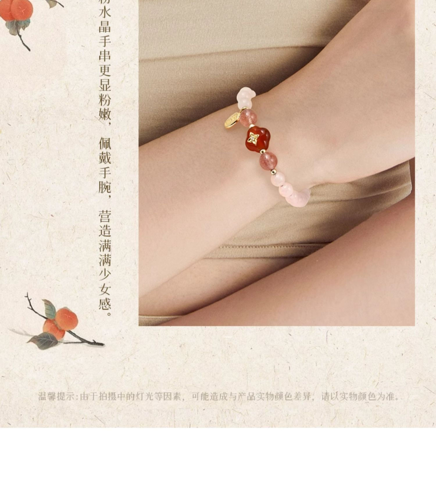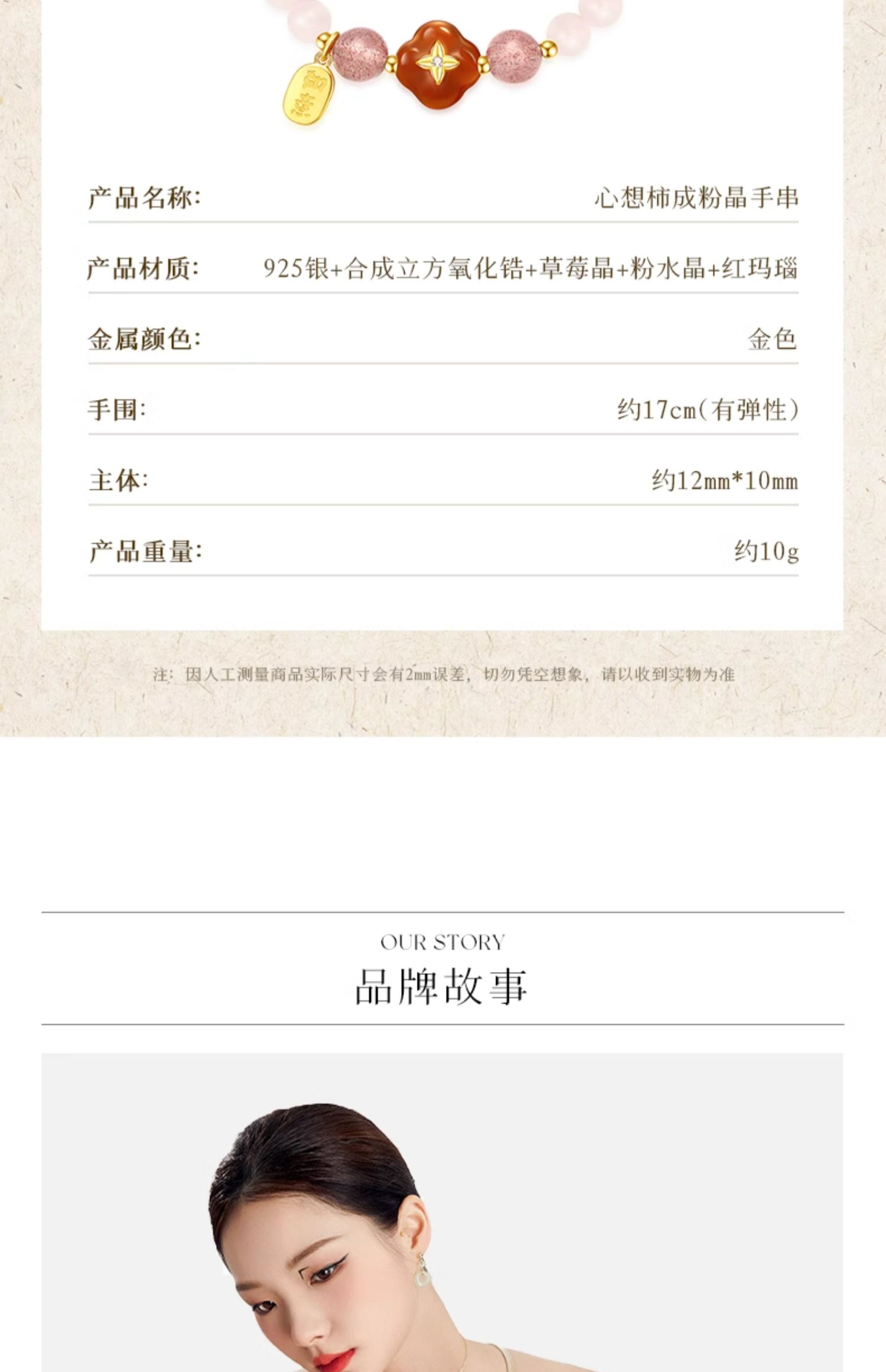 Fanci范琦×宫主 好事发生系列 【心想柿成粉晶手串】镶嵌红玛瑙生日礼物送妈妈送女友 下单即赠(宫主精美礼盒)+顺丰空运+运费险