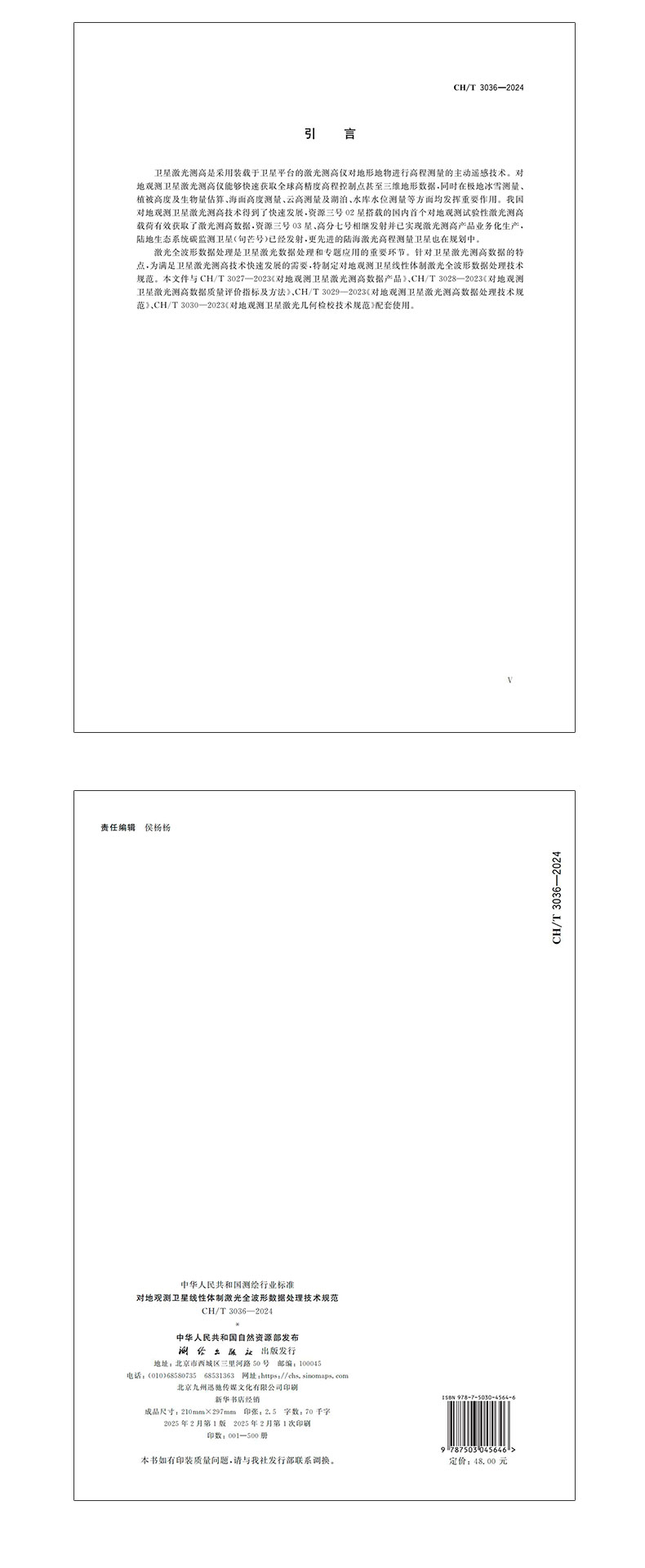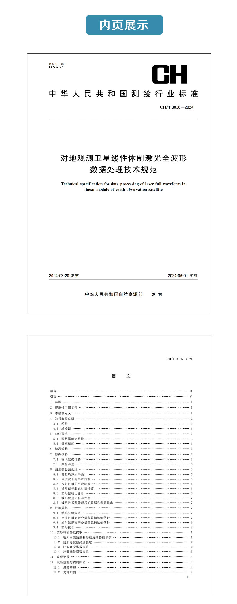测绘行业标准·对地观测卫星线性体制激光全波形数据处理技术规范——CHT 3036—2024