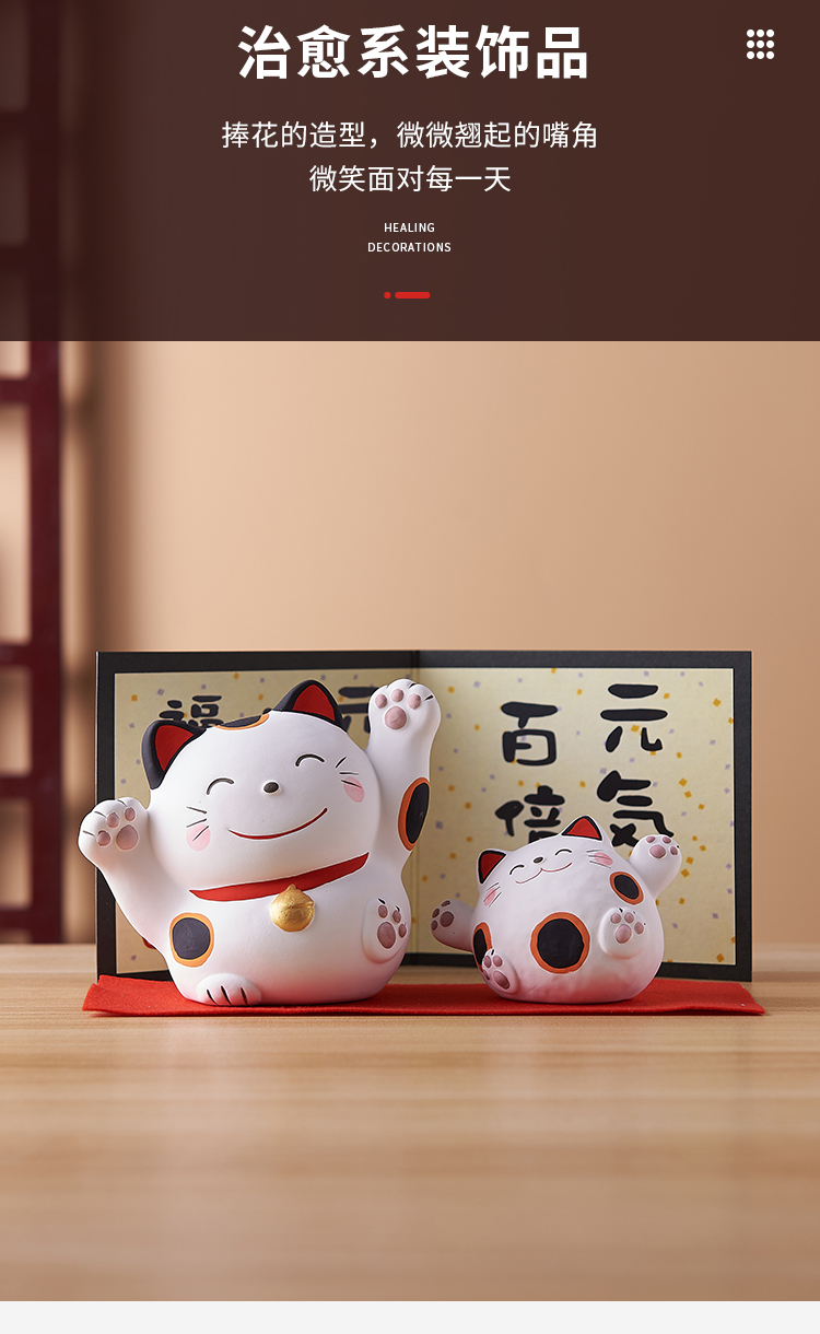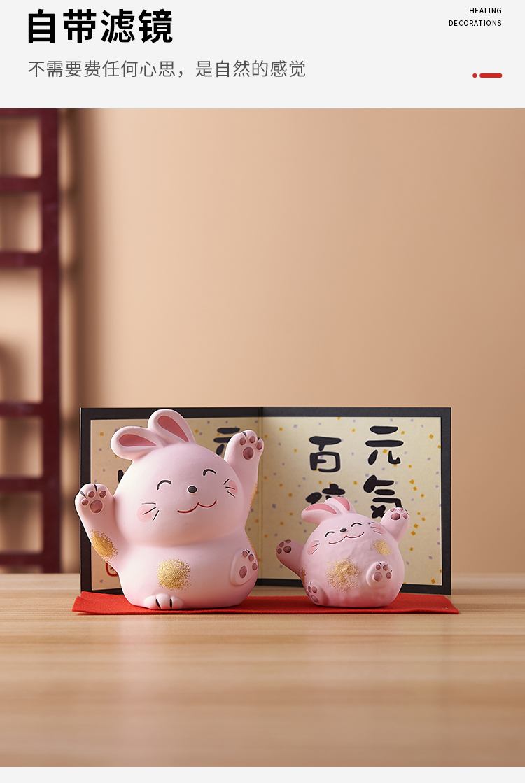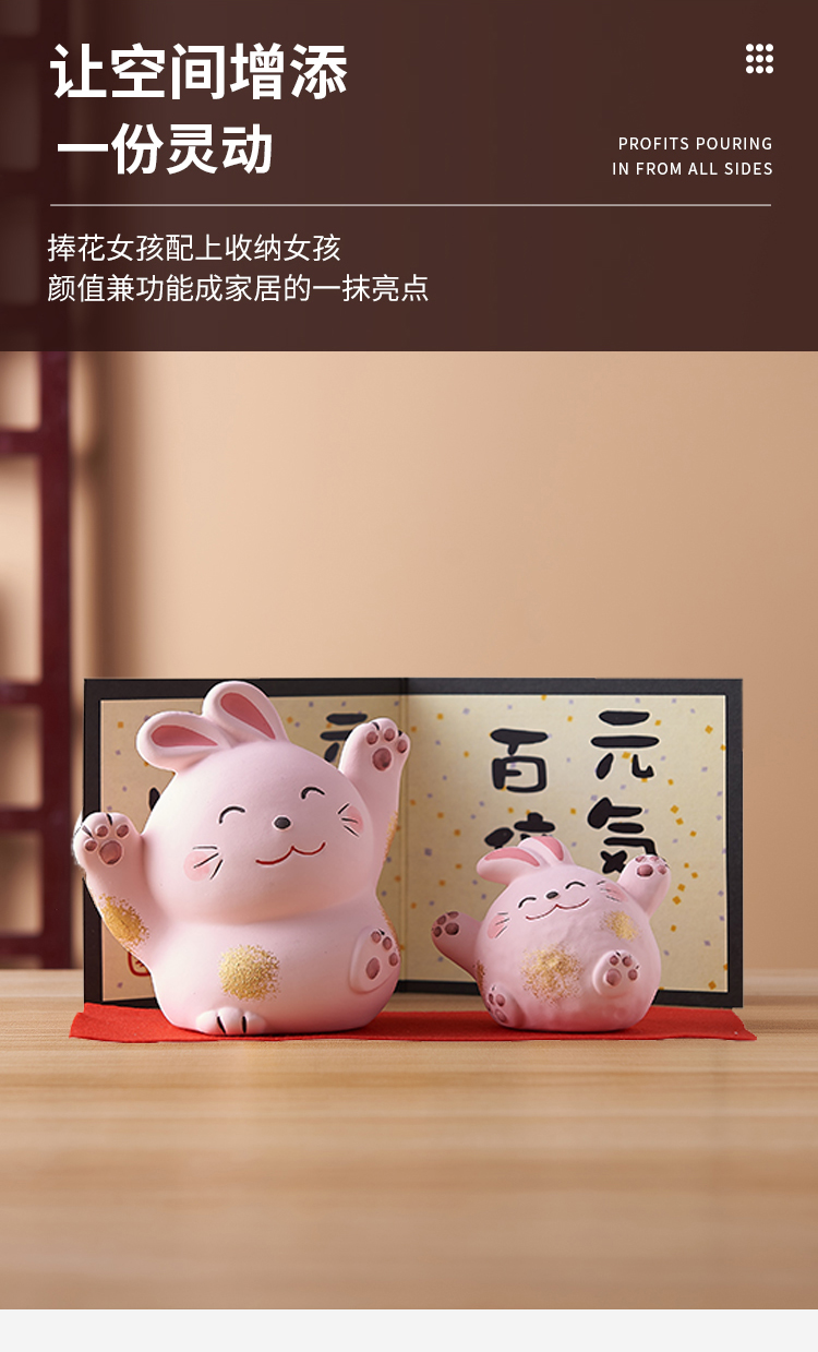 万古烧乐福兔/乐福猫摆件家居饰品书房摆设办公桌装饰开业招财礼品