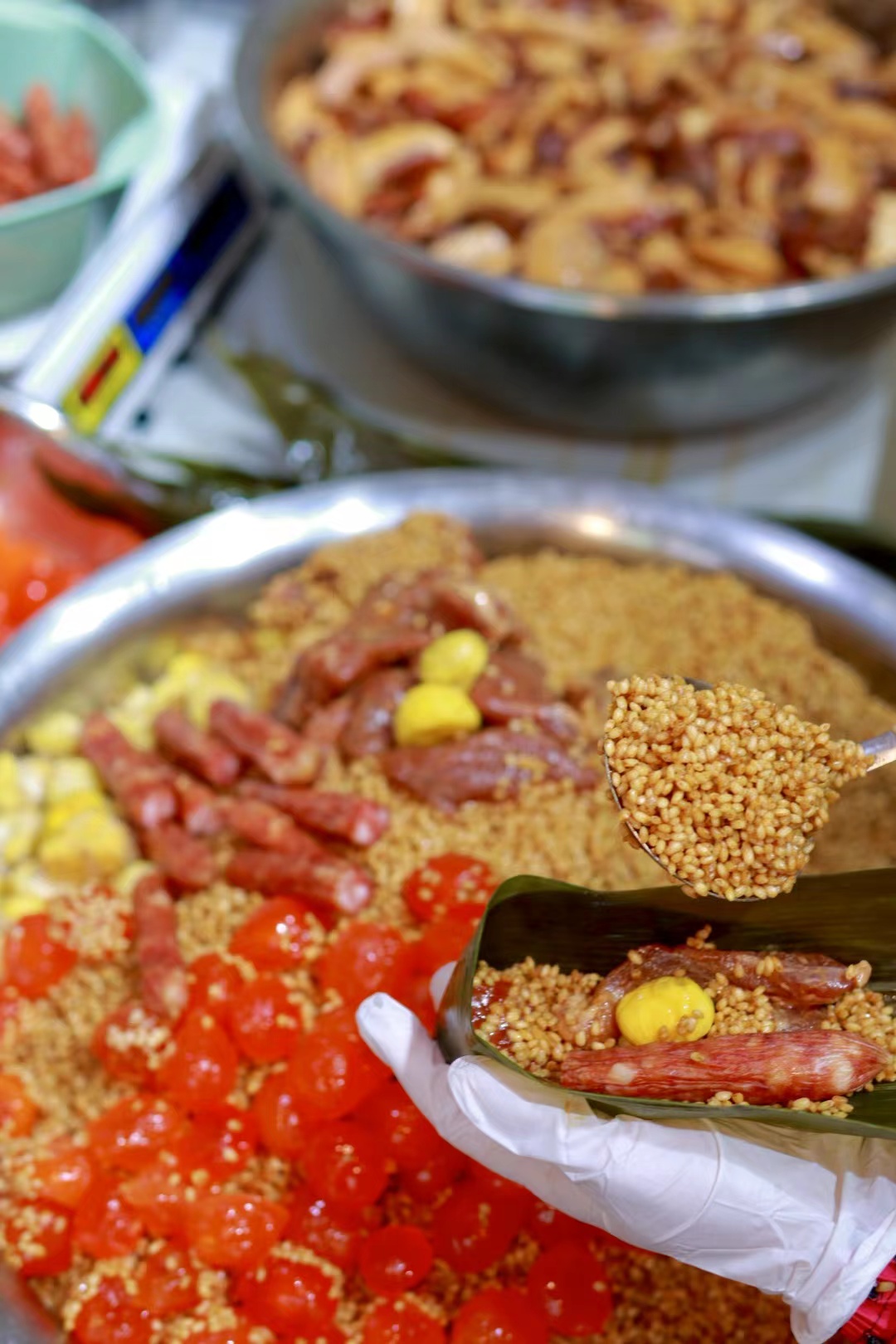 现场手工包粽子食材 肉眼可见的实在