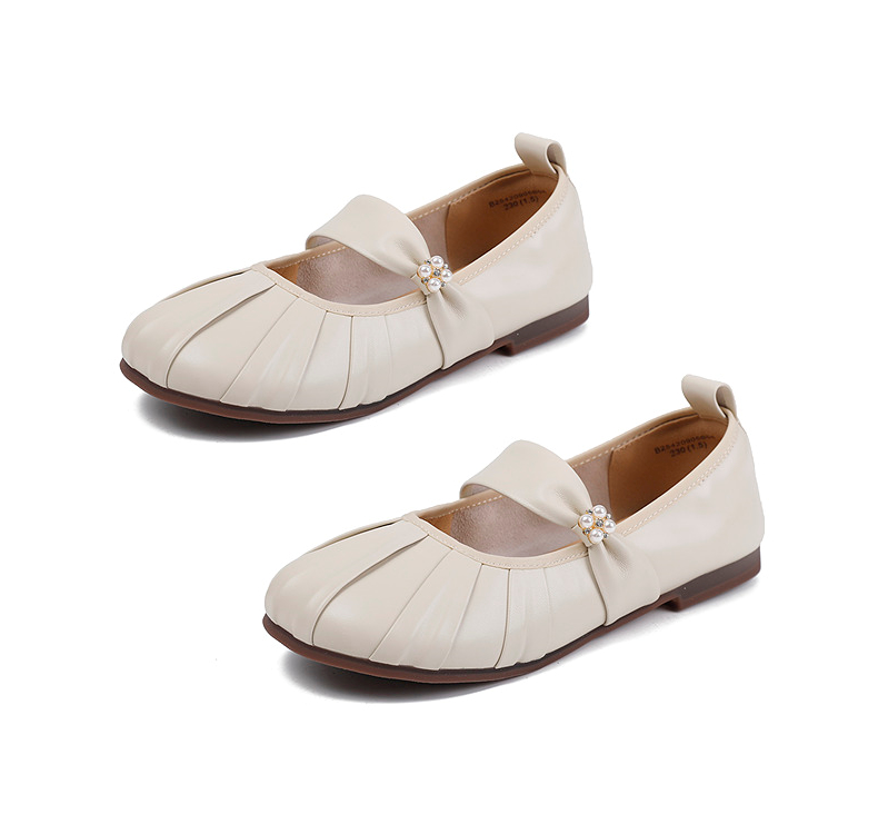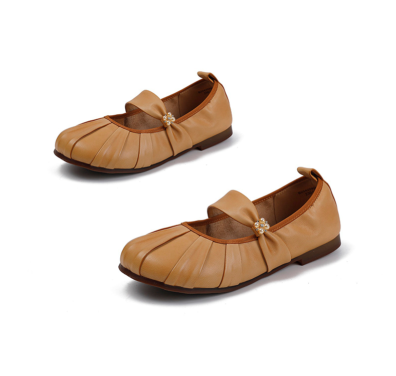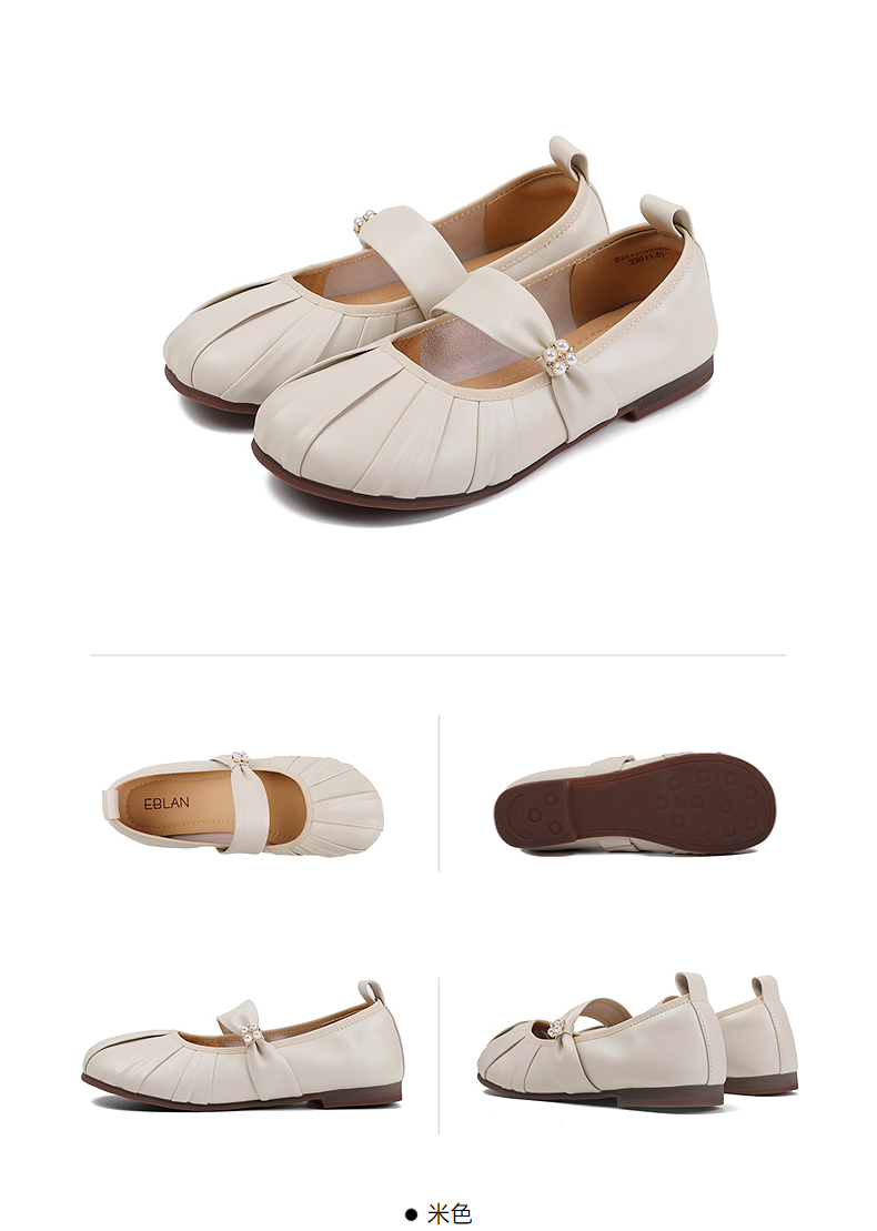 伊伴秋季舒软羊皮鞋面褶皱鞋头舒适低跟单鞋B25420905