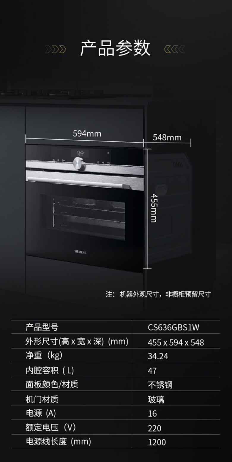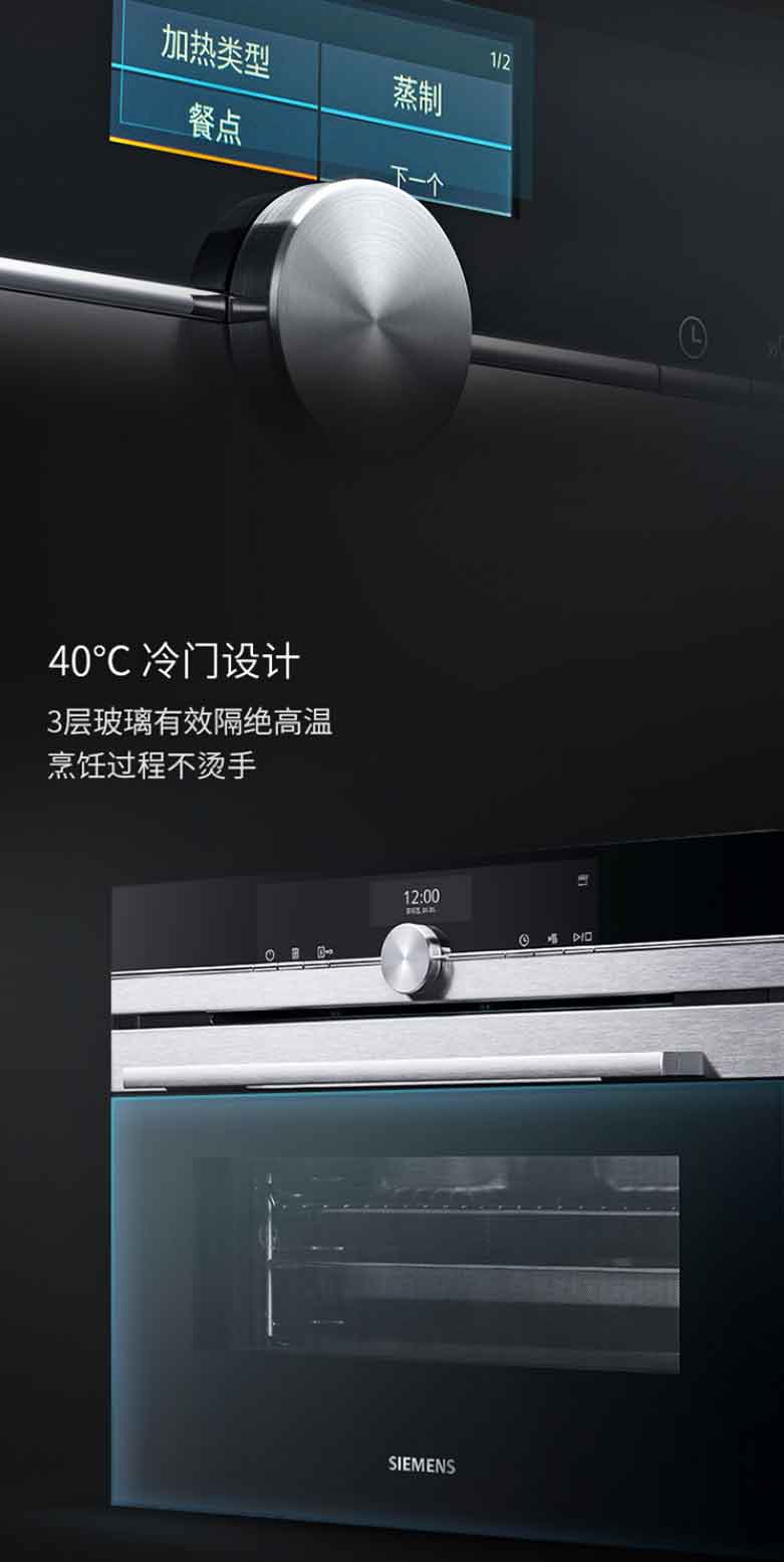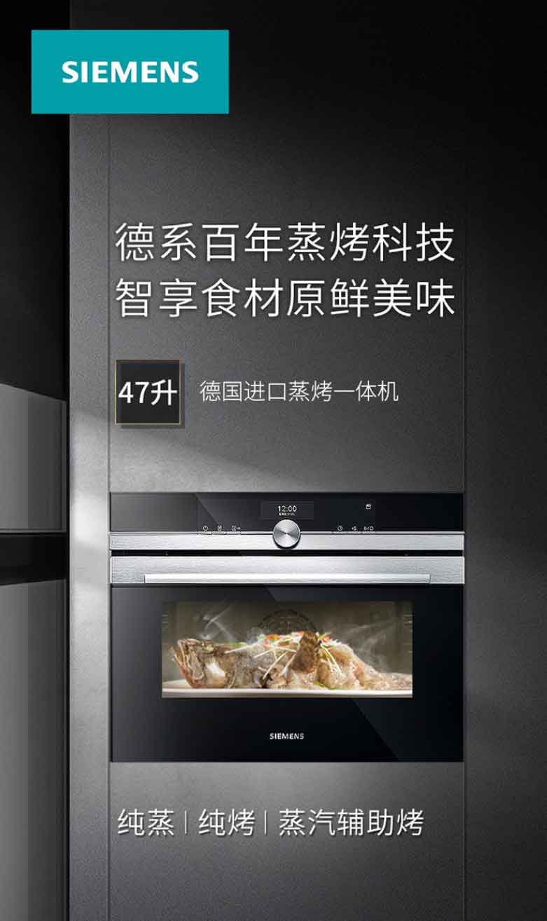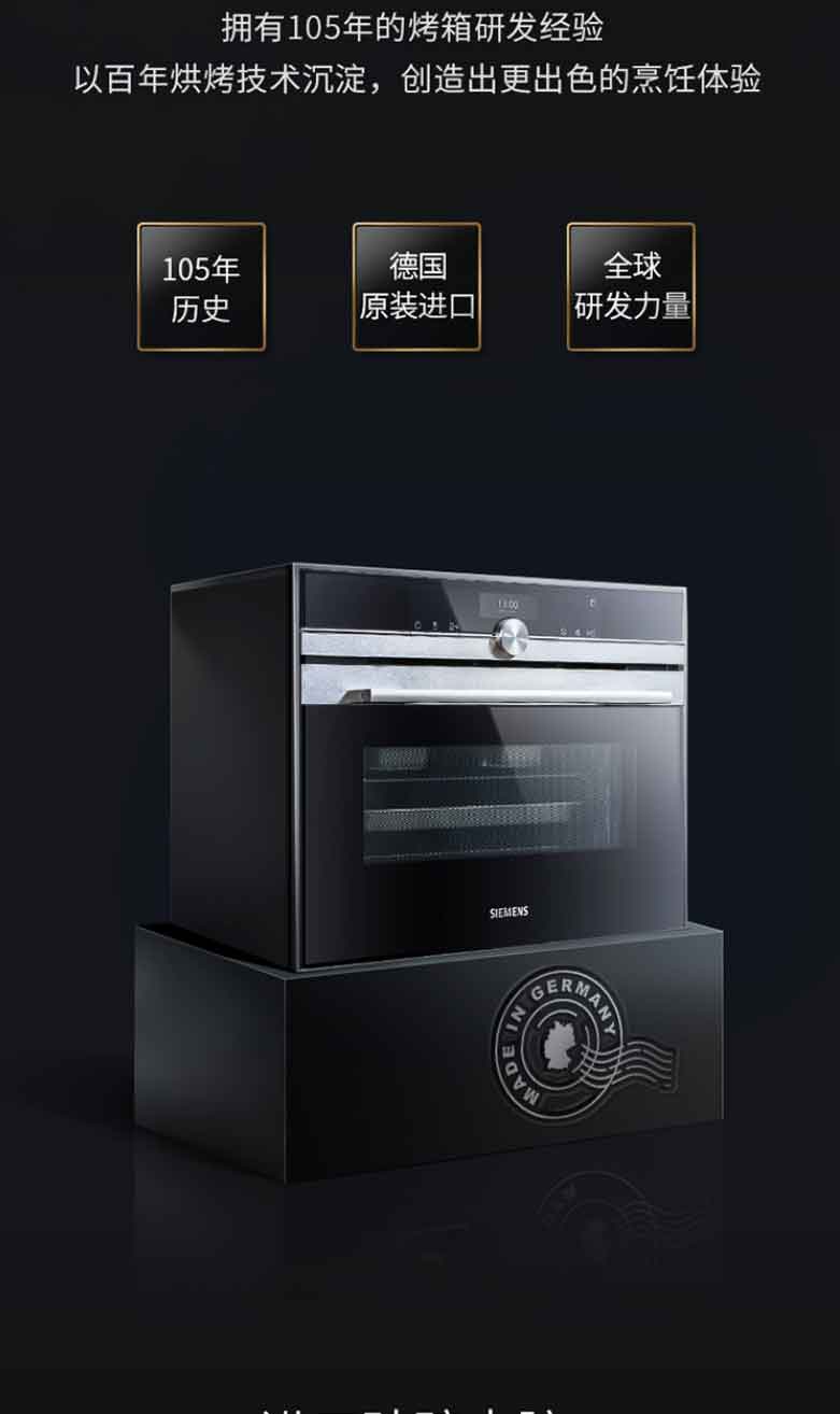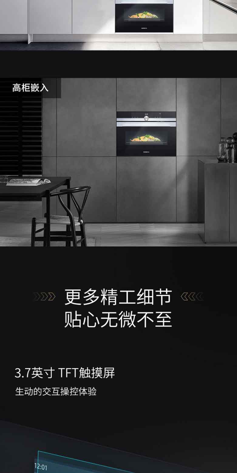 西门子蒸烤箱一体机嵌入式原装进口彩屏蒸汽烤箱蒸箱烤箱二合一 47升大容量搪瓷内腔 CS636GBS1W