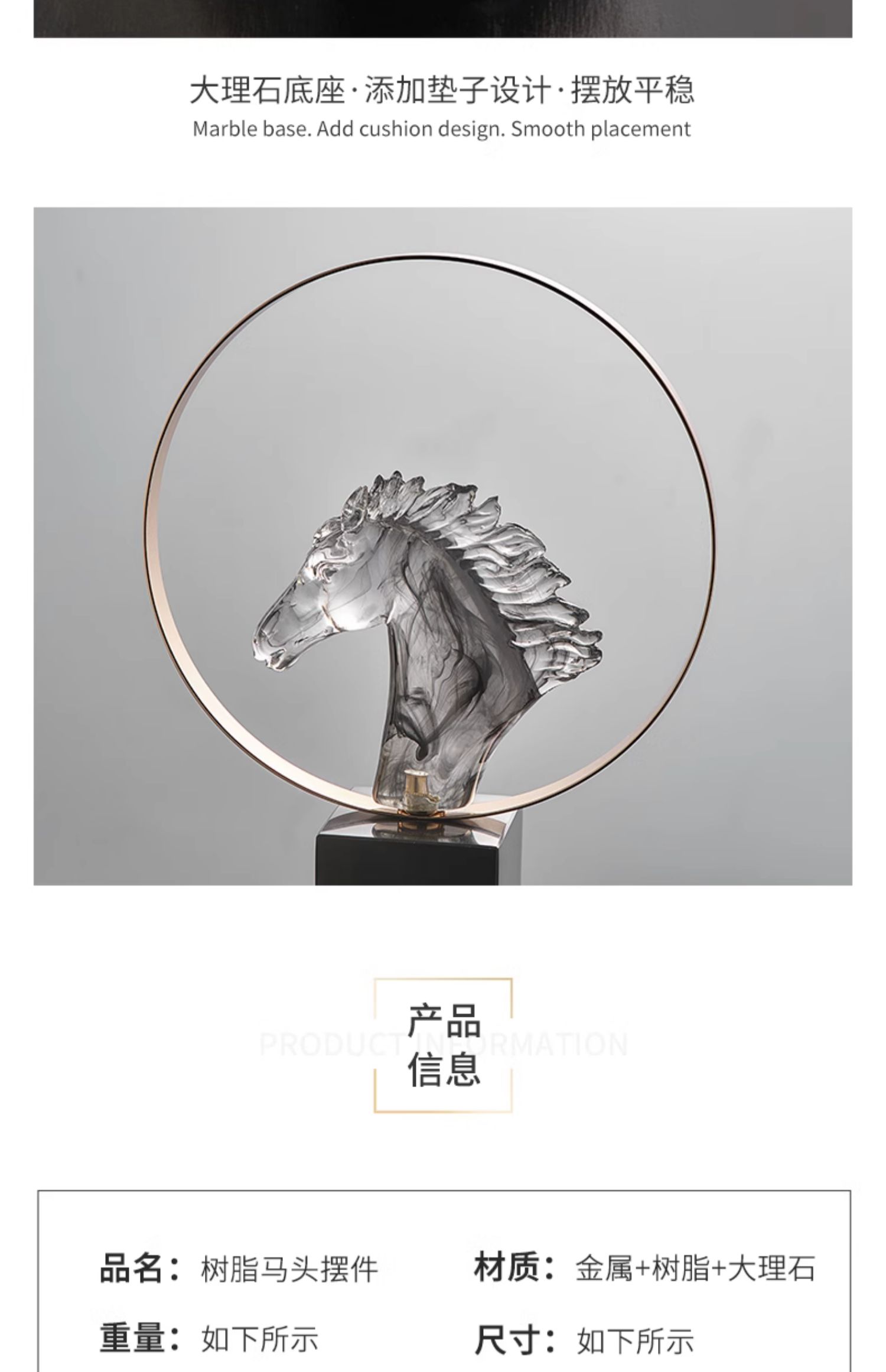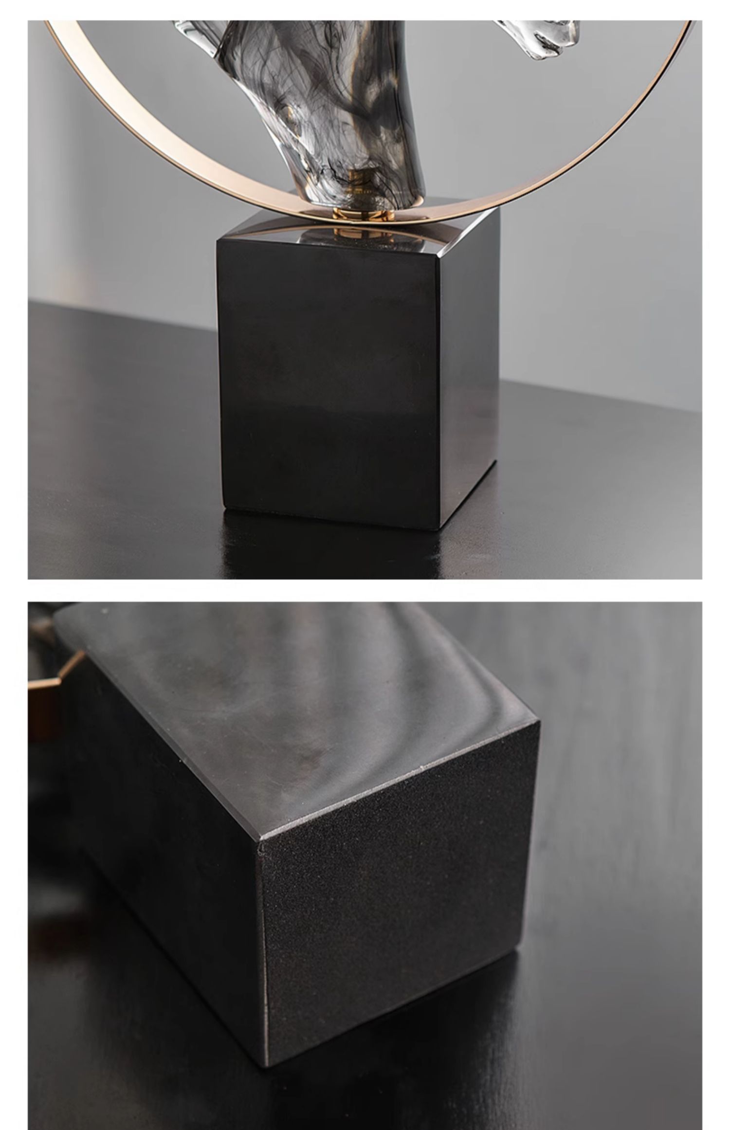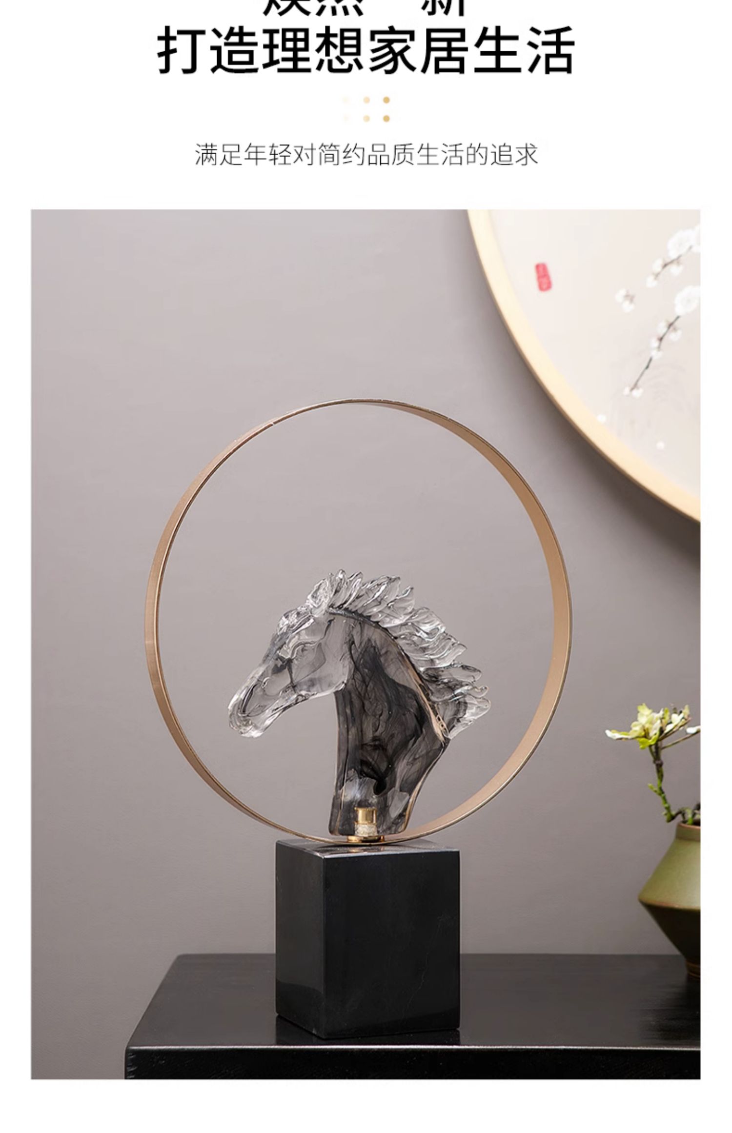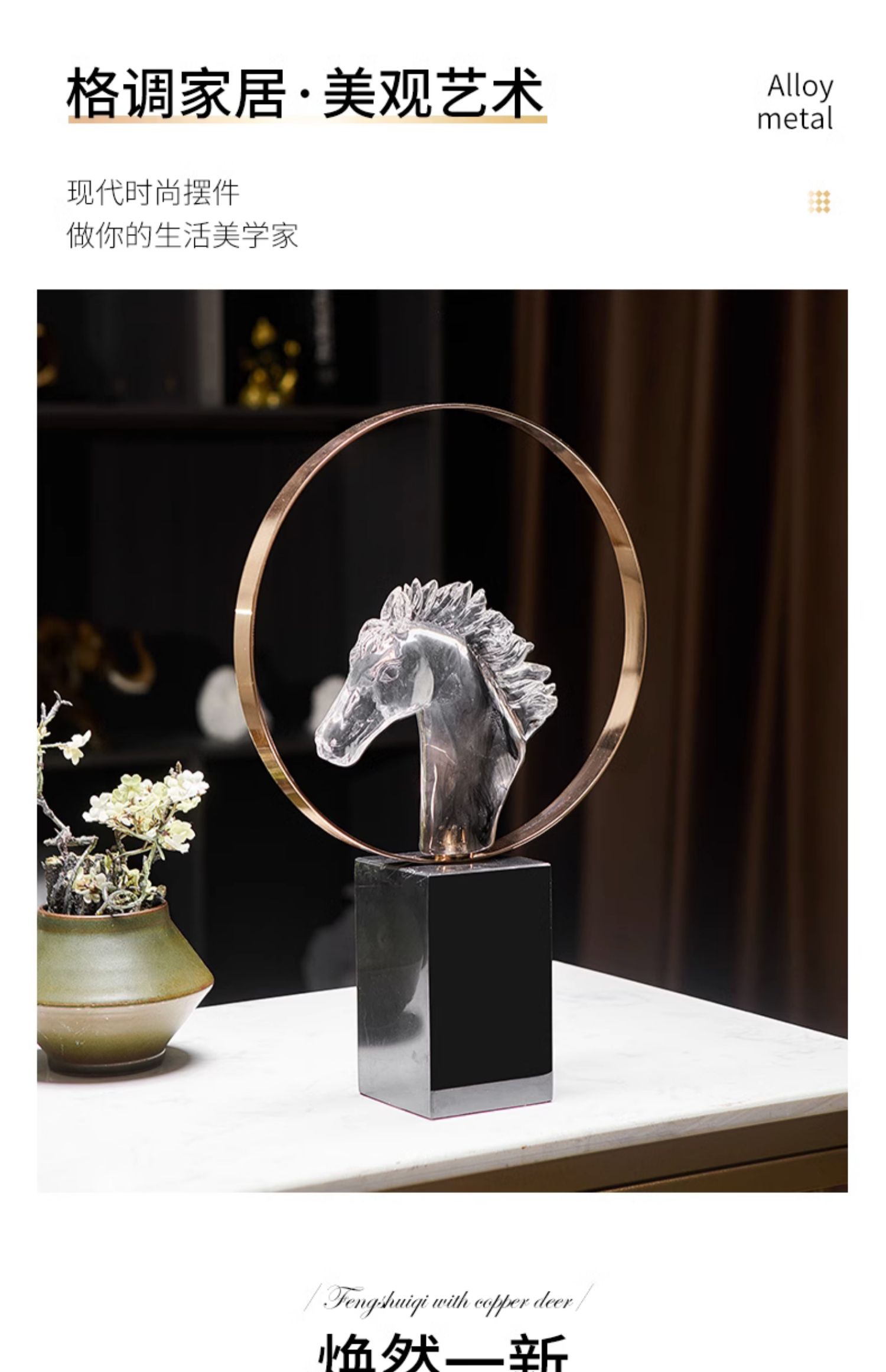 金属圆圈马摆件大理石底座 客厅书房办公室玄关新中式摆件