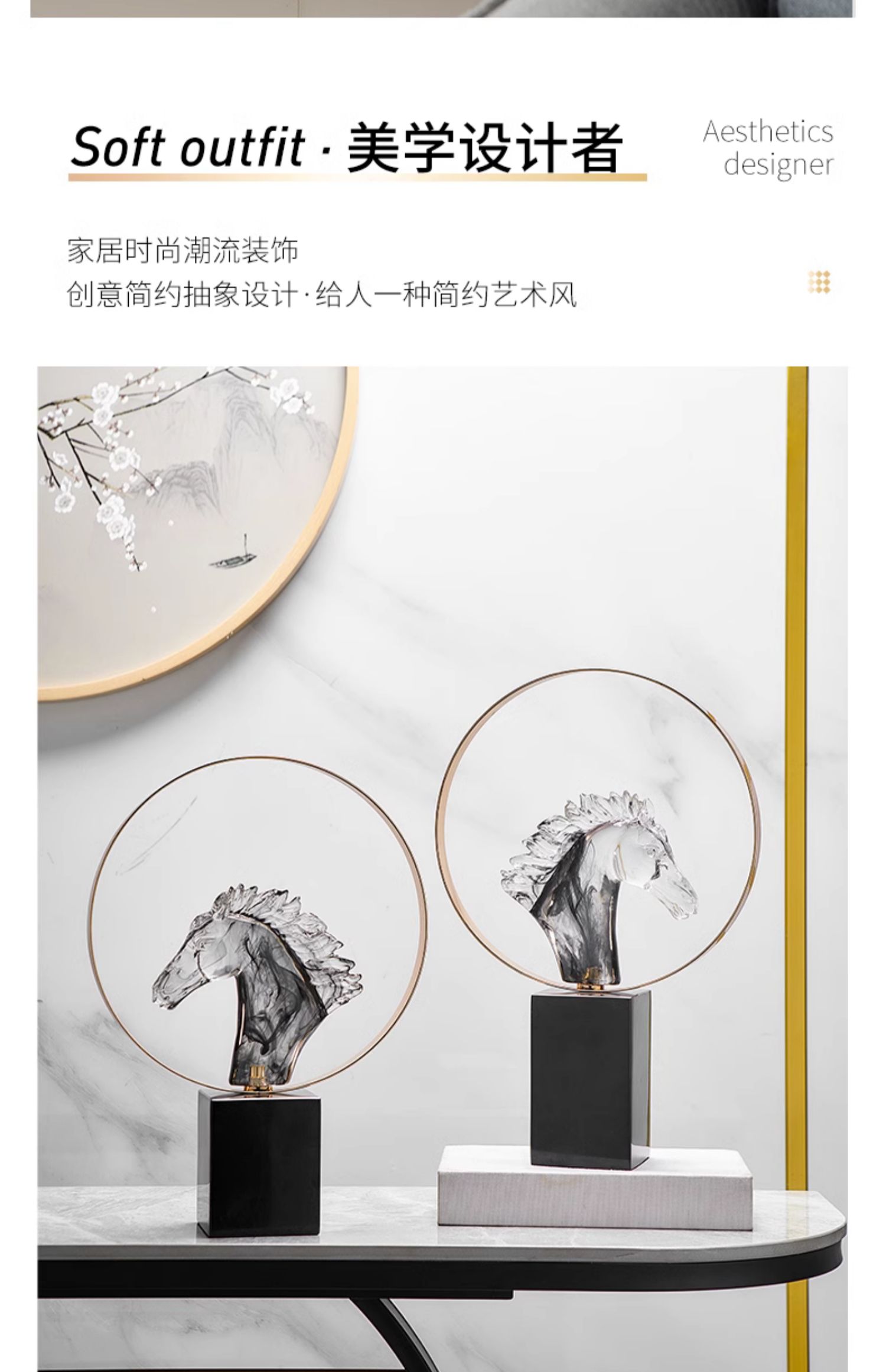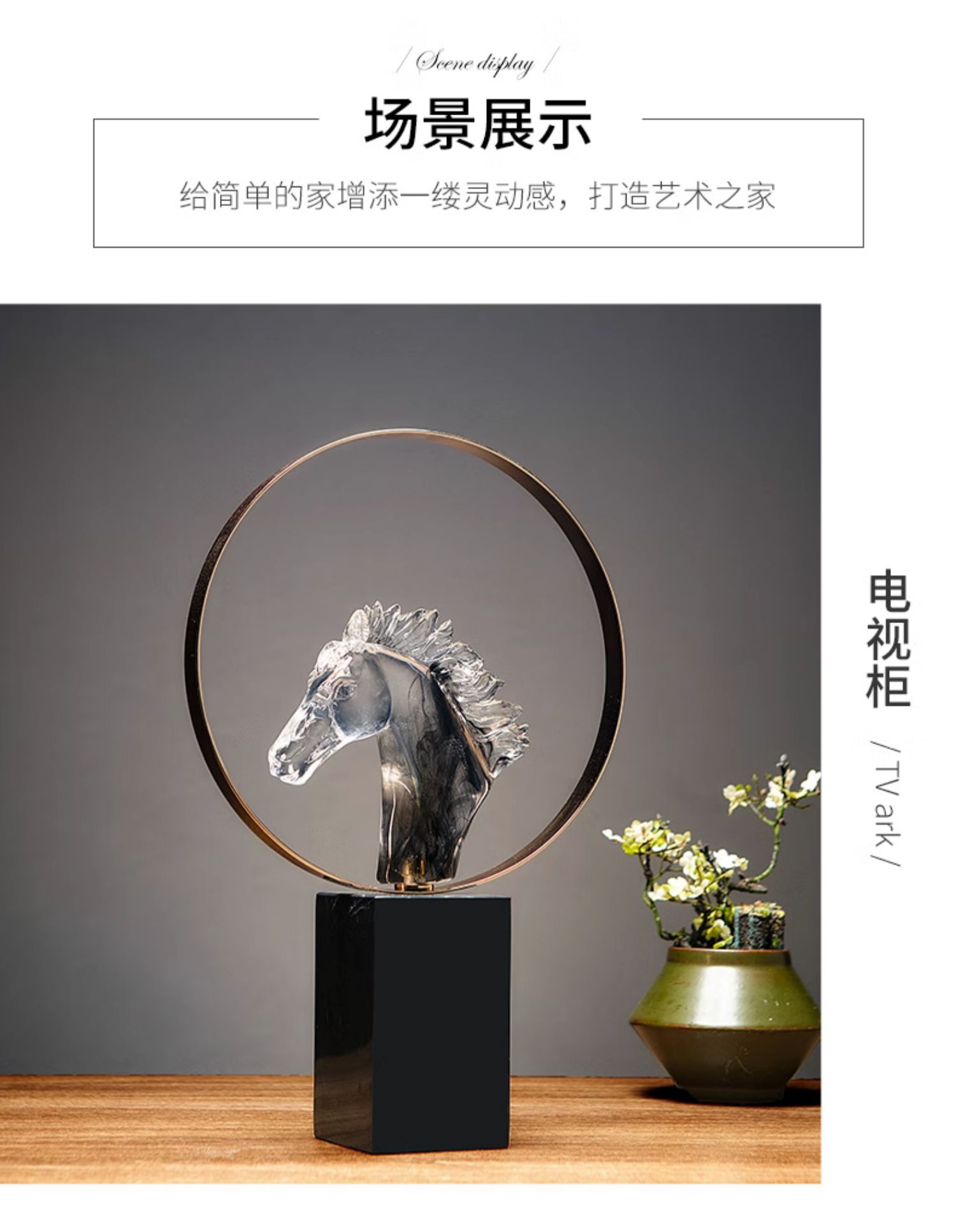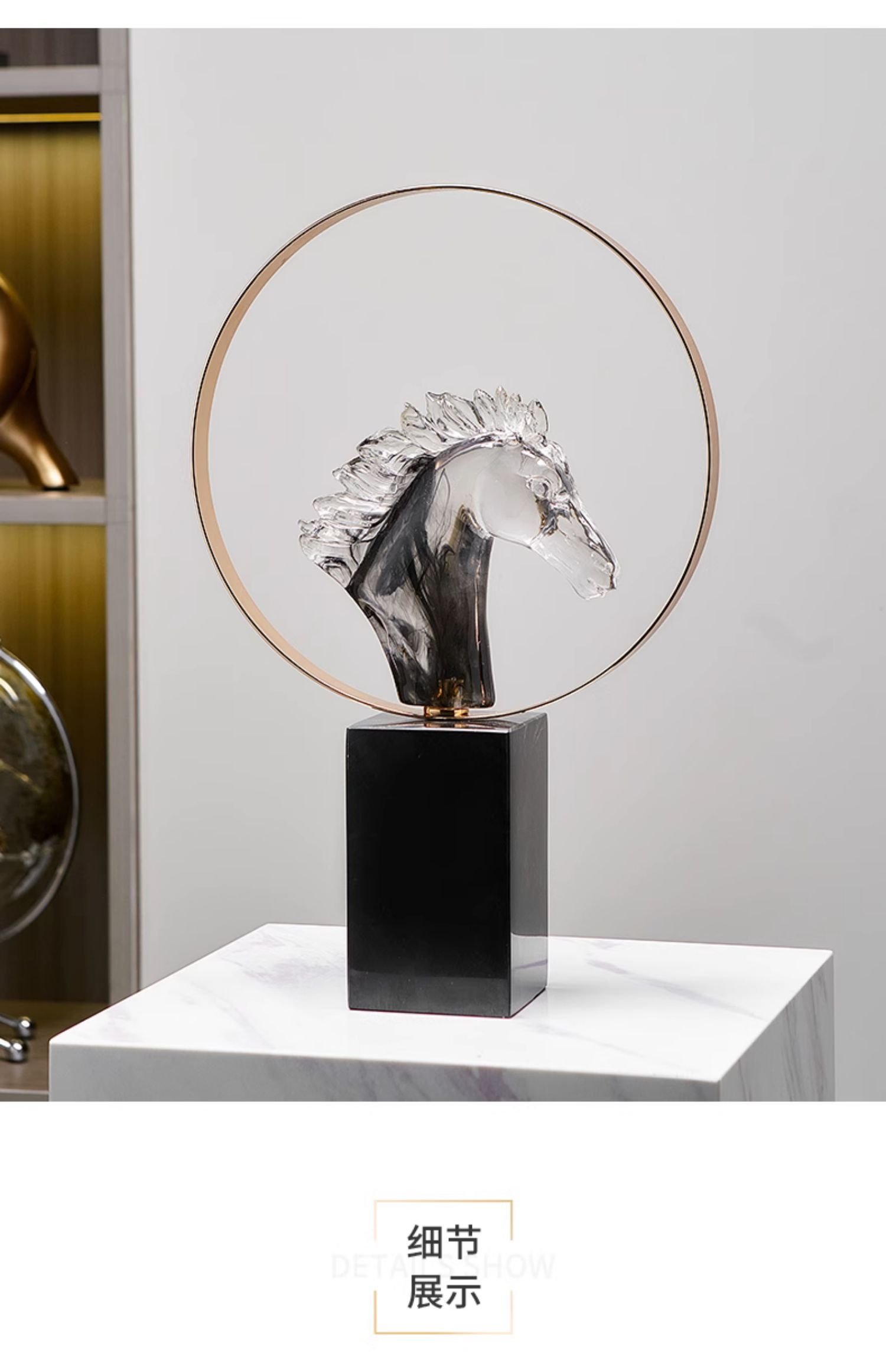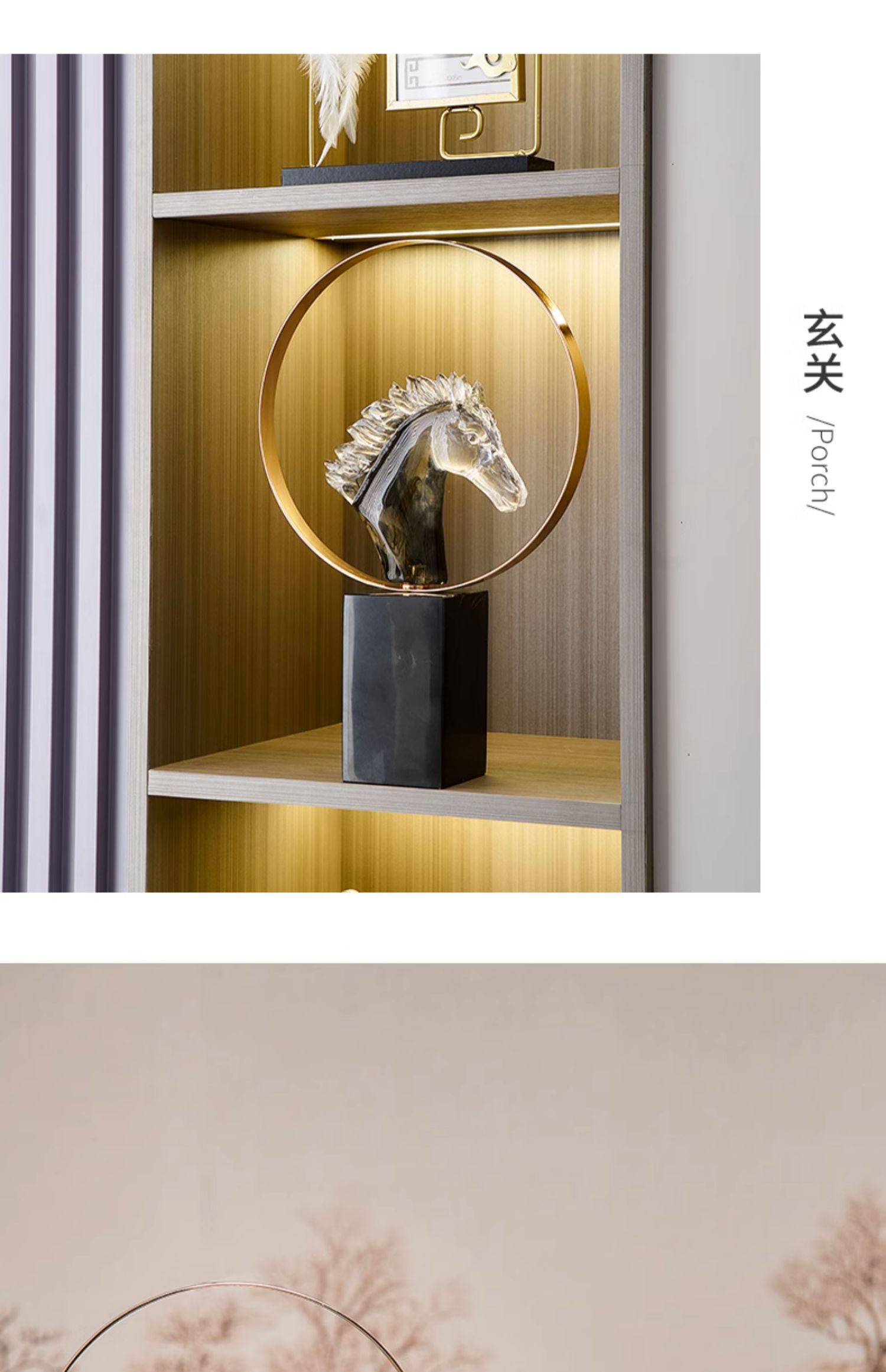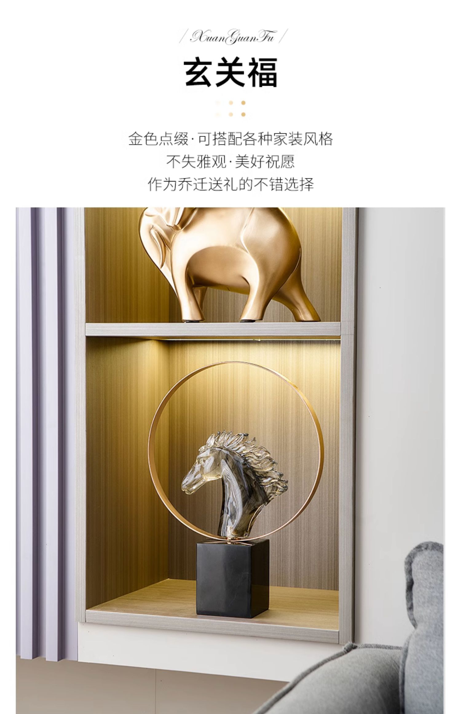 金属圆圈马摆件大理石底座 客厅书房办公室玄关新中式摆件