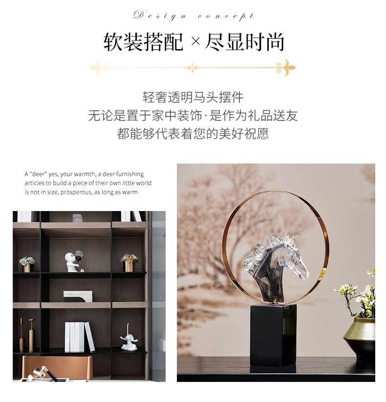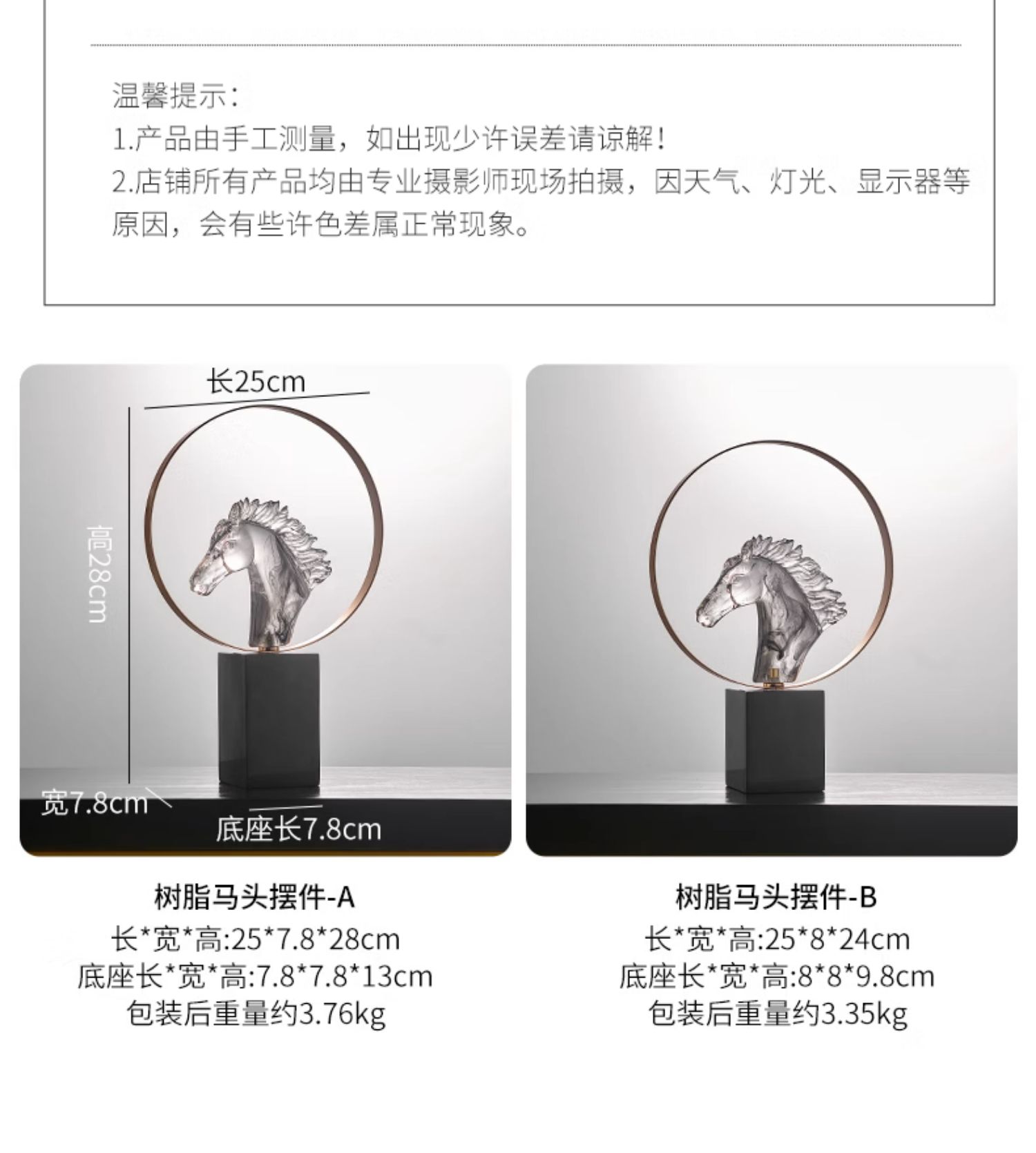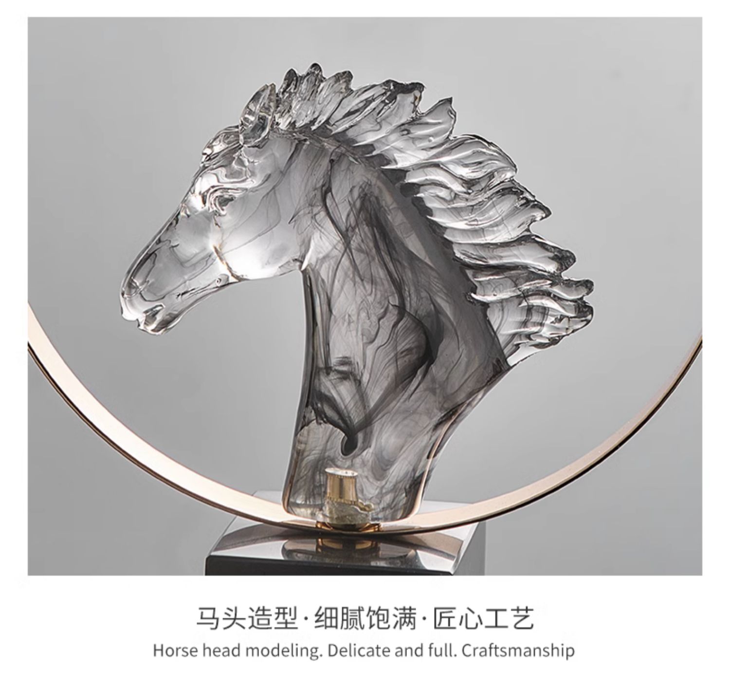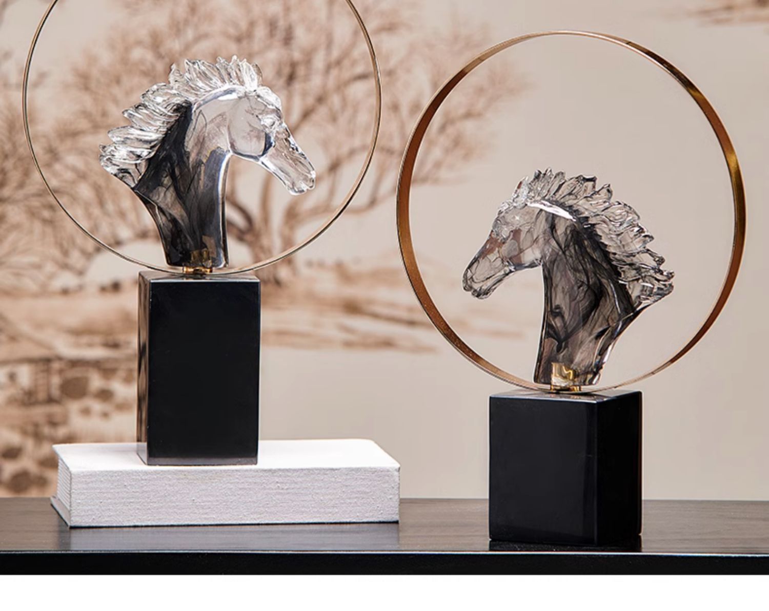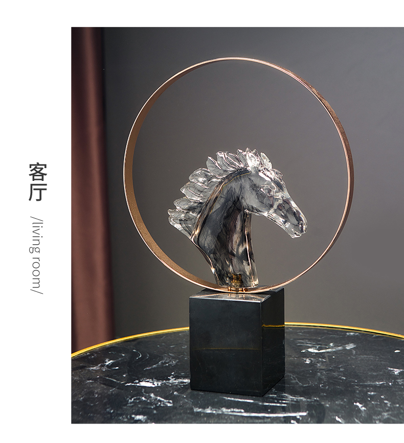 金属圆圈马摆件大理石底座 客厅书房办公室玄关新中式摆件