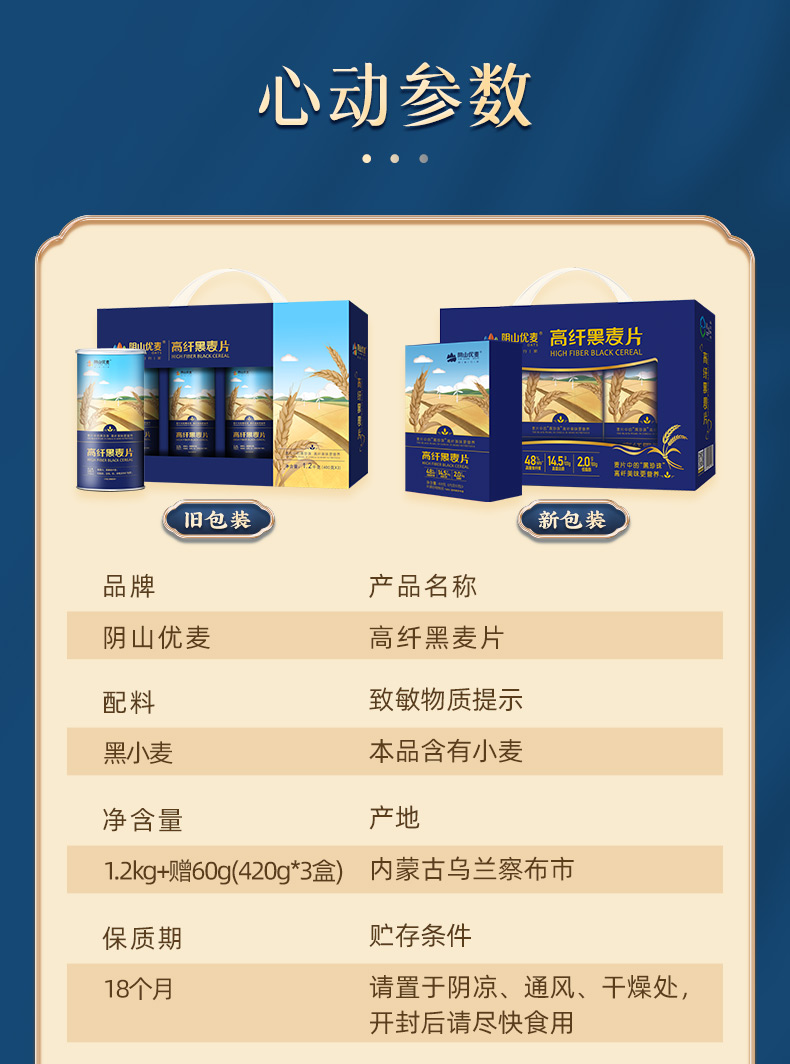 【内蒙古帮扶】阴山优麦丨高纤黑麦片 1.2kg
