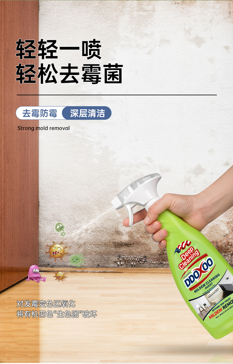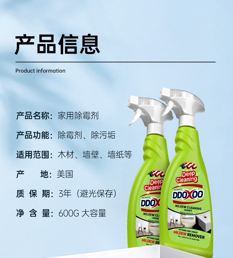 【DDOXXO 深层清洁除霉剂】一瓶600G,超大容量,除霉率>99%,根源除霉,渗透瓦解霉菌,温和配方,墙体 木材 卫生间 厨房等都可使用
