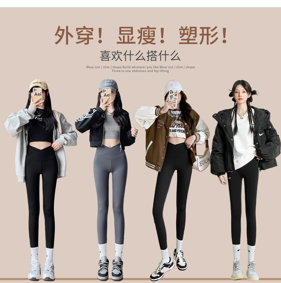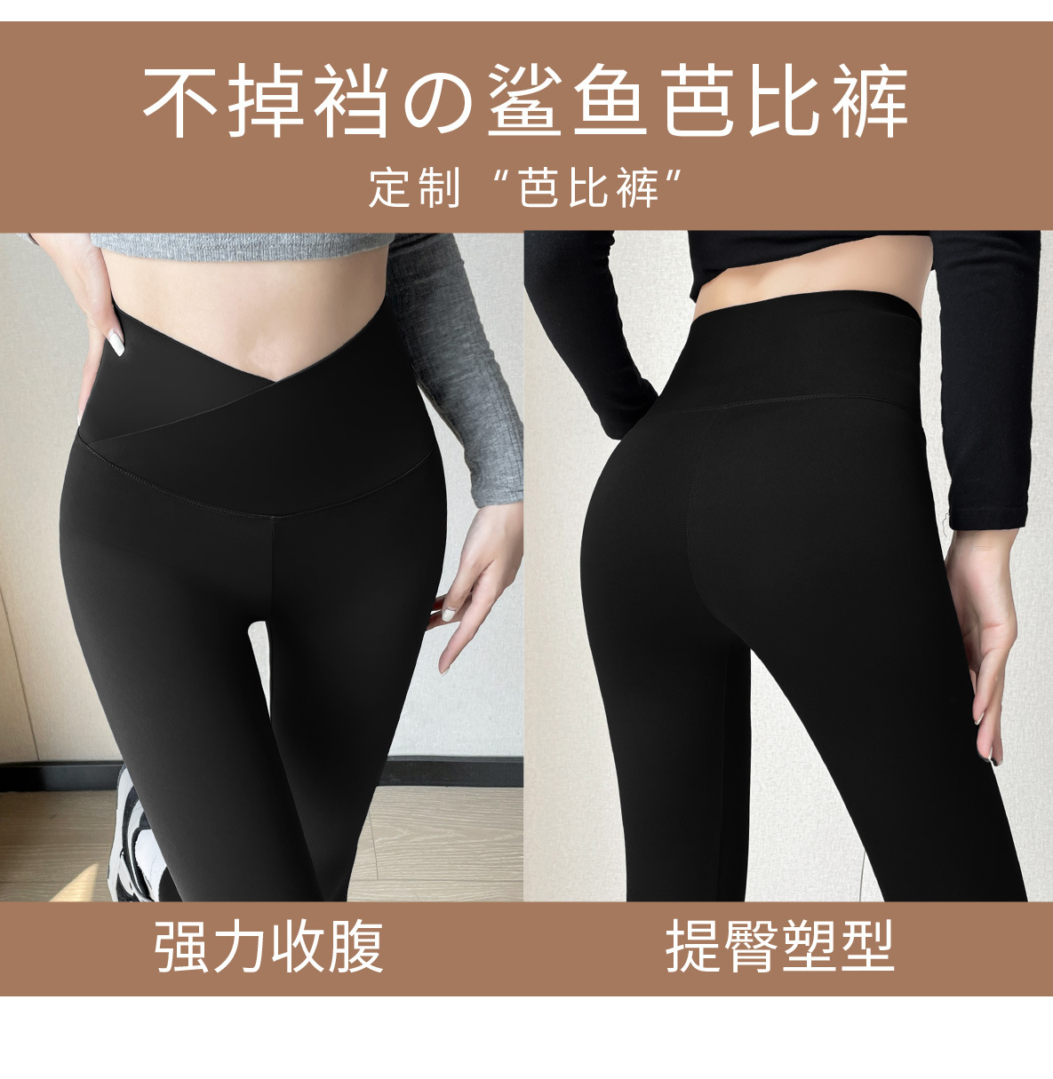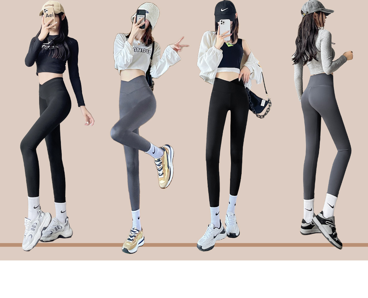 「交叉腰设计!亲肤无痕」鲨鱼裤春秋季外穿芭比长裤 交叉高腰收腹提臀修身显瘦女士紧身打底裤下装