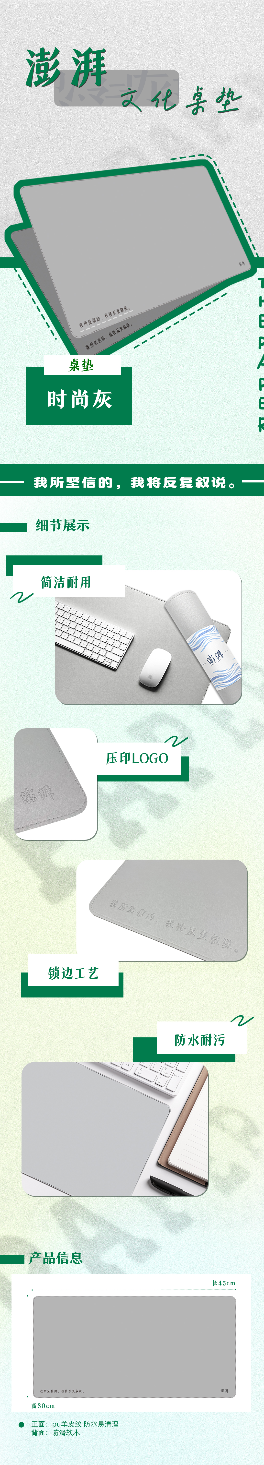 【澎澎湃湃】澎湃文化桌垫~PU羊皮纹 简约电脑办公室桌垫鼠标垫,防水防油易清洗