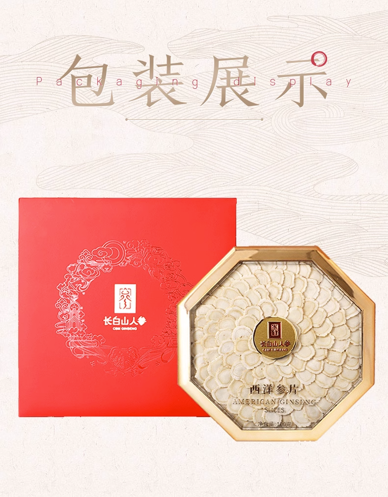 【长白山人参】西洋参八角盒排片礼盒1.6/100克