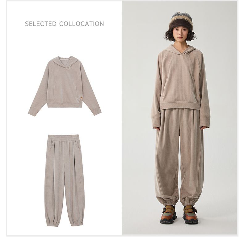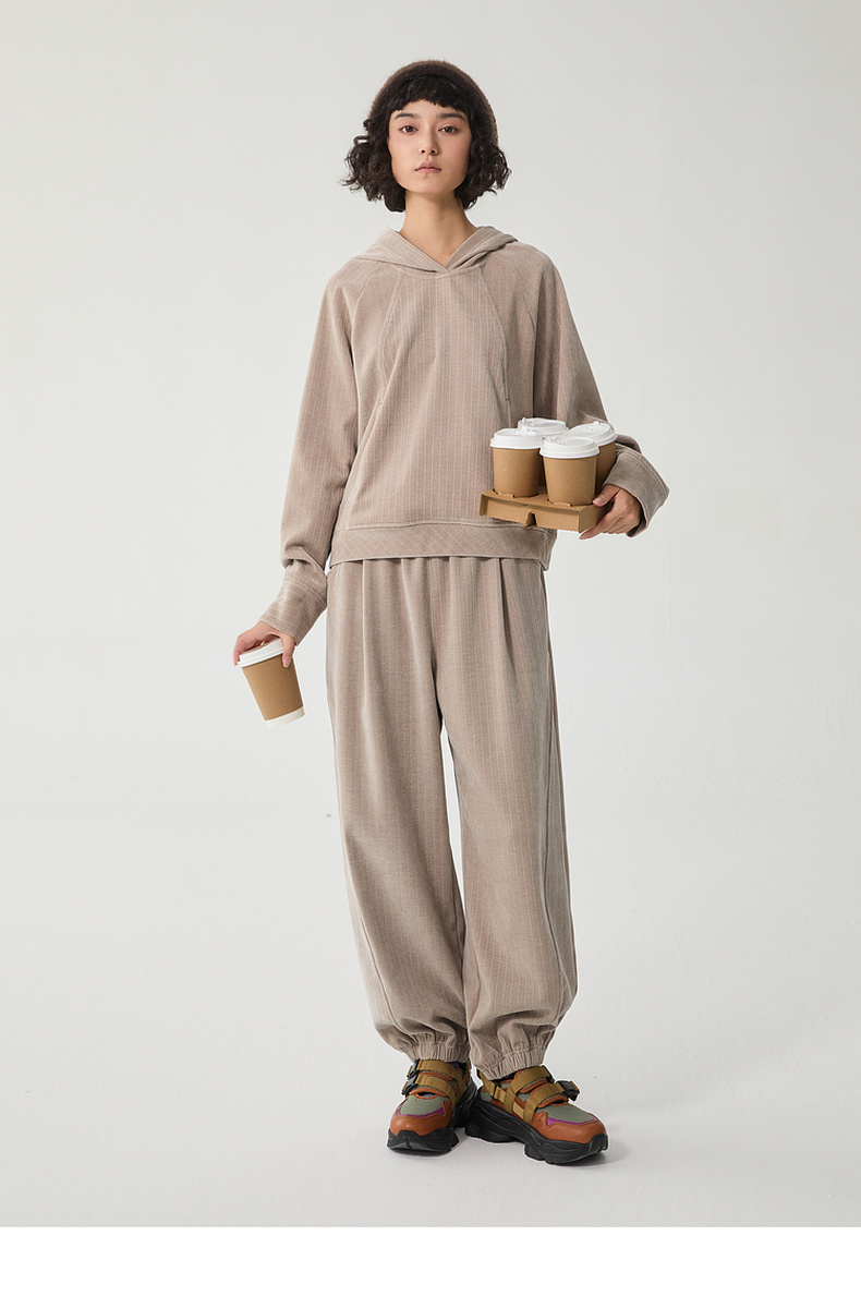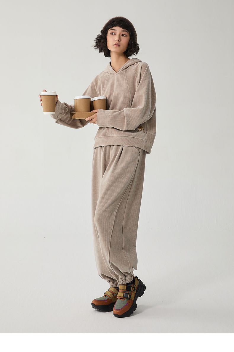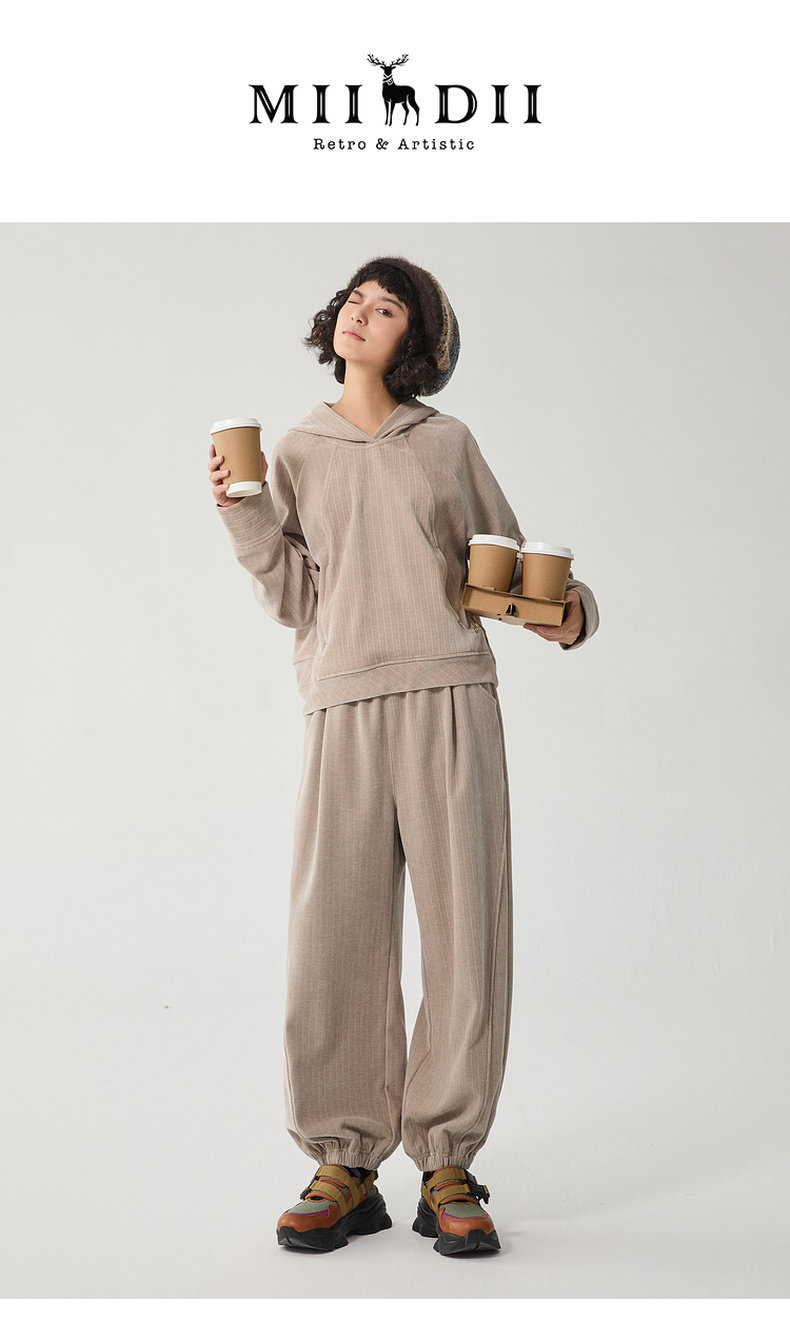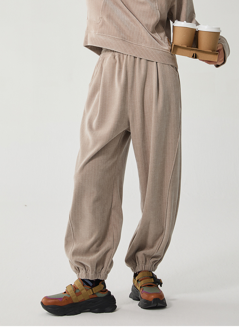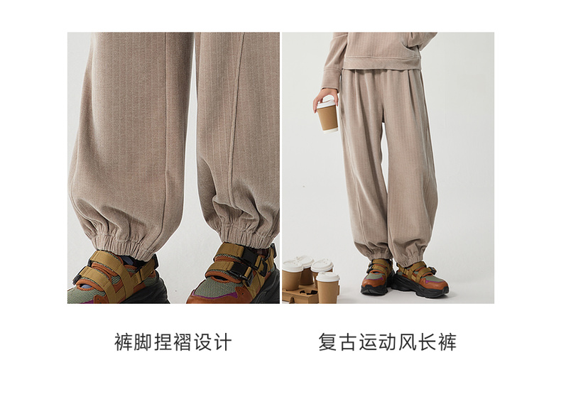谜底休闲裤女2024冬新品运动风松紧腰厚款宽松束脚卫裤244MK1610