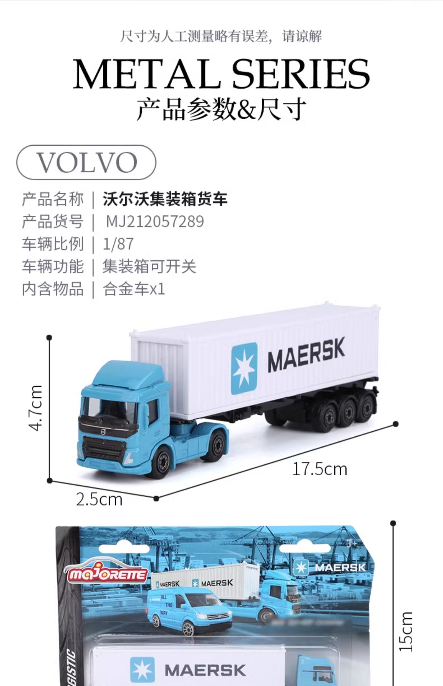 Majorette美捷轮马士基物流运输车集卡货机合金属车模奔驰沃尔沃 款式随机发