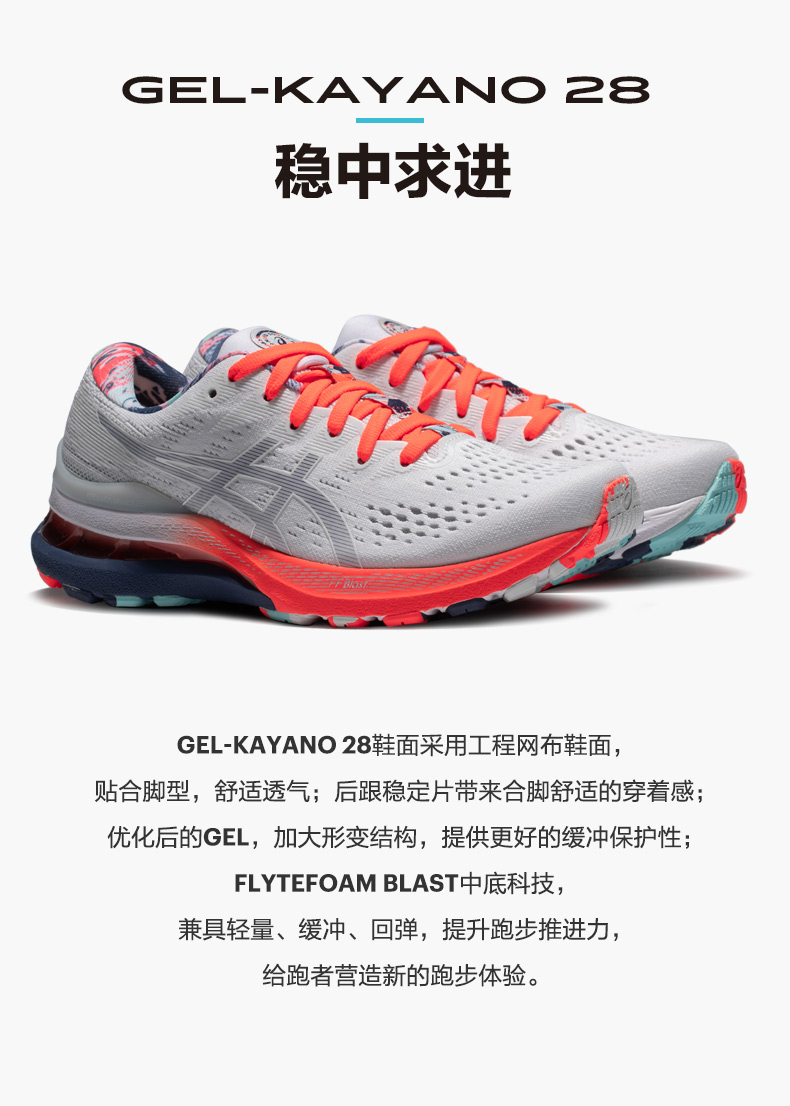 ASICS亚瑟士 GEL-KAYANO 28跑鞋 稳定支撑缓震跑鞋 休闲透气轻便舒适运动鞋男女鞋