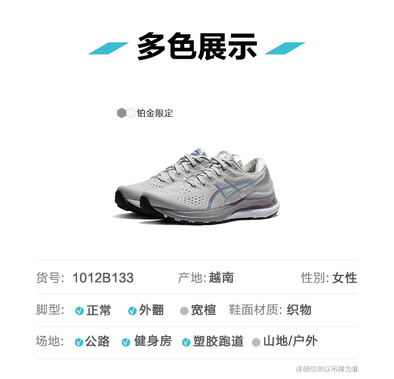 品名:ASICS亚瑟士 GEL-KAYANO 28跑鞋 包装方式:盒装 快递:中通 发货地:上海 运费模板:新疆、西藏加20,其余地区包邮,港澳台不发货,快递停发区域不发货。 发货时效:1-7天内,绝大部分商品在72小时内发出,极个别缺货订单在7天内发出 售后标准: 1,商品支持七天无理由退货,不影响二次销售前提下,签收7天内可退换。 2,少量商品可能会出现少量线头、褶皱等情况,不属于质量问题,如有污损/脱胶等情况请及时提供清晰图片及视频给客服反馈。 3,所有商品照片均为专业摄影公司拍摄、制作及色彩调整,以尽力保证与实际商品一致,但由于灯光、显示器色彩偏差、个人对颜色理解的不同等导致的偏差,该类问题不属于质量问题,最终颜色以实际商品准。 4,品牌方不同产地,不同批次商品款式尺码大小会有一定出入,我们会尽可能为你提供更为详细的商品参数,客服只针对您提供的大致体型给出购买建议,请在购买时仔细选择,尺码不合适支持运费自理换货。质量问题退换货我司承担退换运费,其他情况由买家承担退换货运费。 |