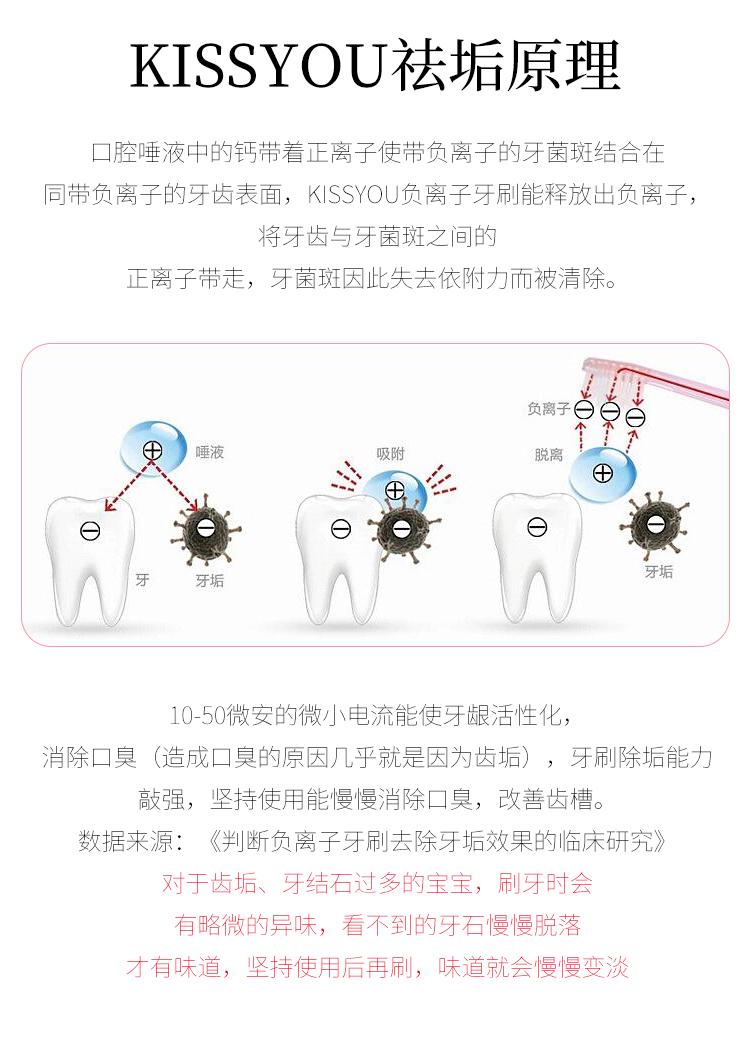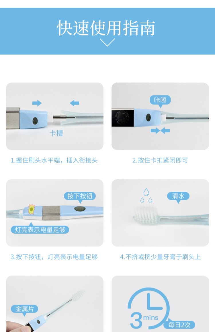 关于牙膏:这款是可以不用牙膏就能达到清洁牙渍、牙垢效果的(坚持使用),但是对于去除口气没有太多的帮助,因此,蓓蓓建议大家配合牙膏去使用,或者正常刷牙程序过后,再用这款牙刷干刷,效果会更好!