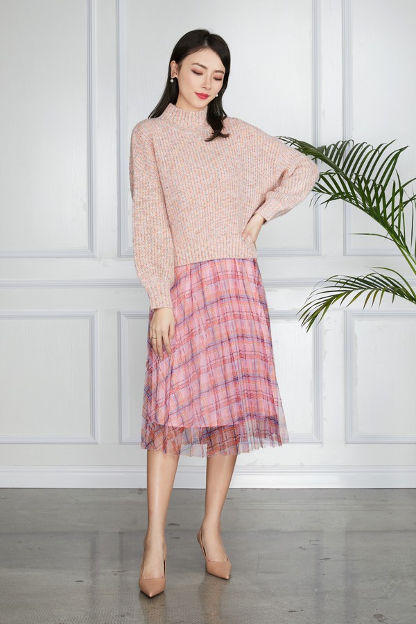 BONNIE ALEX 藕粉色简约针织衫 1356