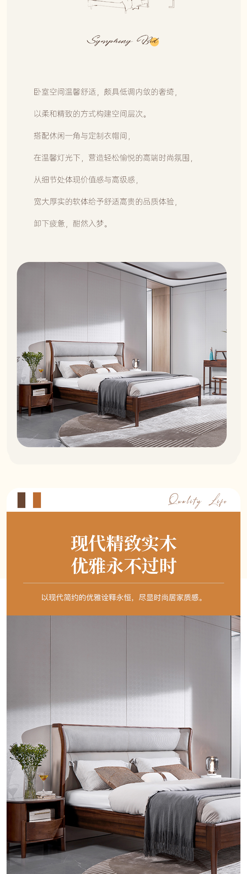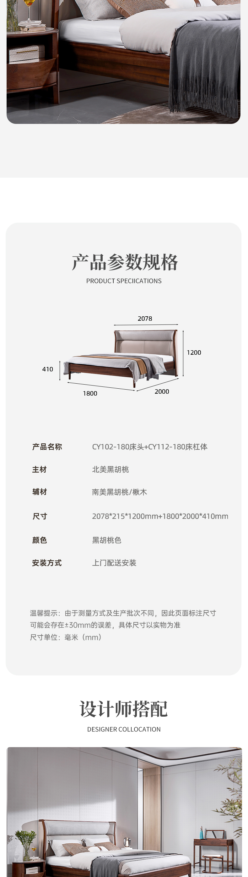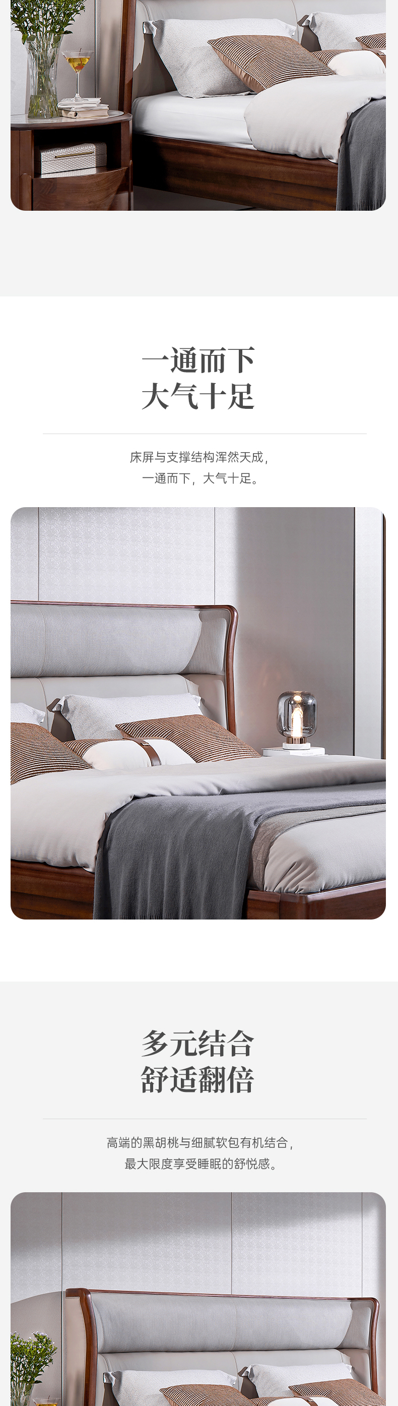 【轻法风格-CY102床】轻法风/卧室/北美黑胡桃木/实木+真皮床