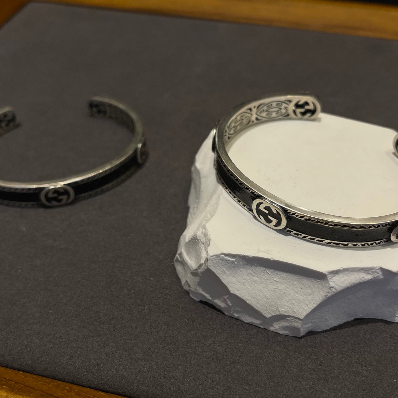 纯银材质 复古做旧 珐琅烤漆 互扣双G标志 织纹滚边 情侣同款