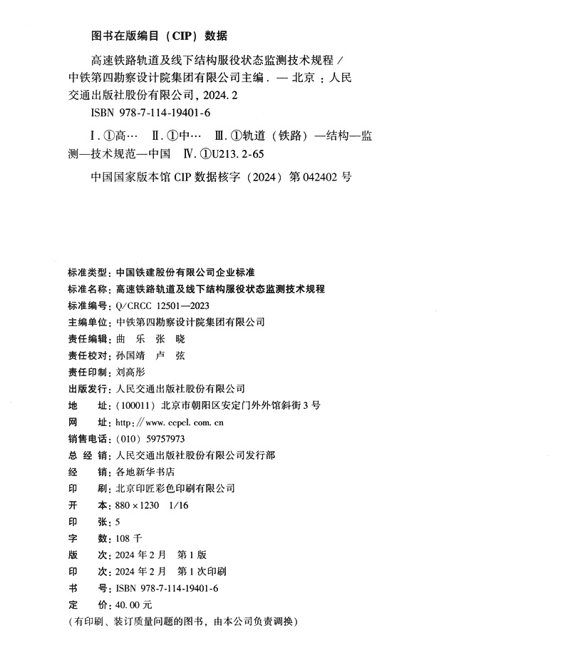 书名:高速铁路轨道及线下结构服役状态监测技术规程