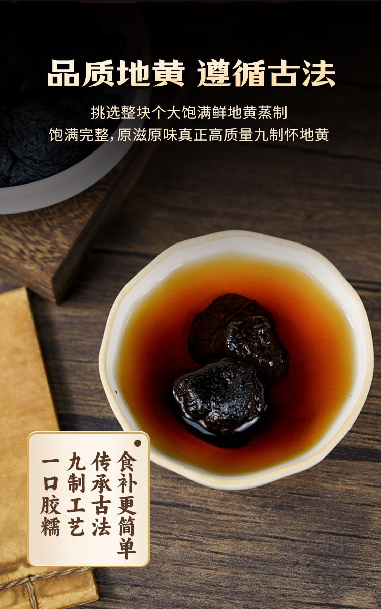 温馨提示:素食版不含黄酒,脾胃功能相对较弱、酒精过敏者建议选择素食版怀地黄