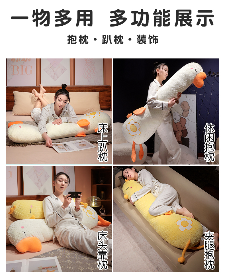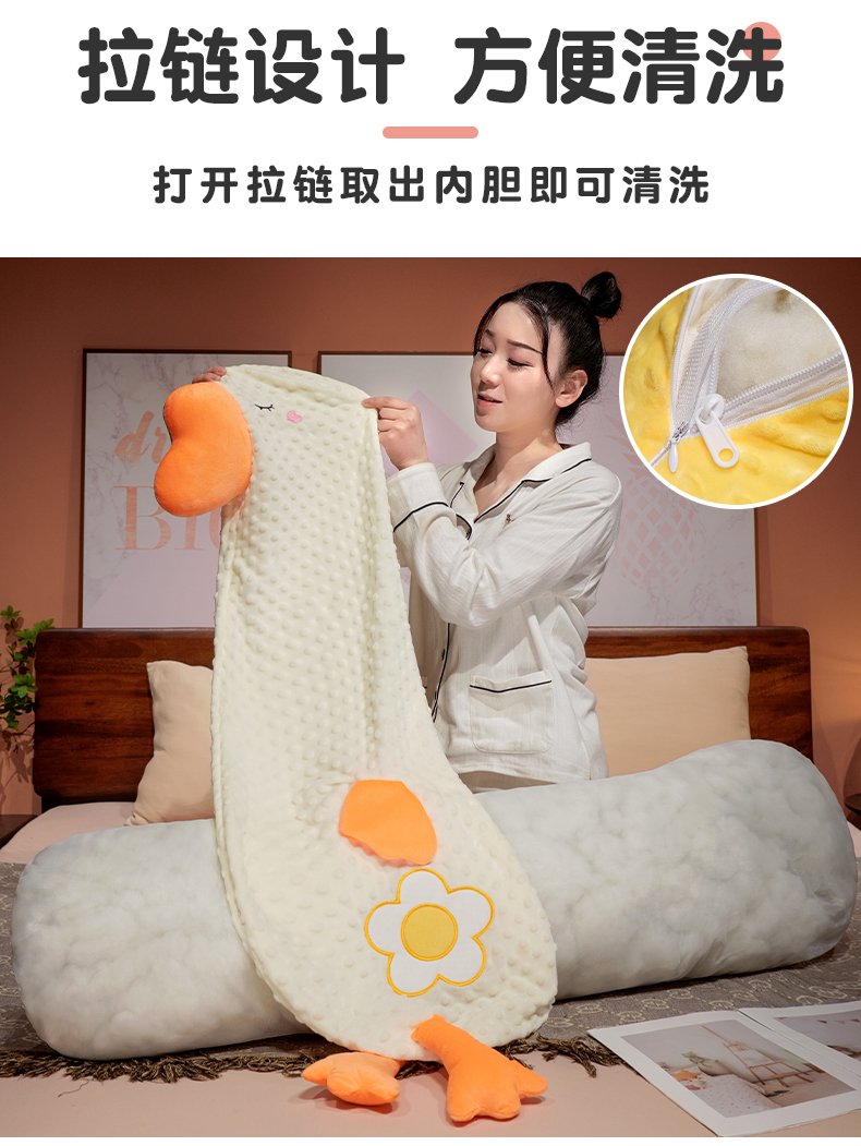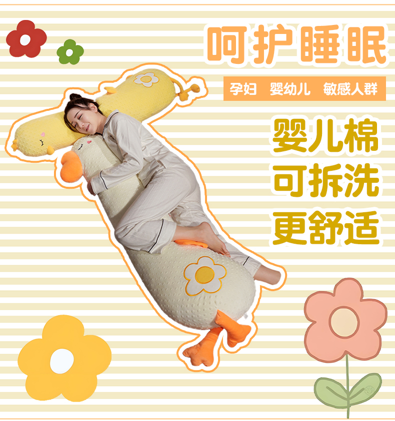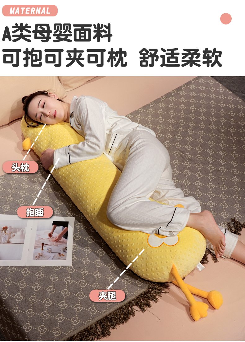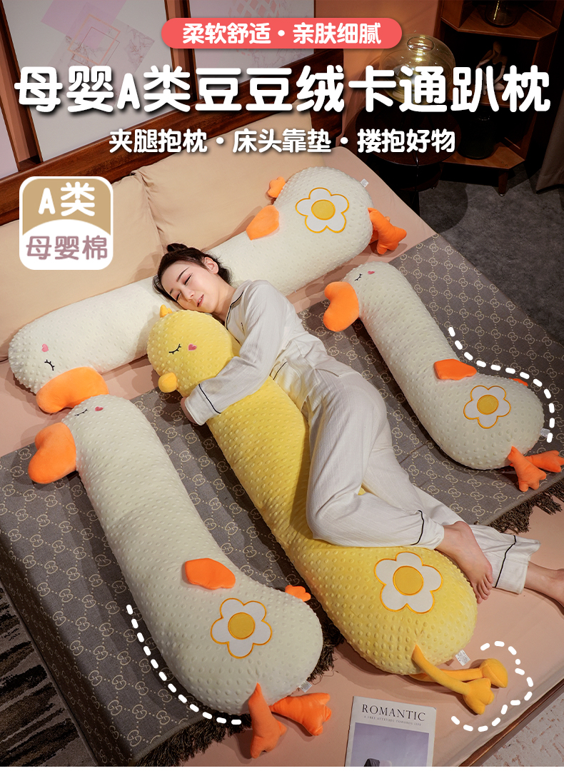 自然醒豆豆绒大鹅长条抱枕女生侧睡夹腿神器男生款孕妇宿舍靠枕床头靠垫QYL