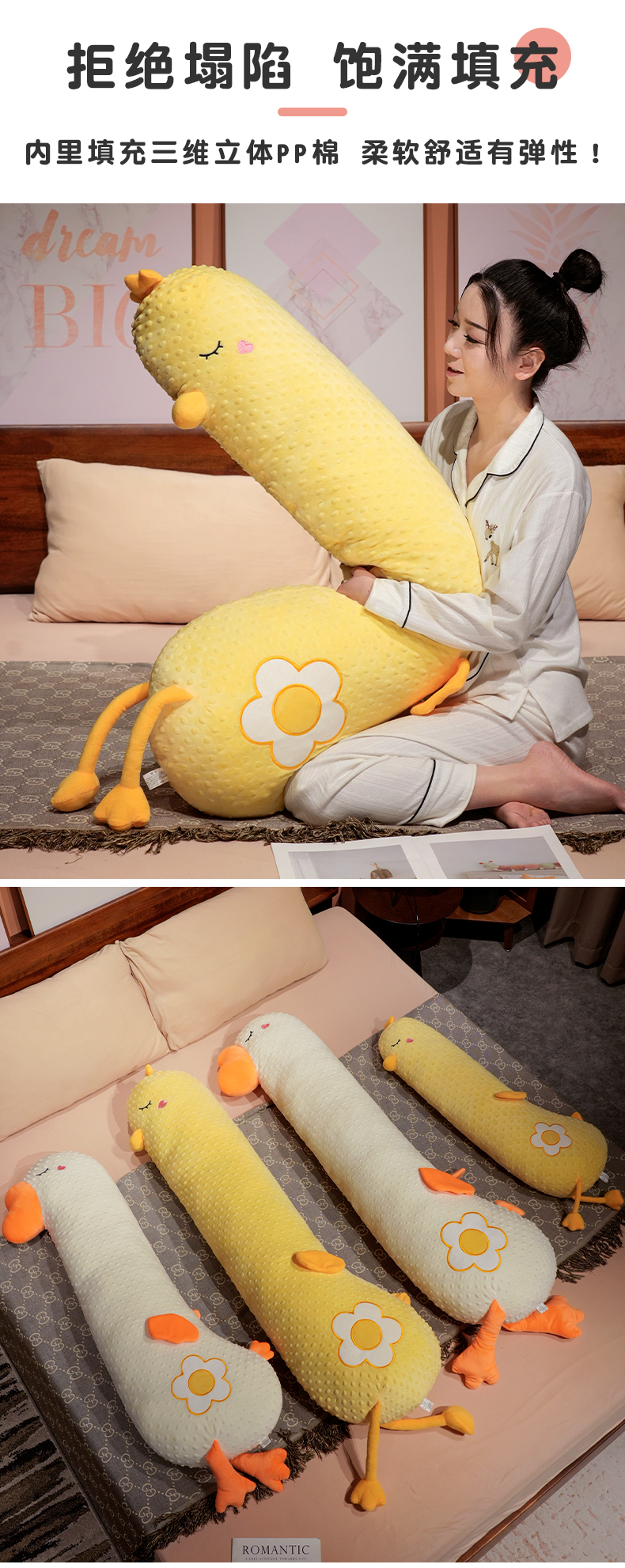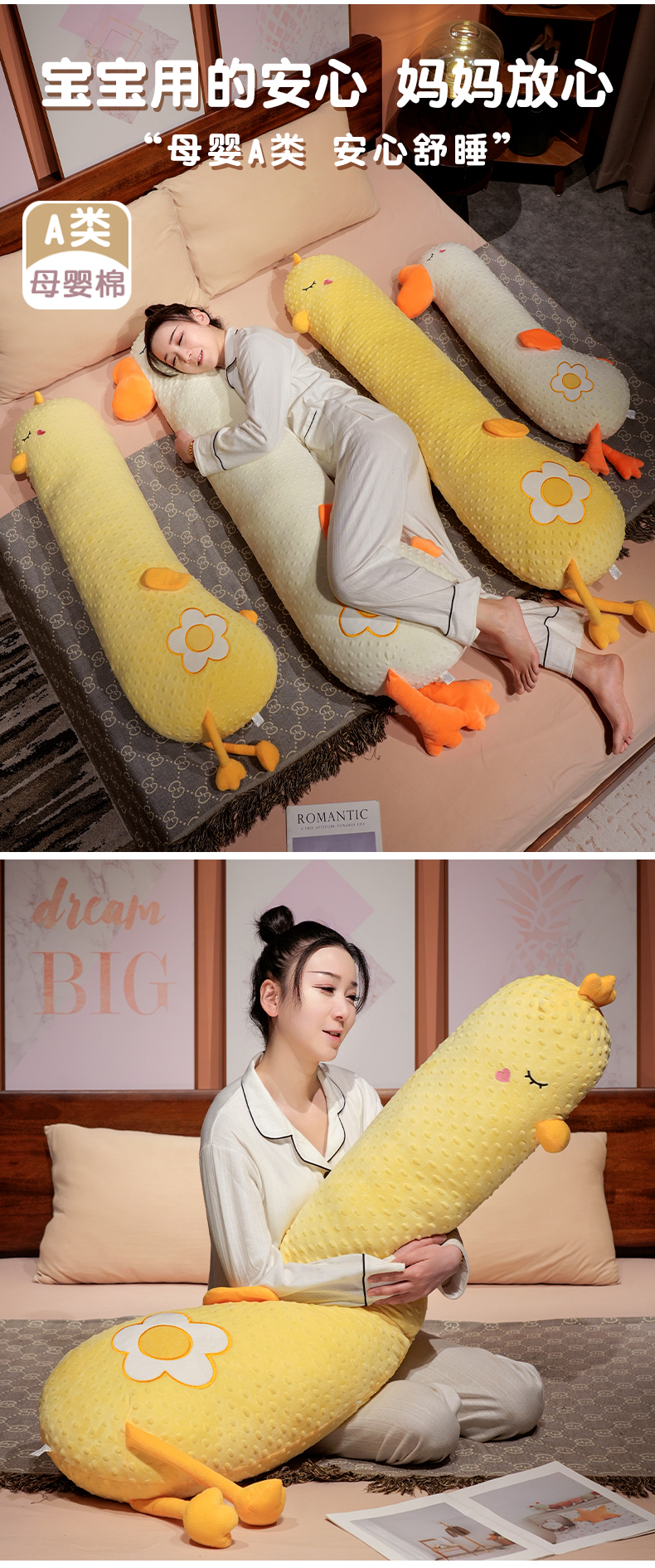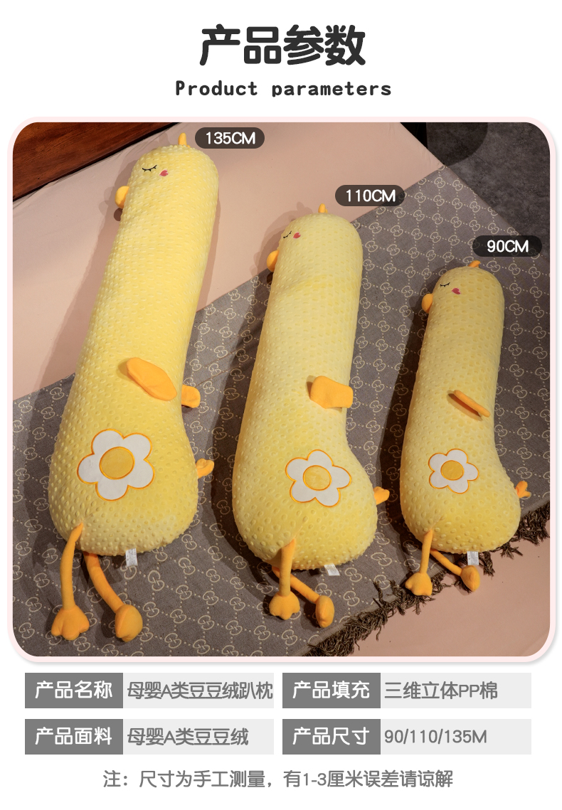 自然醒豆豆绒大鹅长条抱枕女生侧睡夹腿神器男生款孕妇宿舍靠枕床头靠垫QYL