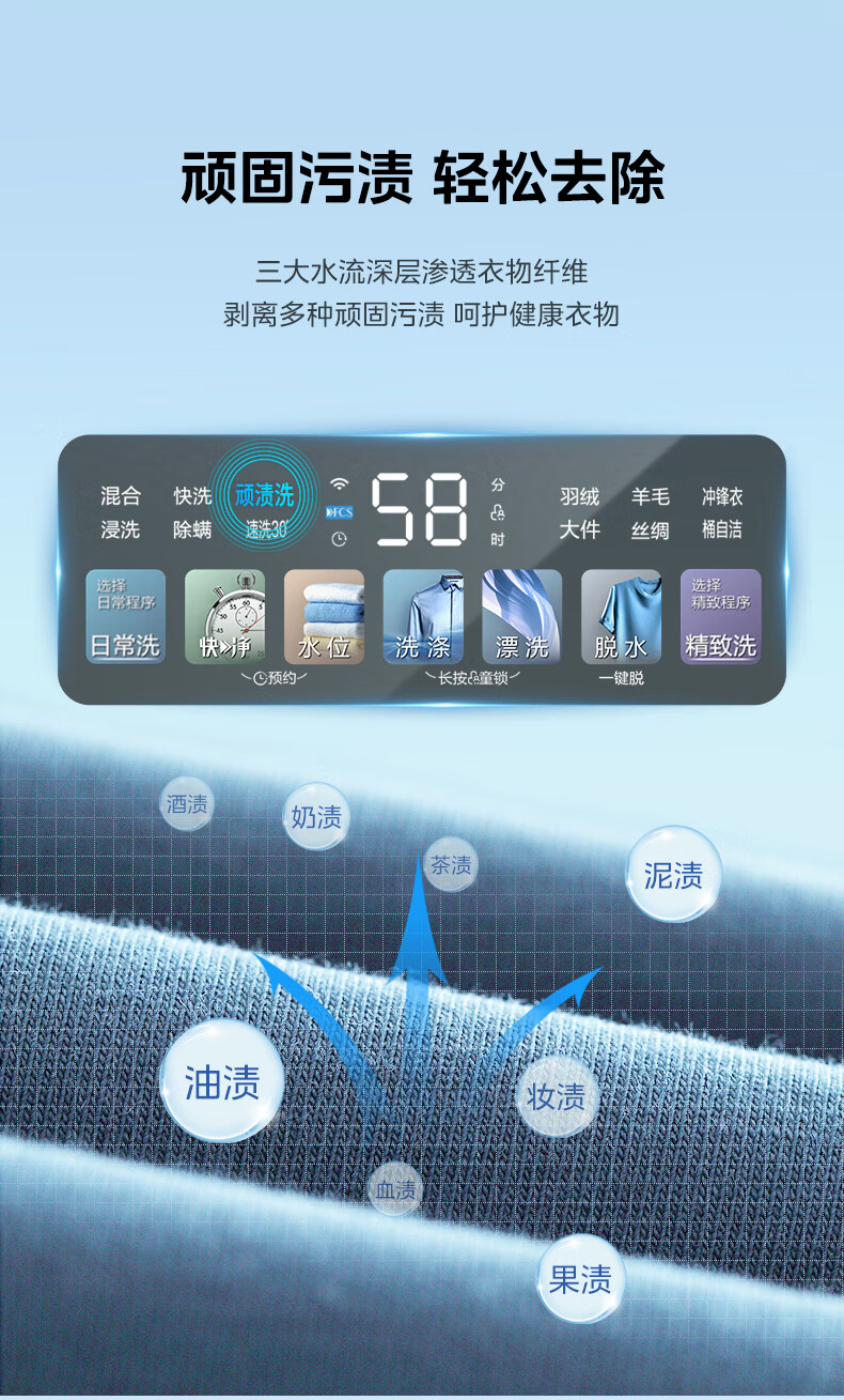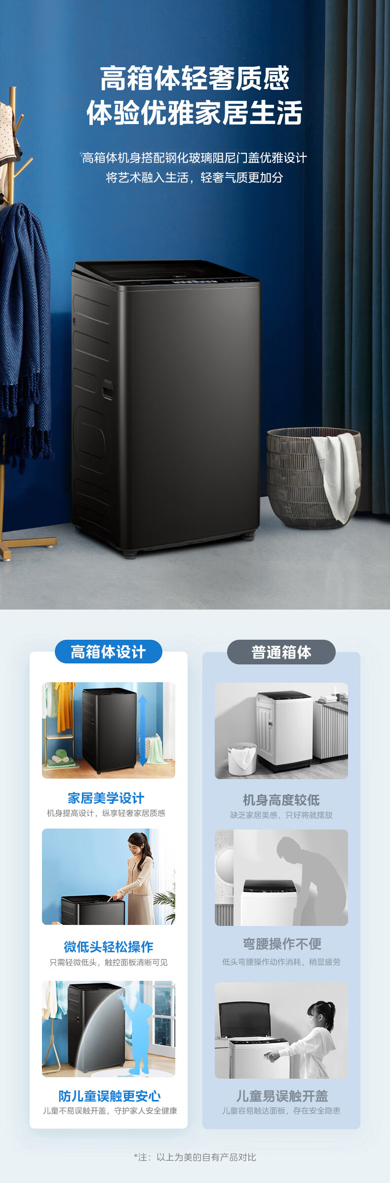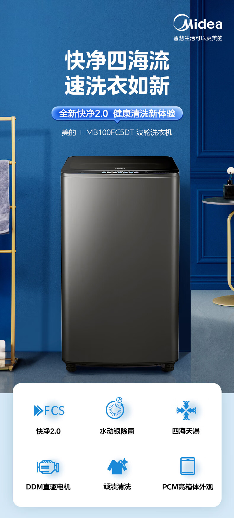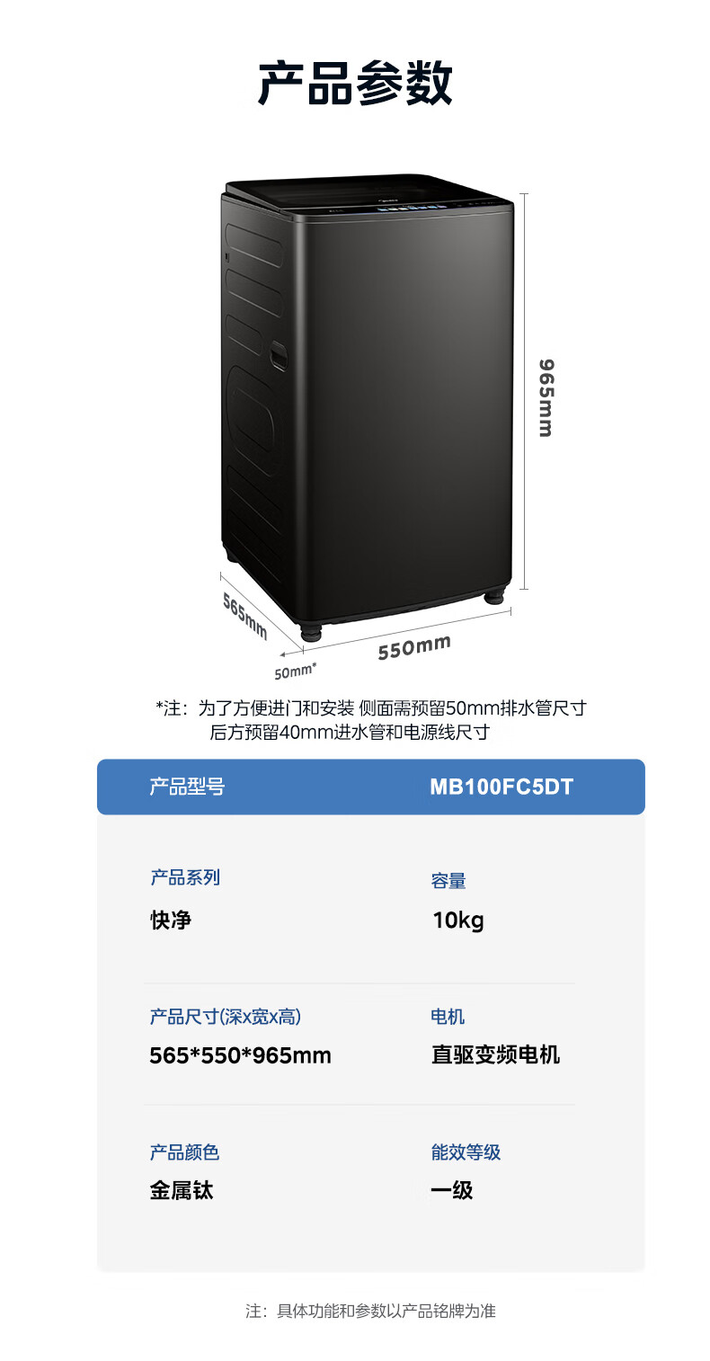 美的(Midea)MB100FC5DT 波轮全自动洗衣机 金属钛 门盖高光黑,白玻,普通银丝印 钢化玻璃 波轮式