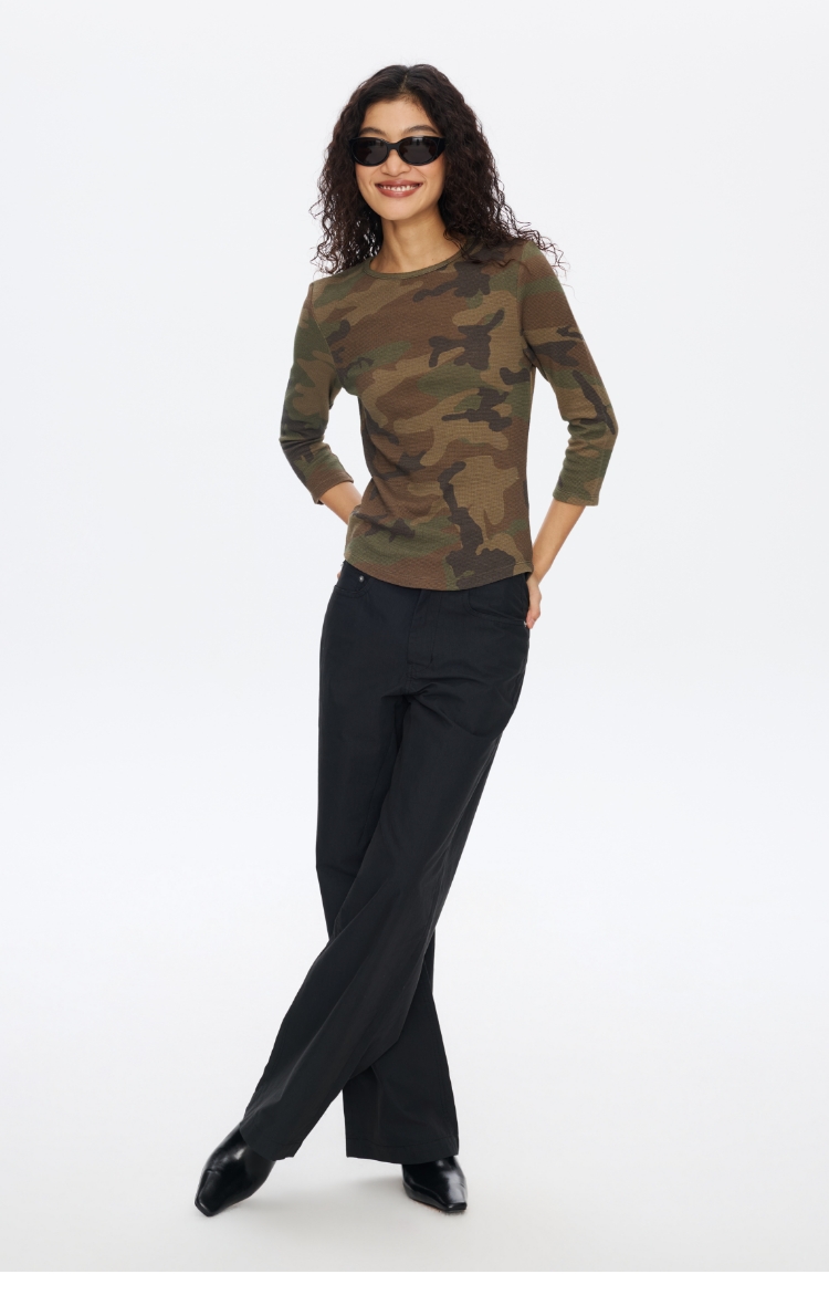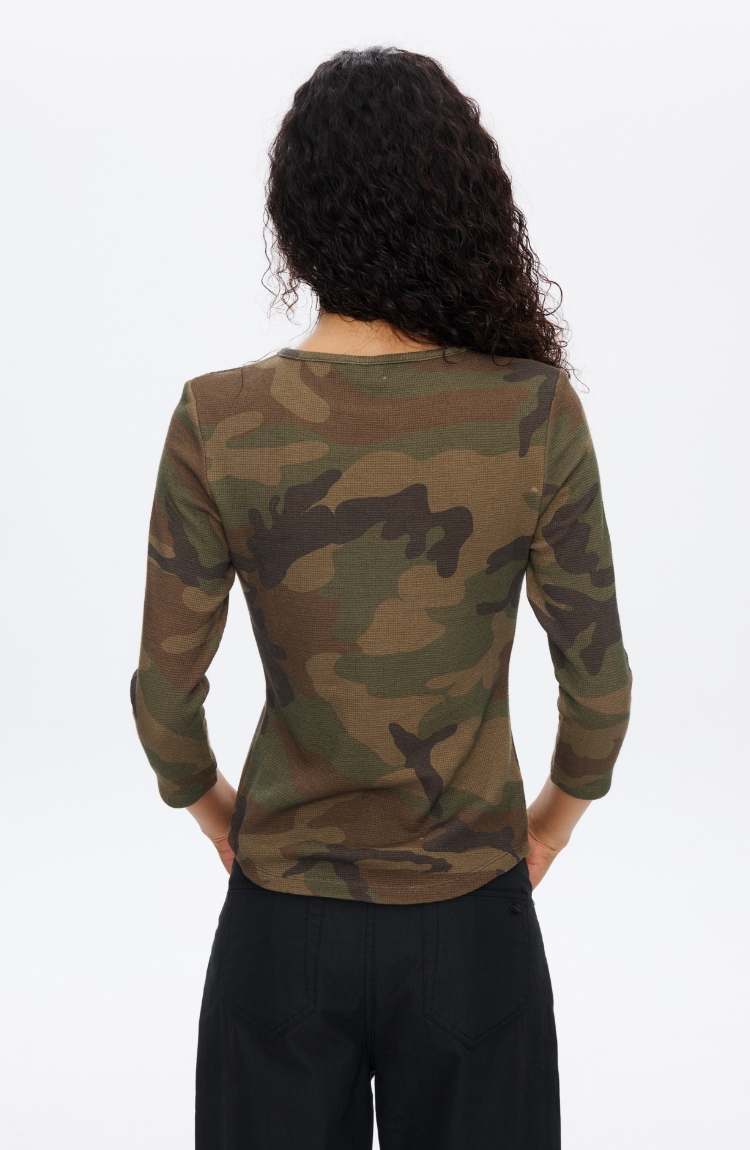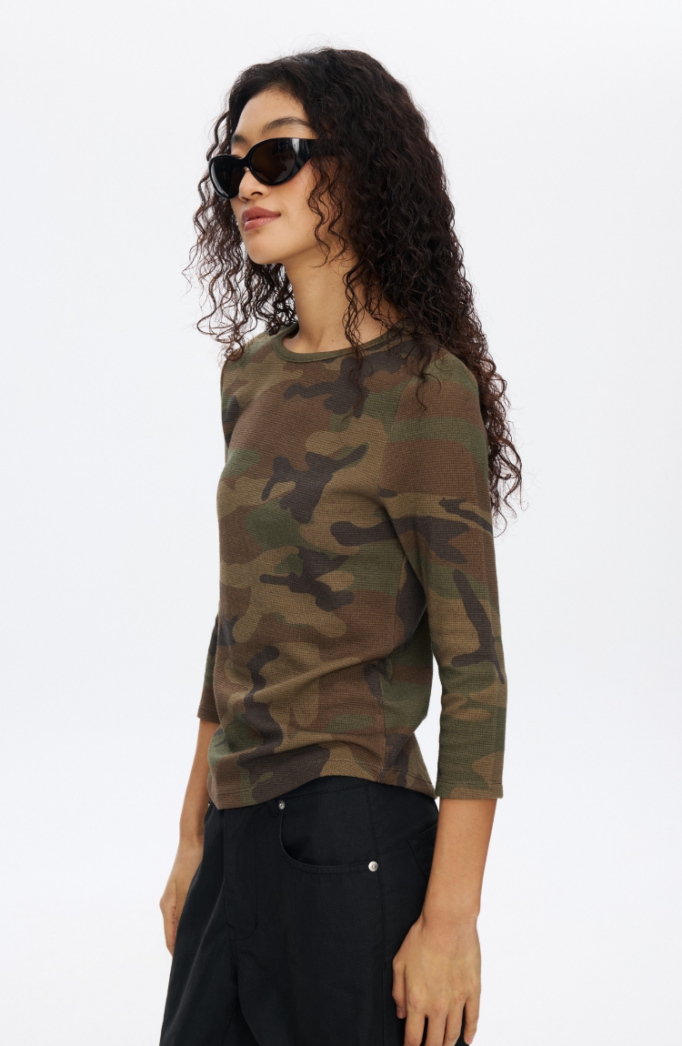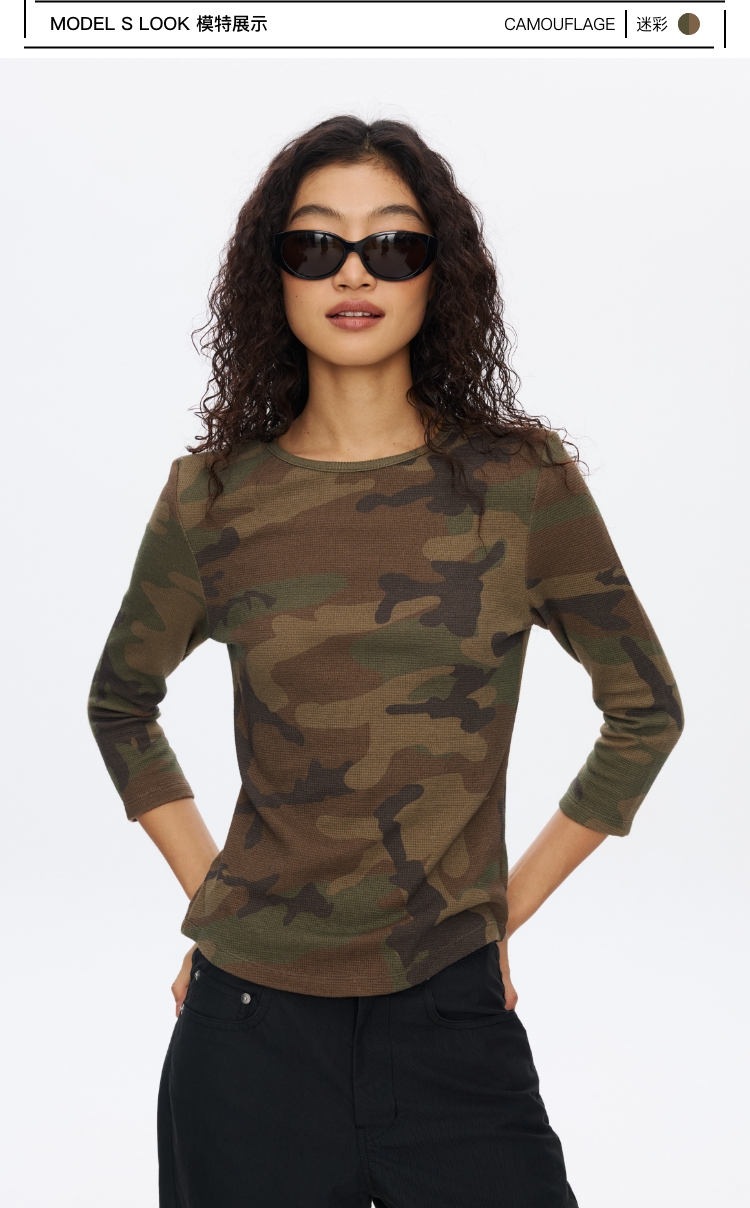 迷彩华夫格七分袖T恤
