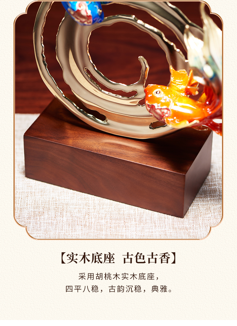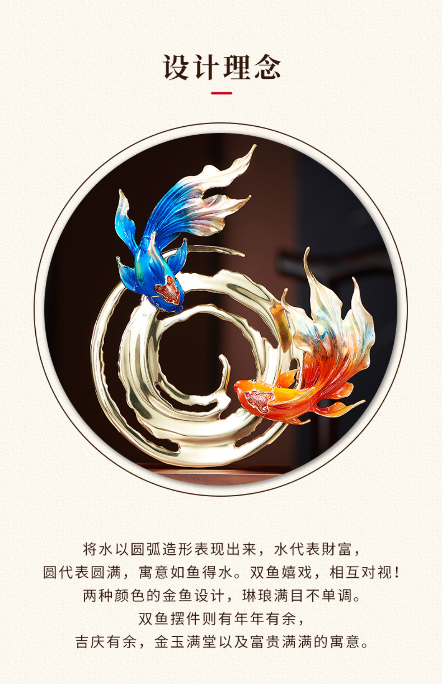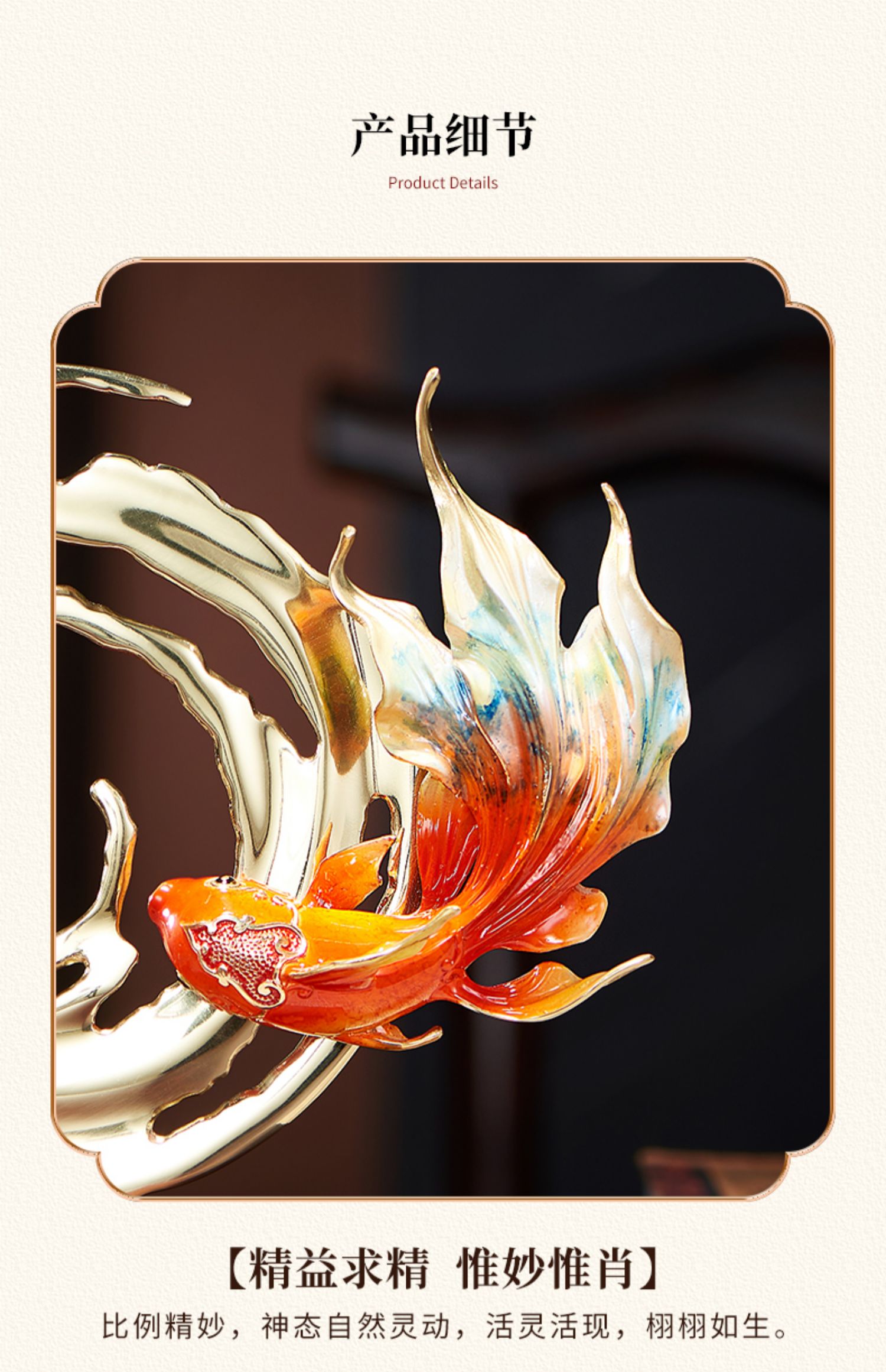 年年有余铜金鱼书柜展示柜电视柜艺术工艺品装饰摆件纯铜招财双鱼戏水摆件 220*80*310客厅书房办公室玄关新中式摆件新婚贺礼乔迁贺礼