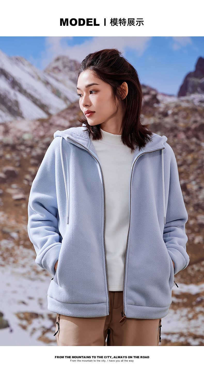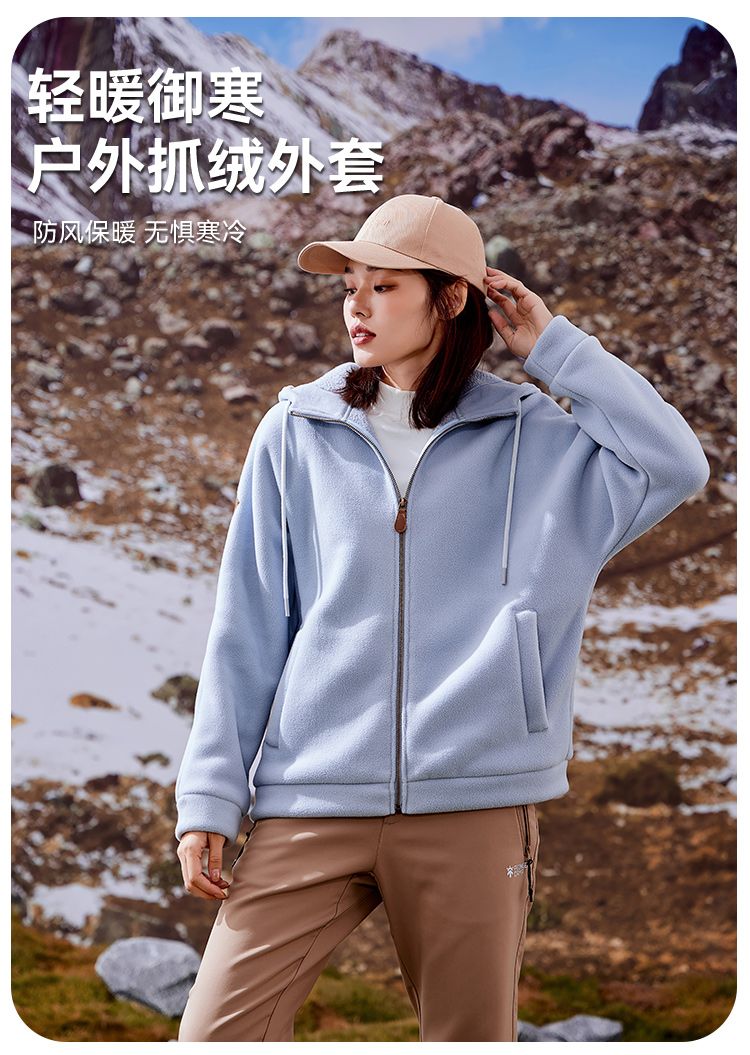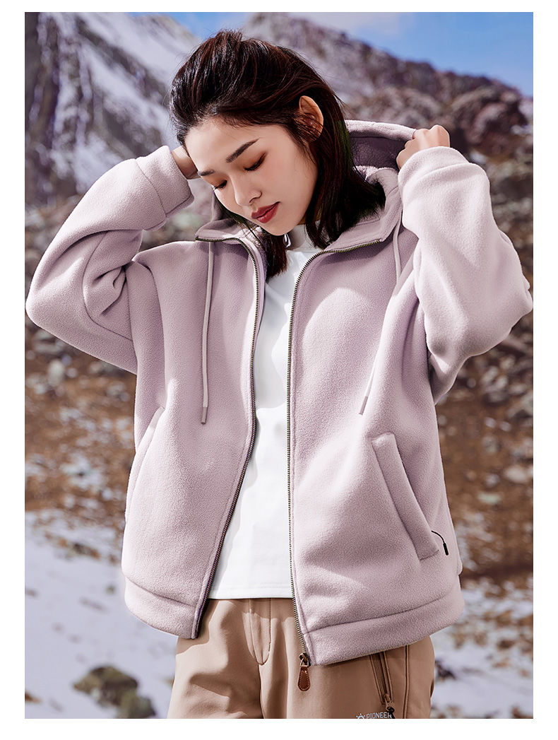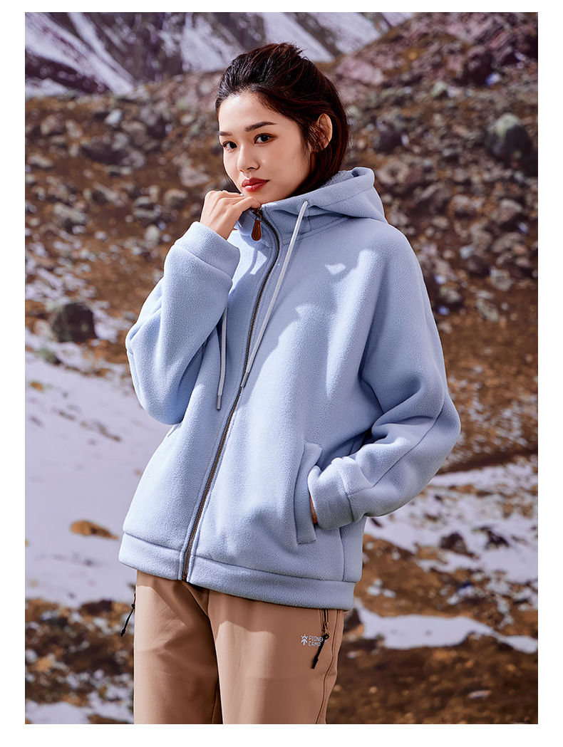 拓路者秋冬加绒摇粒绒外套女户外运动休闲保暖抓绒衣内胆开衫卫衣