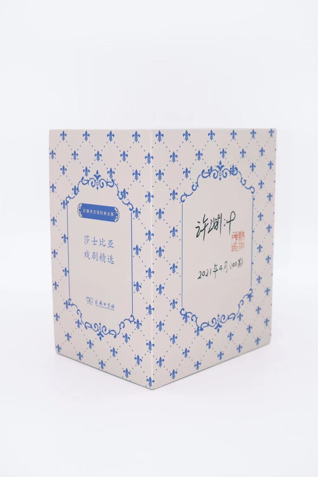 “许渊冲汉译经典全集”第一辑包括著名翻译家许渊冲先生所翻译的英语名著20本,其中莎士比亚戏剧精选14本,王尔德戏剧全集6本(8种)。“莎士比亚戏剧精选系列函套”有莎士比亚戏剧14种:《弄假成真》《有情无情》《风暴》《夏夜梦》《如愿》《威尼斯商人》《凯撒大将》《第十二夜》《马克白》《安东尼与克柳葩》《罗密欧与朱丽叶》《李尔王》《奥瑟罗》《哈梦莱》。