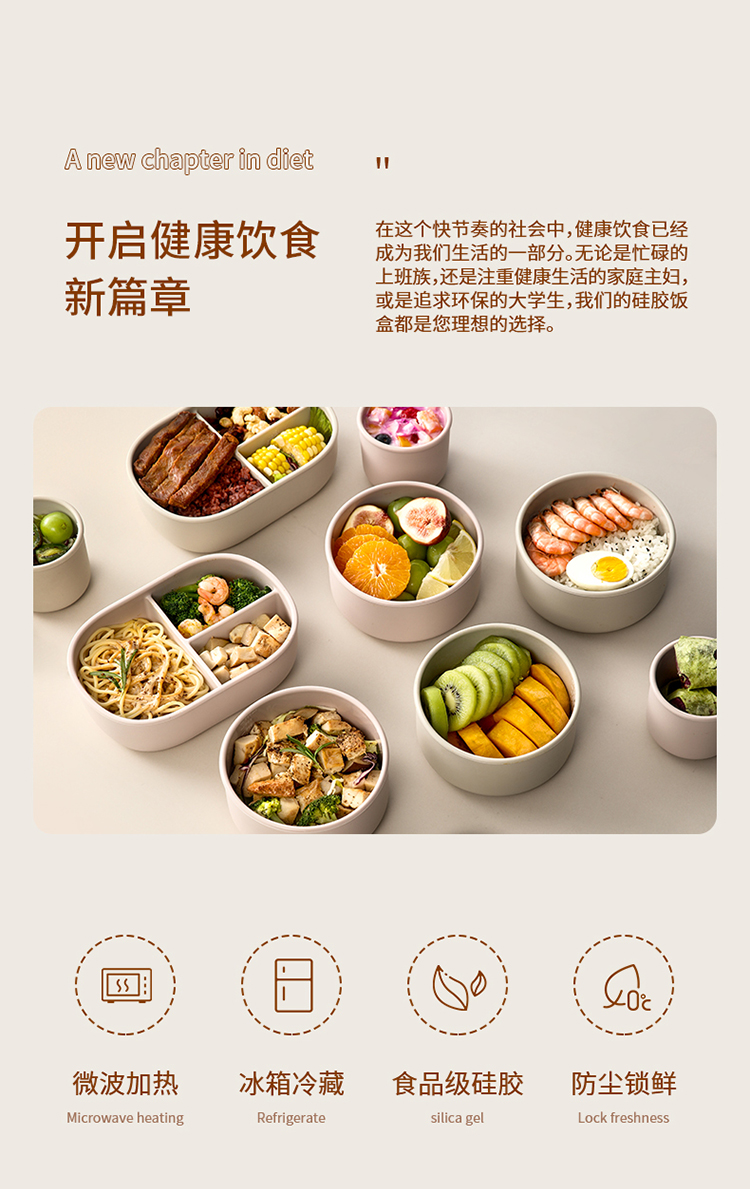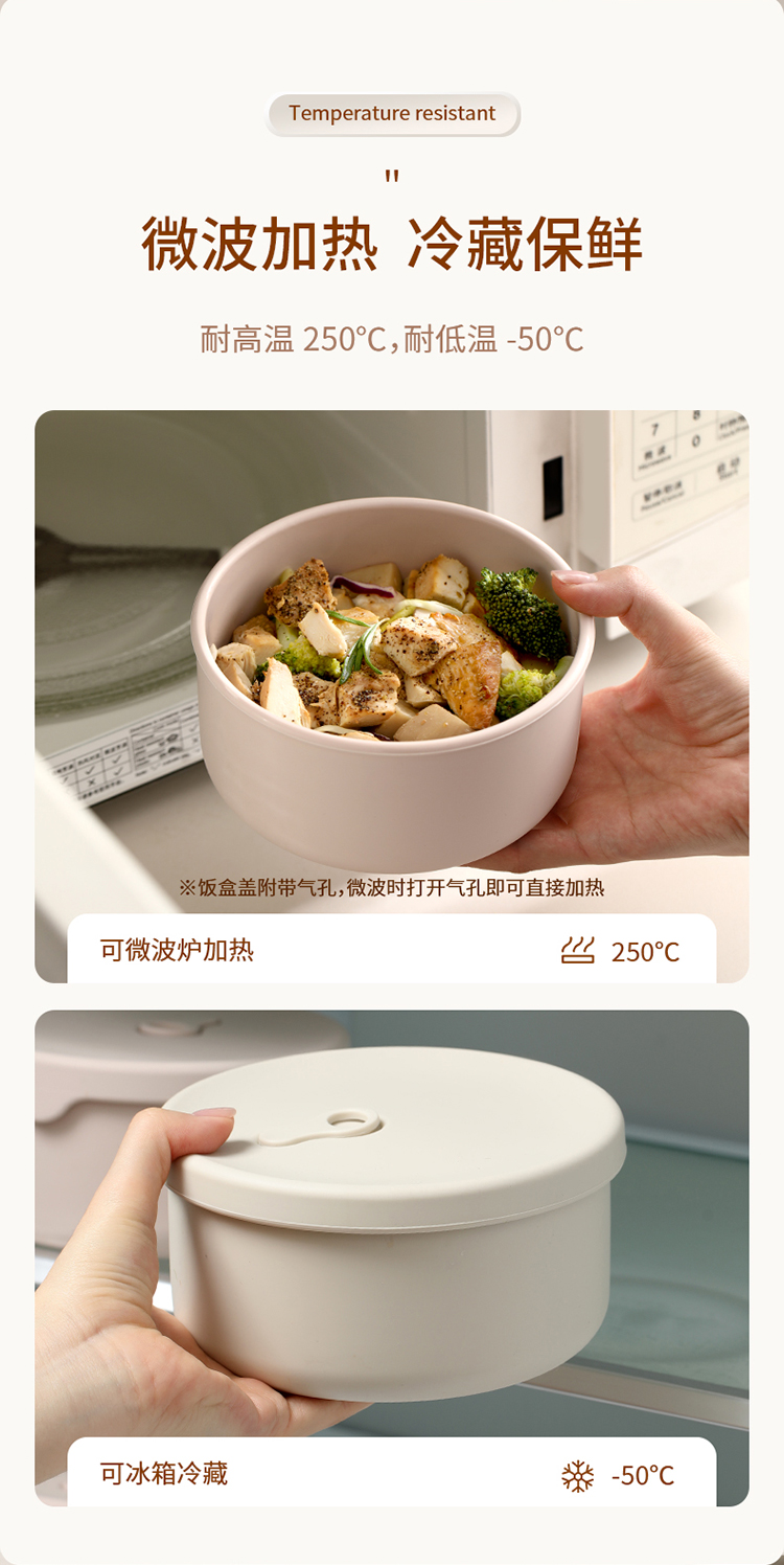 FaSoLa硅胶便当饭盒食品级微波炉加热学生上班族带饭水果密封餐盒