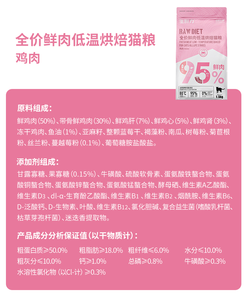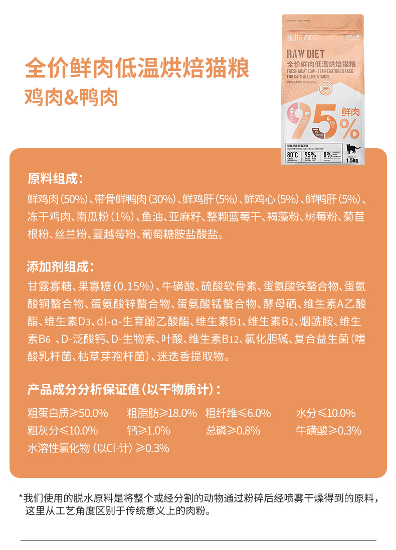 伯纳天纯生时力鲜肉低温烘焙猫粮1.5kg全价猫加菲猫布偶猫高蛋白易吸收