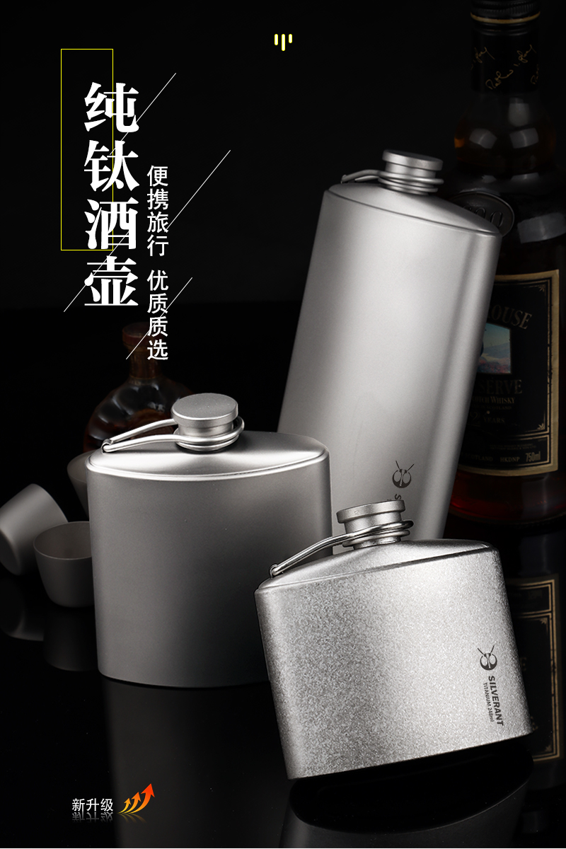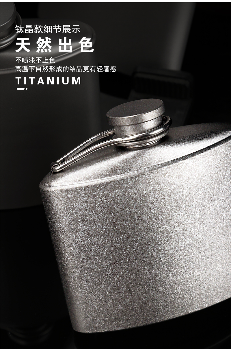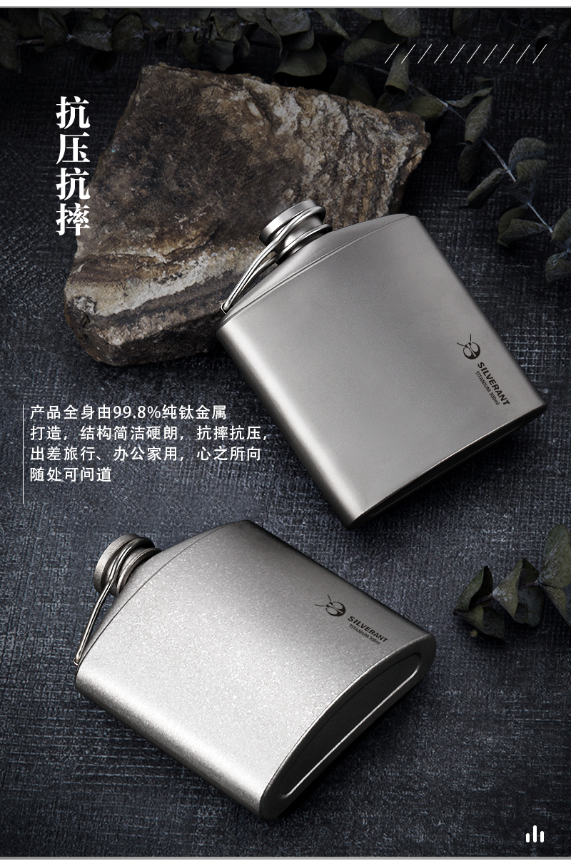 SILVERANT/银蚁纯钛酒壶便携随身扁壶迷你复古健康酒瓶钛合金酒杯银蚁户外 酒壶 300ml 钛晶款