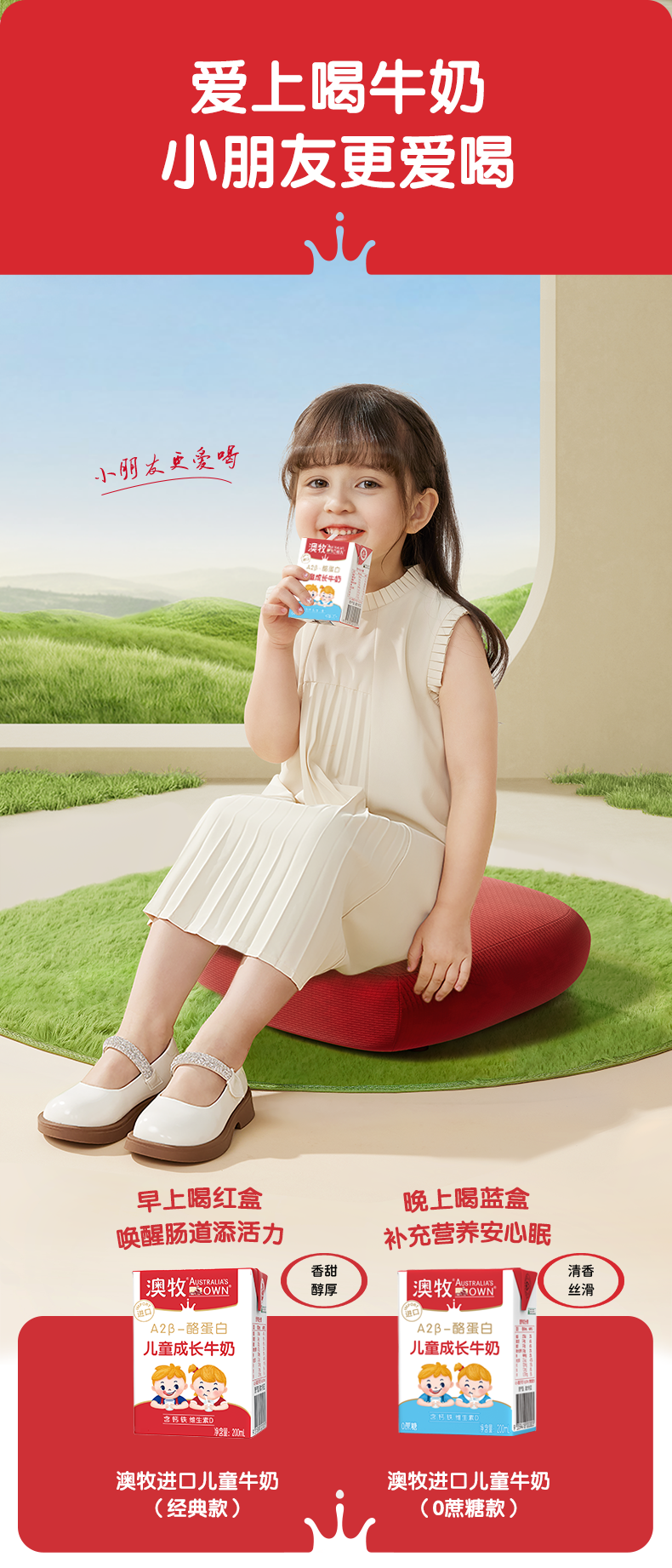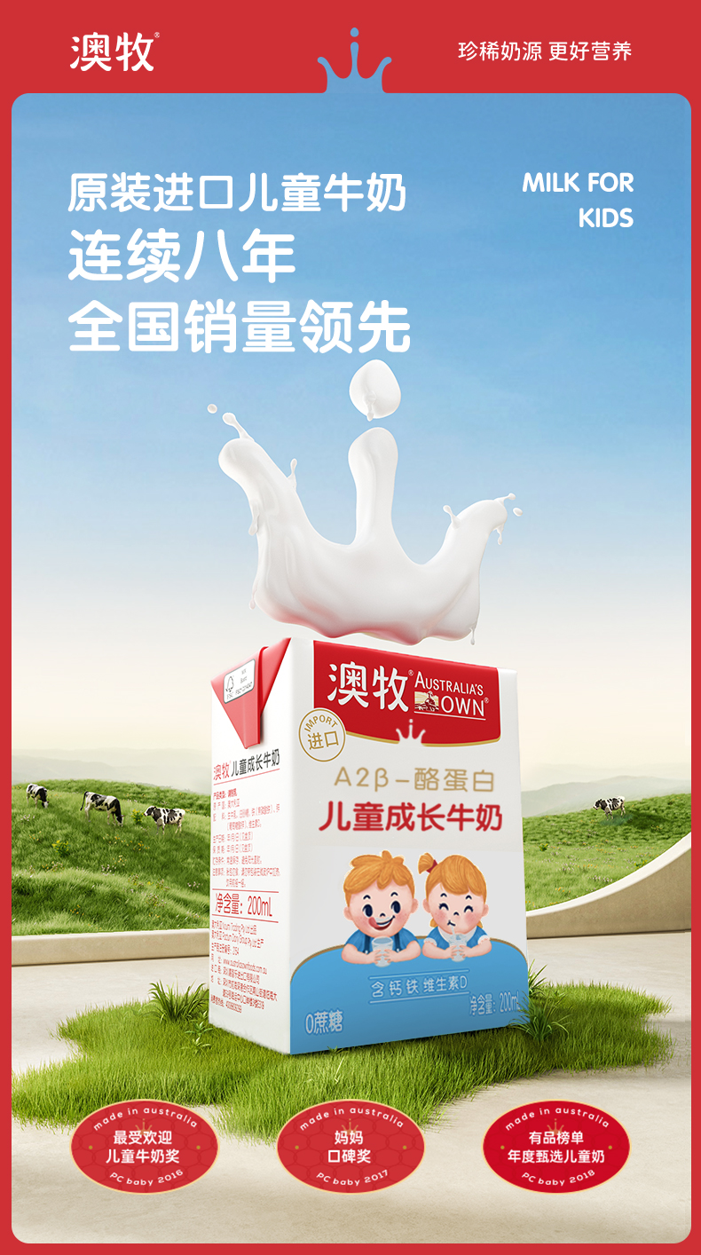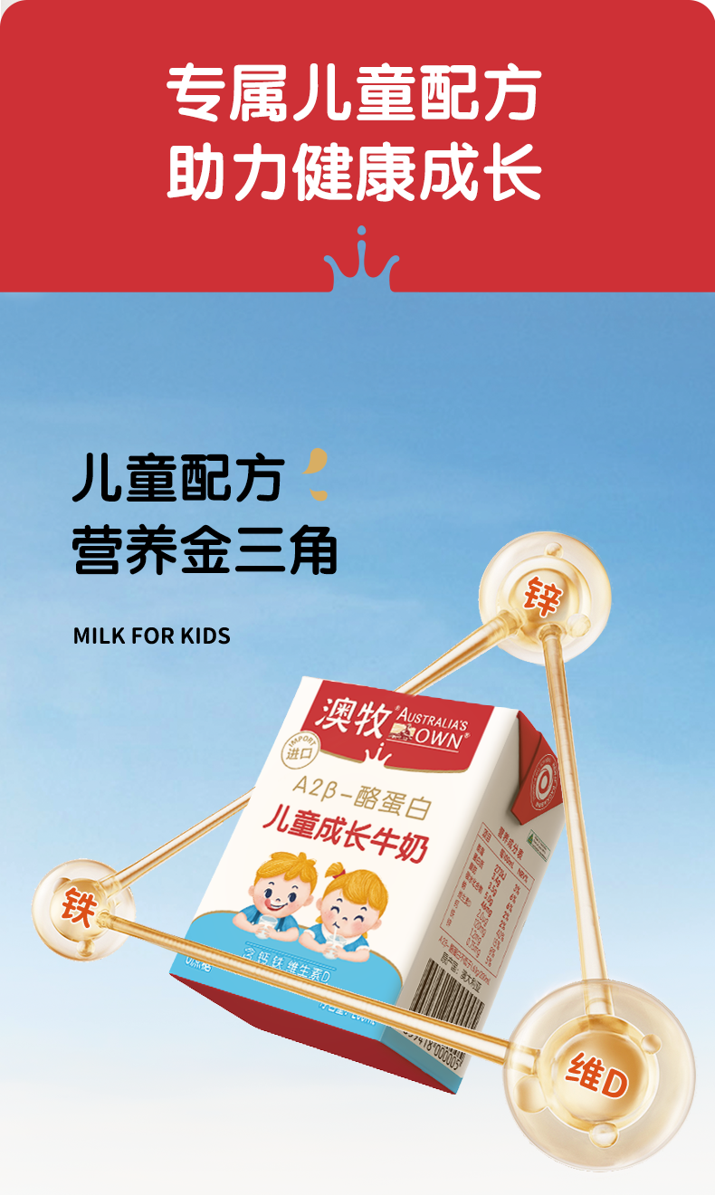 【秒杀】澳牧(Australia's Own)A2-β酪蛋白儿童成长牛奶200ml*9盒