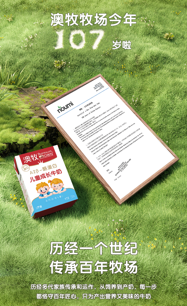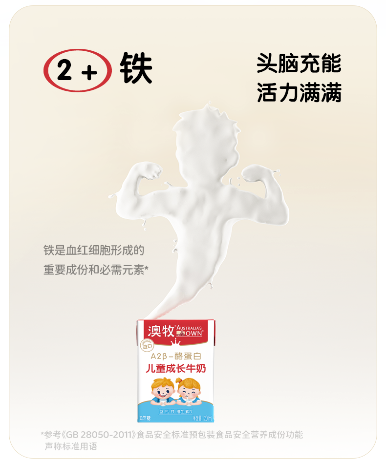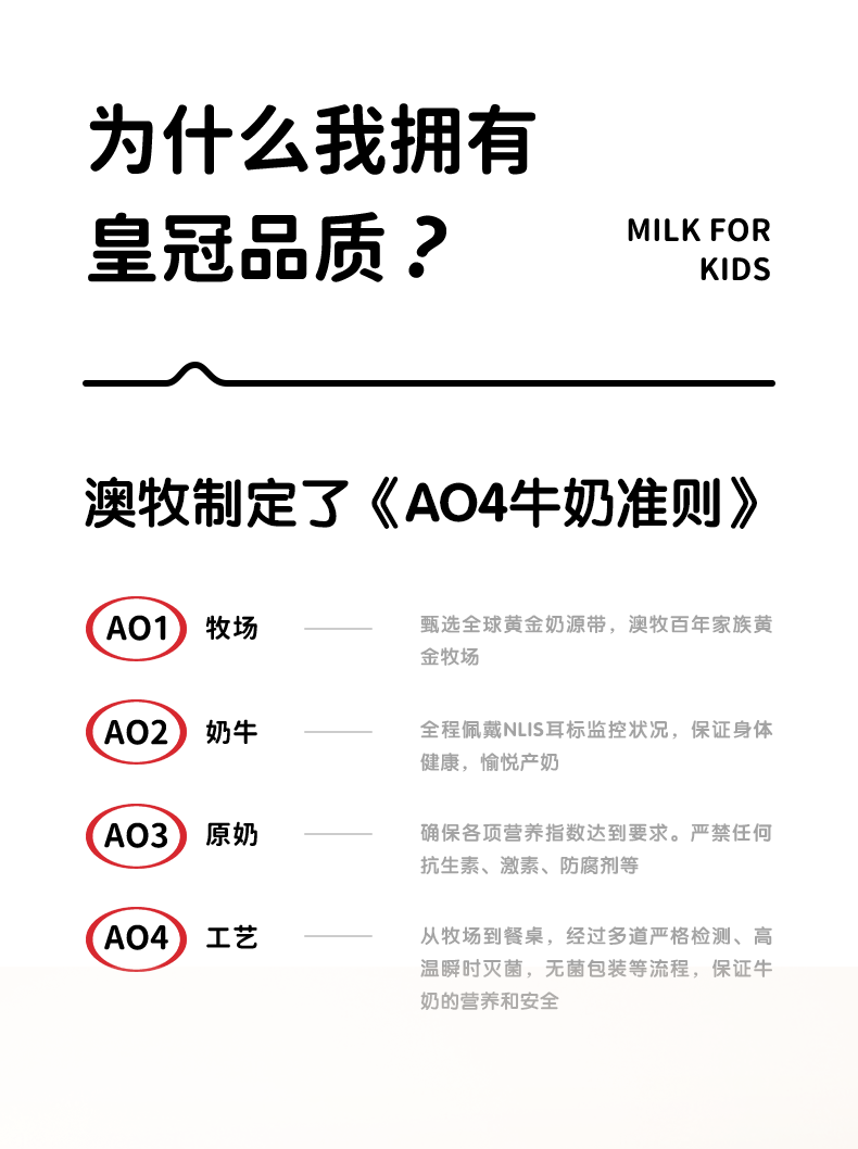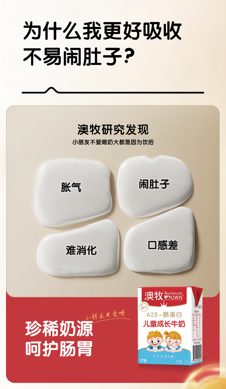 【秒杀】澳牧(Australia's Own)A2-β酪蛋白儿童成长牛奶200ml*9盒