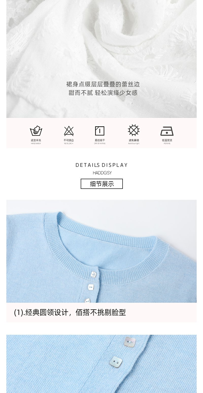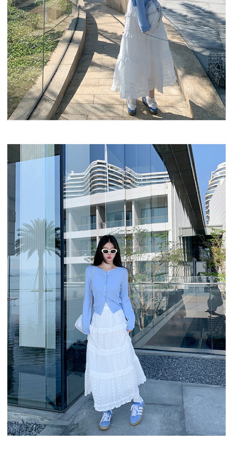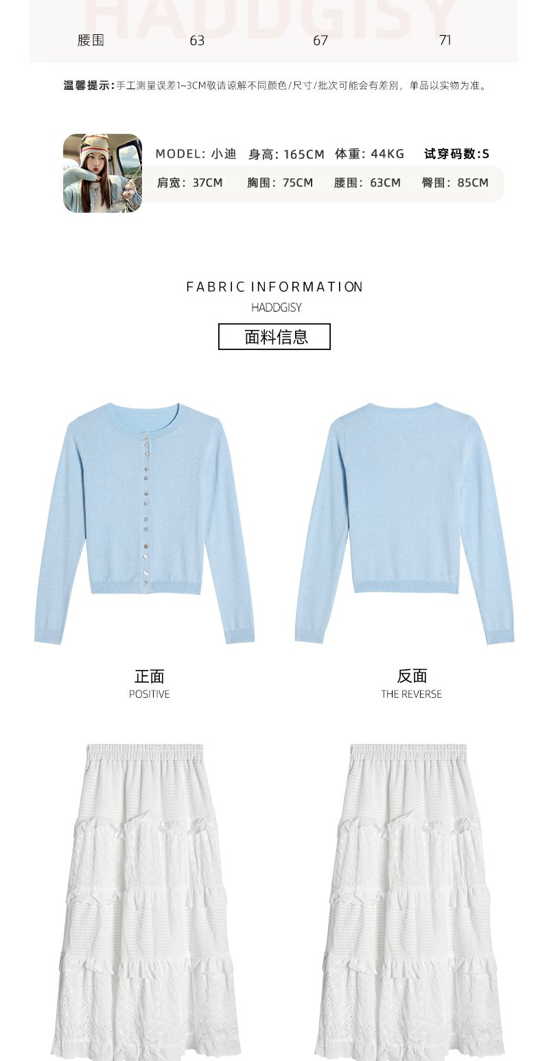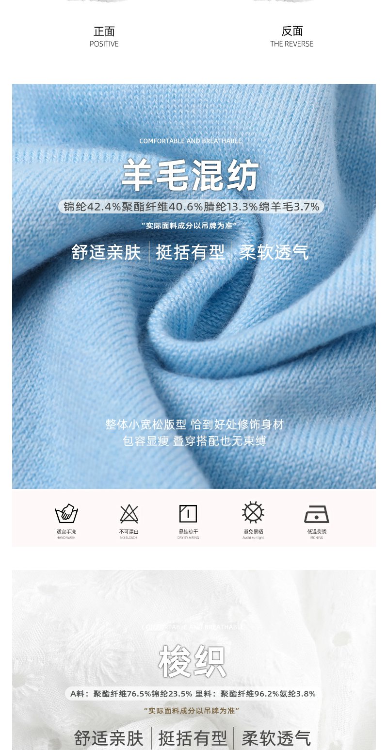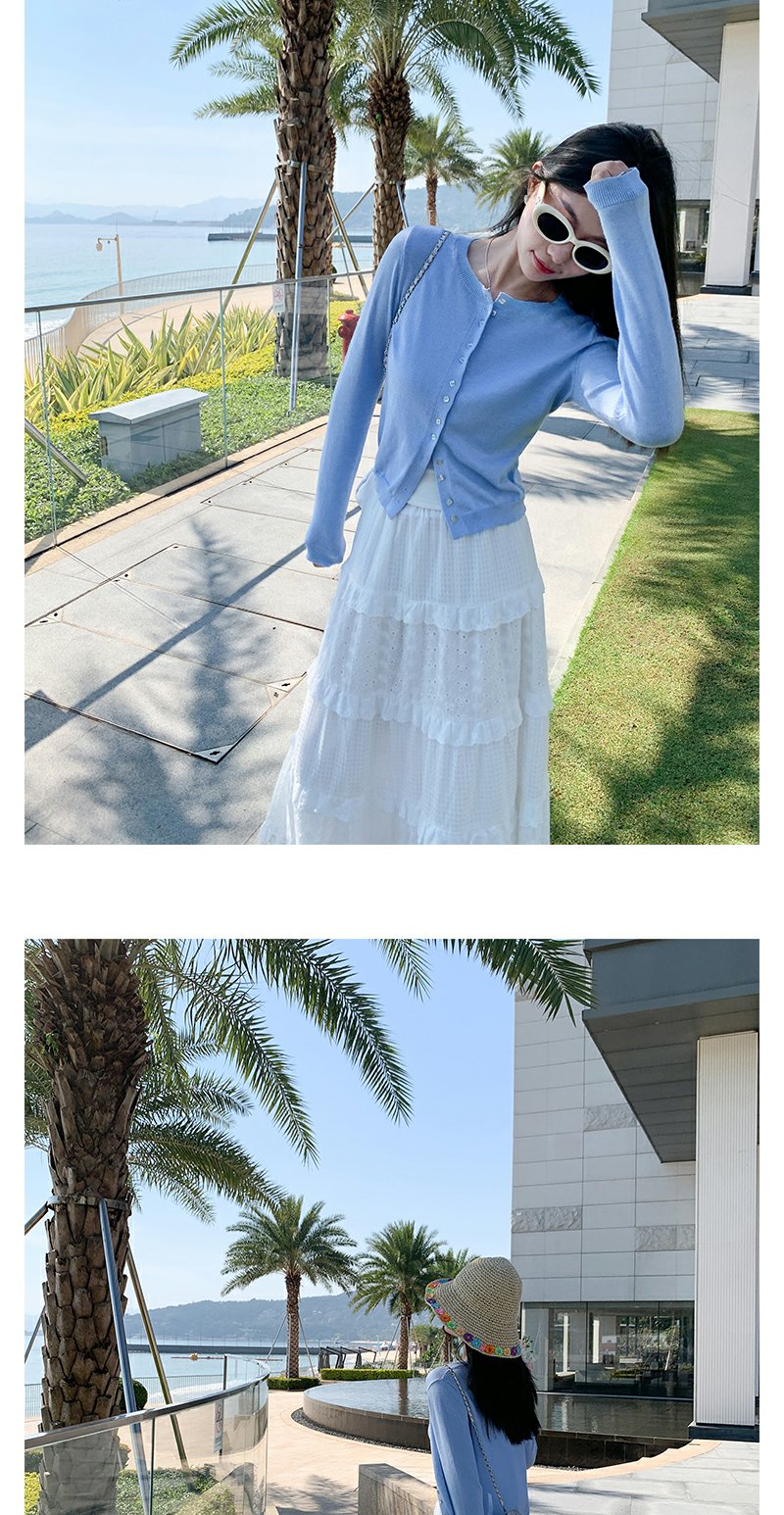 <曾小咸推荐>韩系气质蓝色短款系扣圆领针织衫
