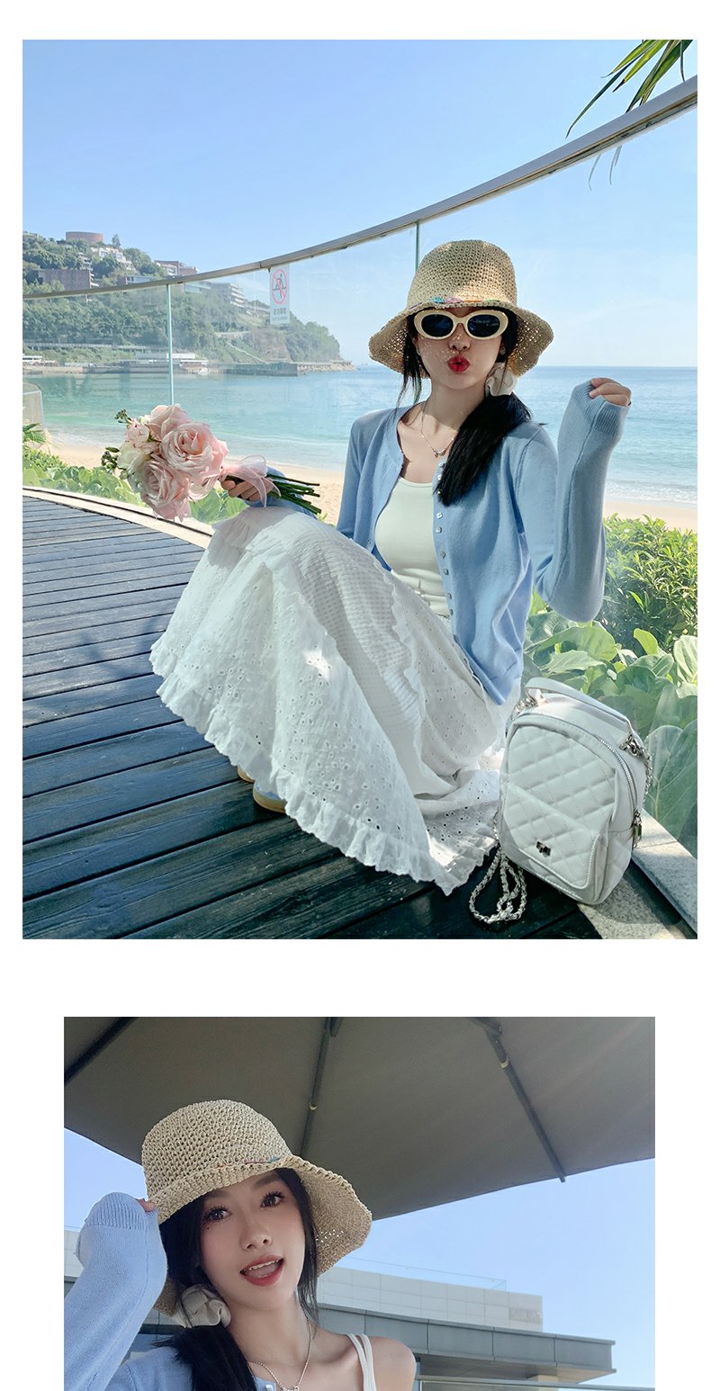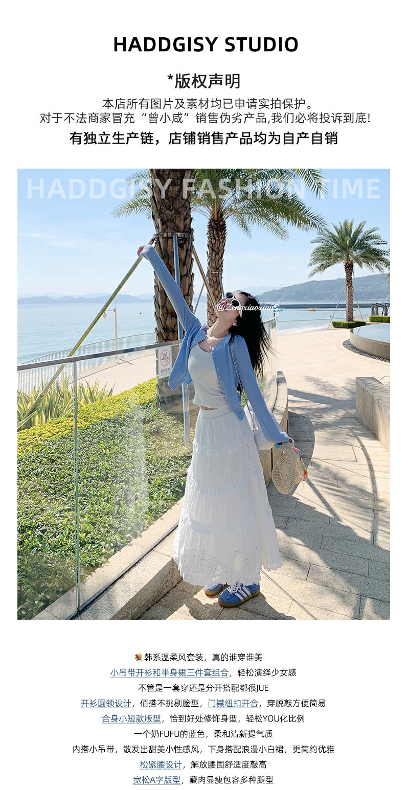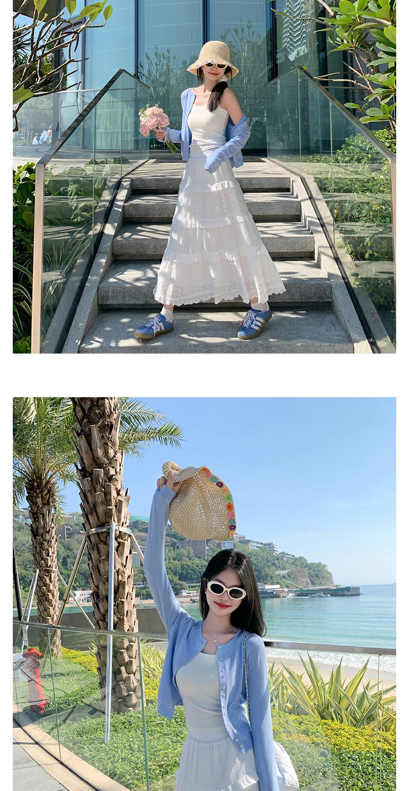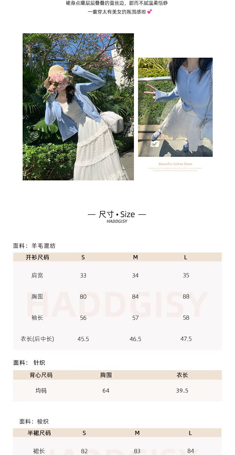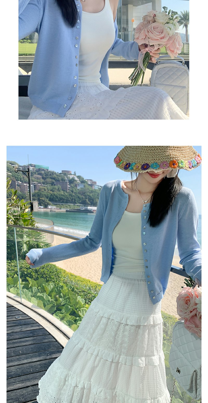 <曾小咸推荐>韩系气质蓝色短款系扣圆领针织衫