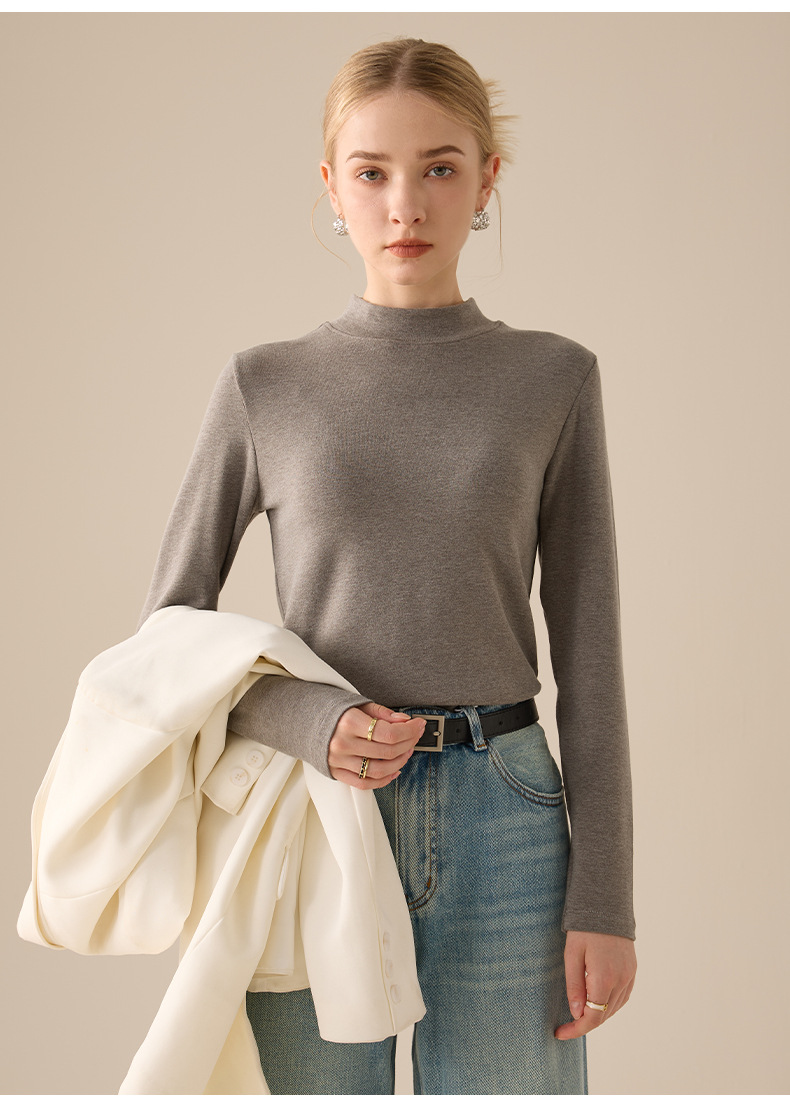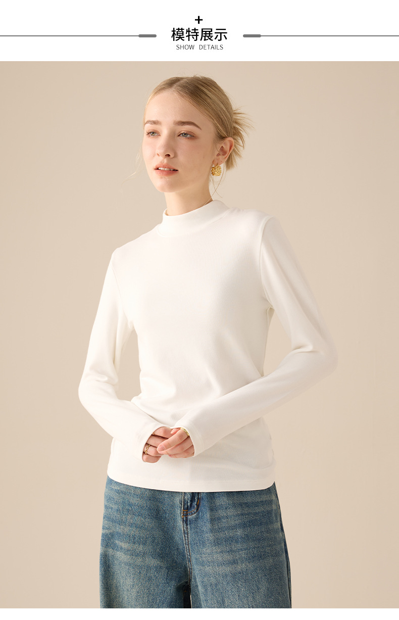「新升级!柔肤肌底衣」半高领打底衫女秋冬季修身好搭t恤紧身纯色内搭长袖上衣 商品图4