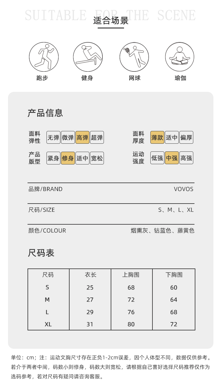 VOVOS果冻胶软支撑休闲运动内衣VWX8020