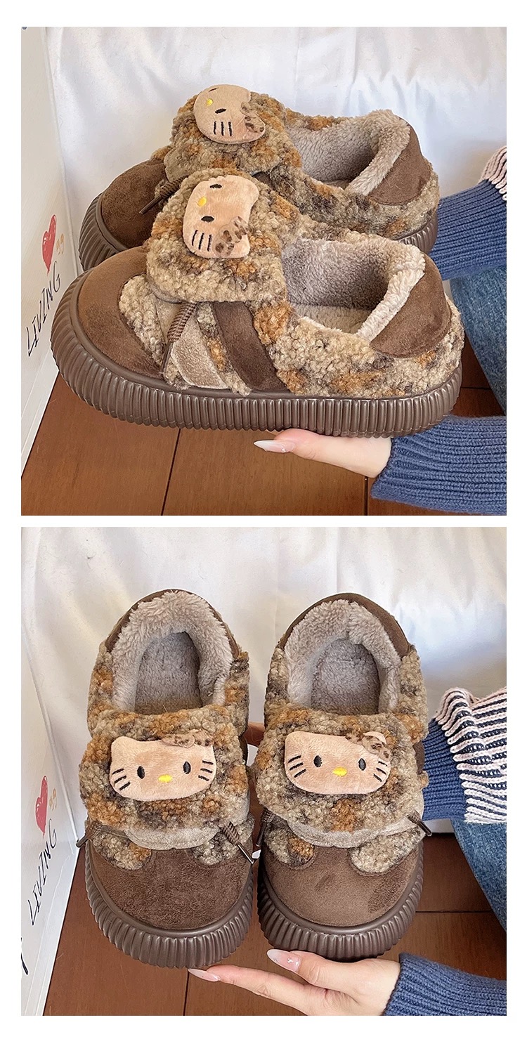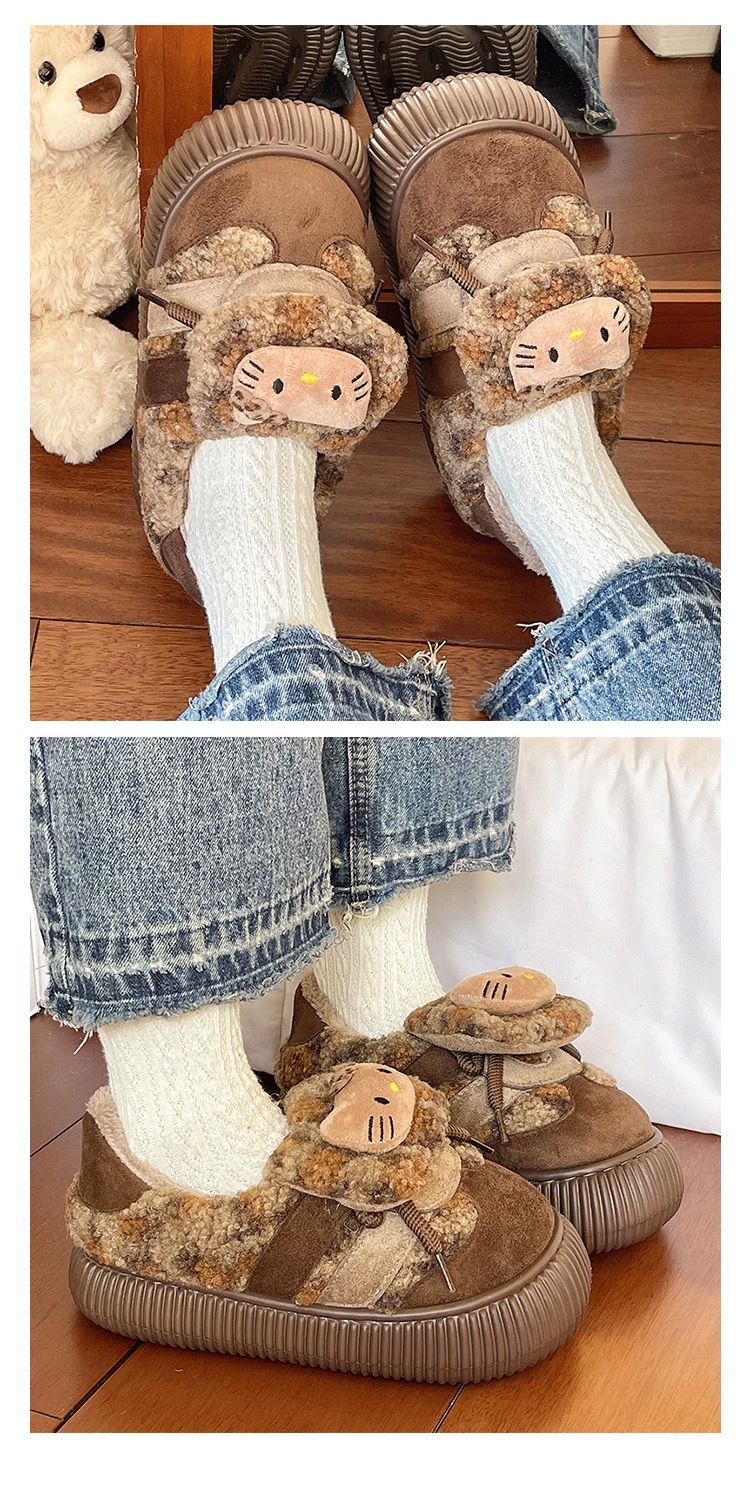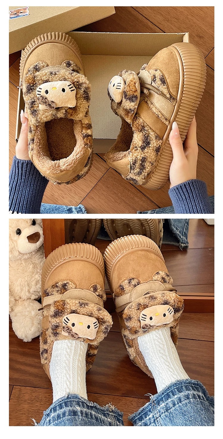 加绒棉拖鞋冬季外穿可爱猫咪豹纹居家室内防滑厚底包跟保暖棉鞋【WG25133】